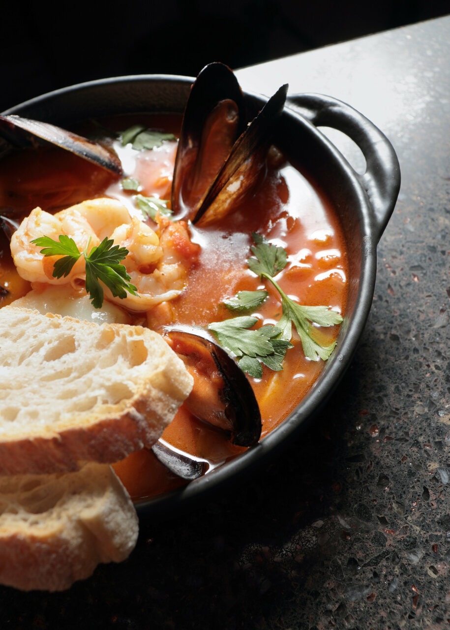 Еда и напитки. В меню — европейские блюда с авторскими идеями: орзо с биском и бастурмой, кундюмы с уткой и моченой клюквой, пельмени с щукой и запеченный судак с соусом из соленых лимонов. Среди десертов выделяются мороженое из бородинского хлеба на маннике с квасом и винегрет.