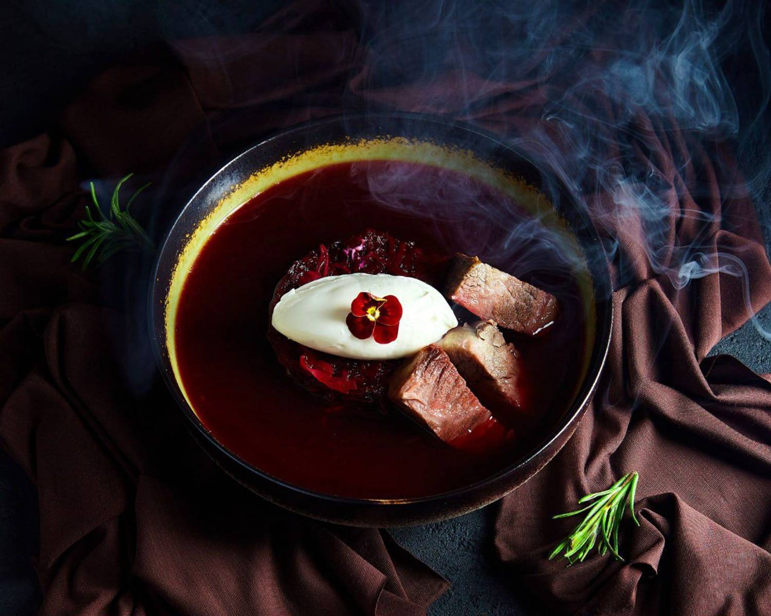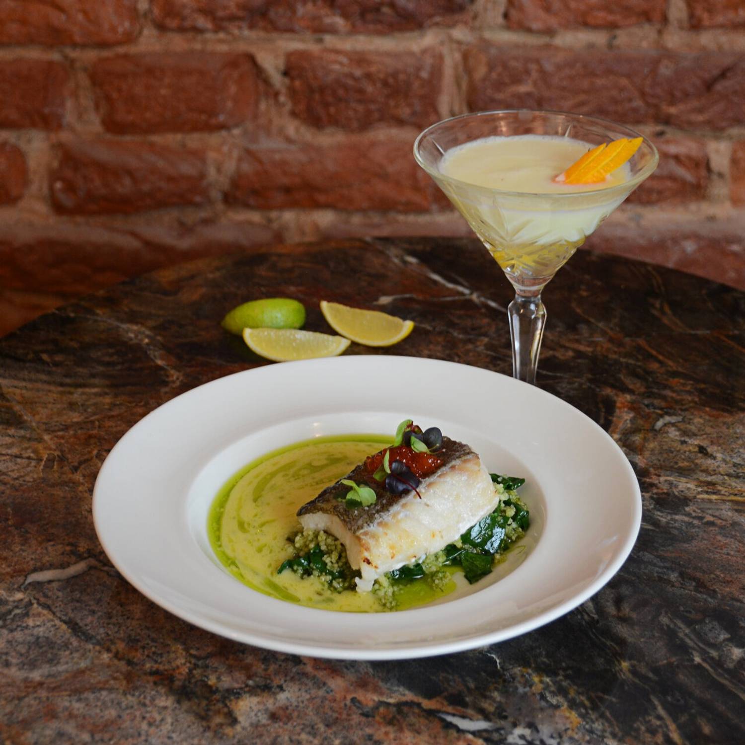 Еда и напитки. В меню — европейские блюда с авторскими идеями: орзо с биском и бастурмой, кундюмы с уткой и моченой клюквой, пельмени с щукой и запеченный судак с соусом из соленых лимонов. Среди десертов выделяются мороженое из бородинского хлеба на маннике с квасом и винегрет.