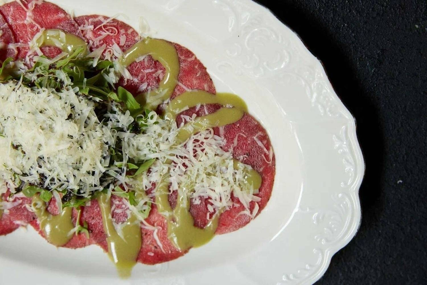 Еда и напитки. В меню — авторская кухня: пицца Маргарита с песто, утиная грудка с соусом из красного вина и инжиром, филе сибаса со спаржей в апельсиновом соусе. На десерт заказывают сирувеллу и фондан black & white.