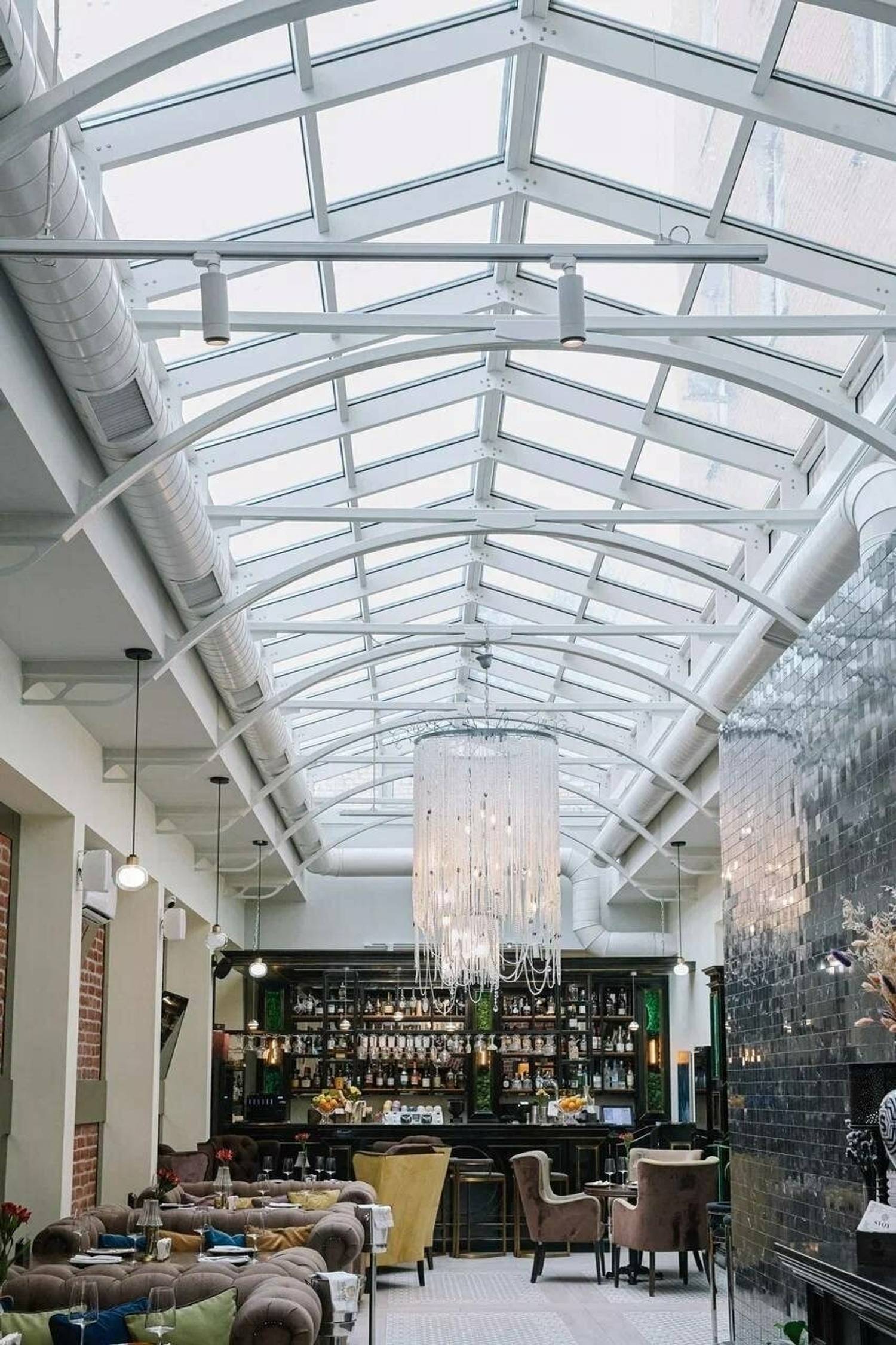 Зачем идти. Чтобы провести вечер в зале под стеклянной крышей с винтажными деталями.