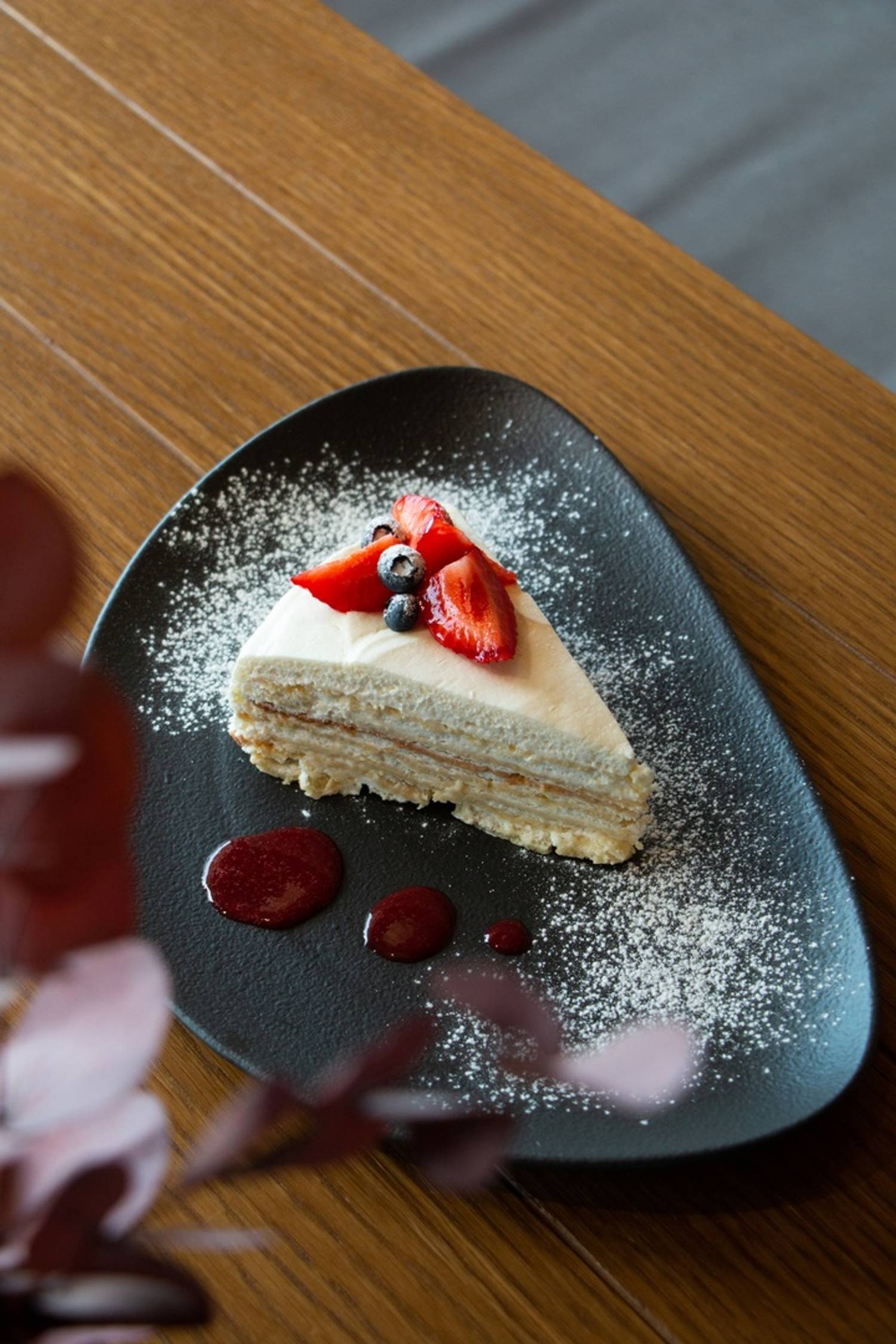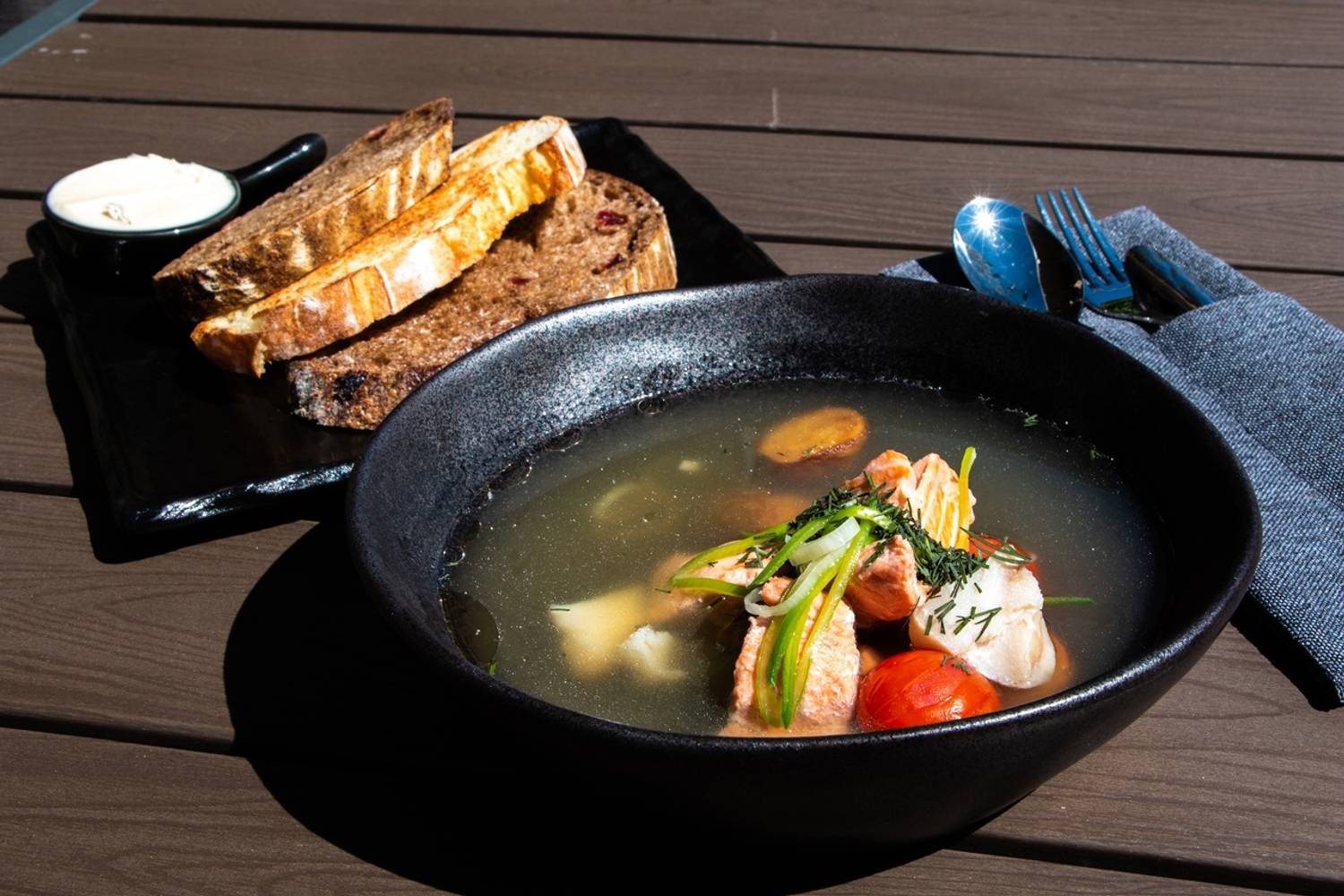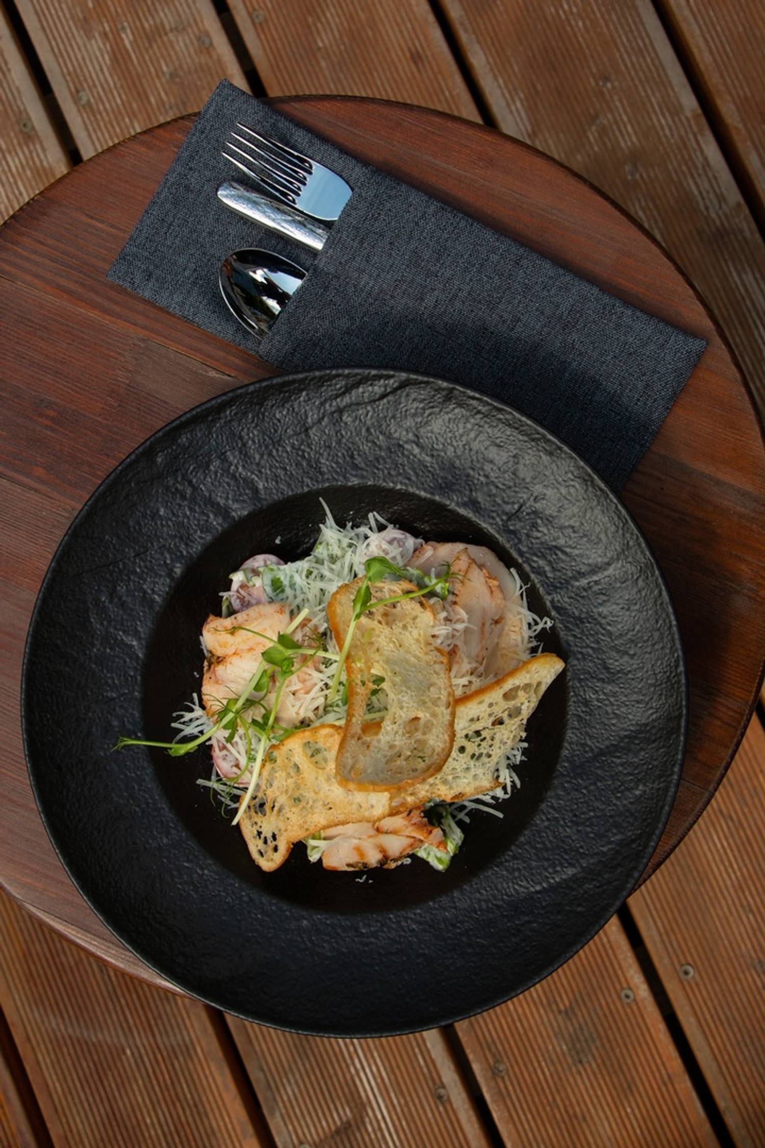 Еда и напитки. В меню — европейская кухня: филе судака с с пюре из сельдерея, утка конфи с штруделем из кислой капусты, паста помидорини, хинкали с креветкой. В баре — вина из Италии, Португалии, Новой Зеландии и России, аперитивные коктейли и крепкий алкоголь.