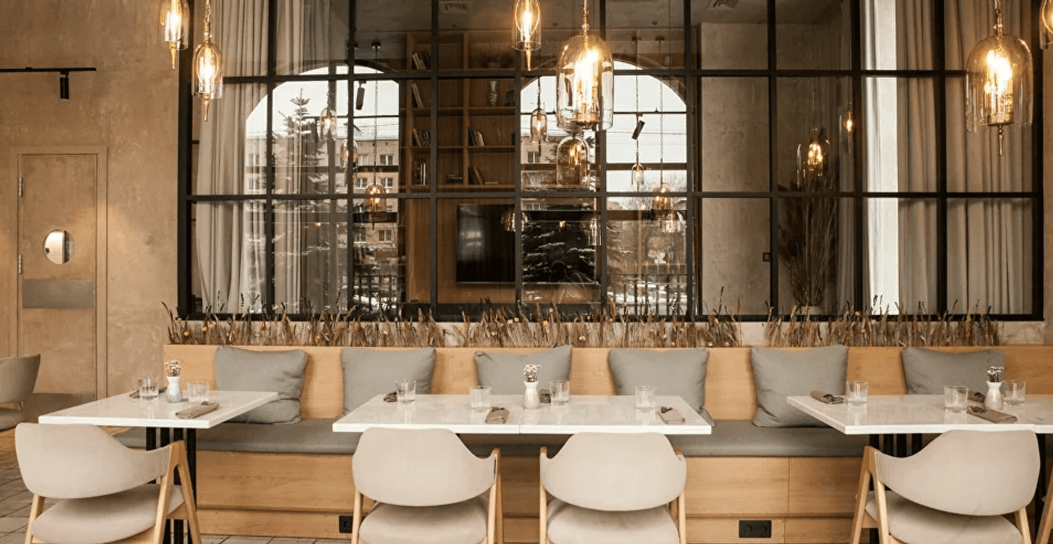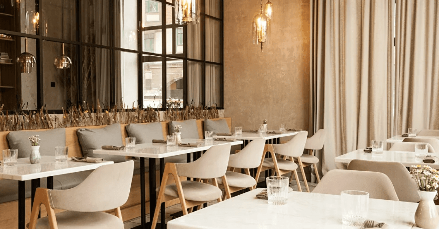 Атмосфера. Светлые пастельные тона, натуральные материалы, высокие арочные окна и композиции из сухоцветов создают ощущение современного загородного дома во Франции. Элегантная и в то же время расслабленная обстановка идеально подходит как для романтического ужина, так и для неспешного воскресного завтрака. Подачи здесь напоминают театральное действо: финальное приготовление блюд происходит прямо у стола гостя.