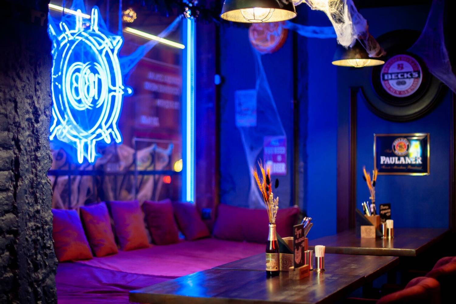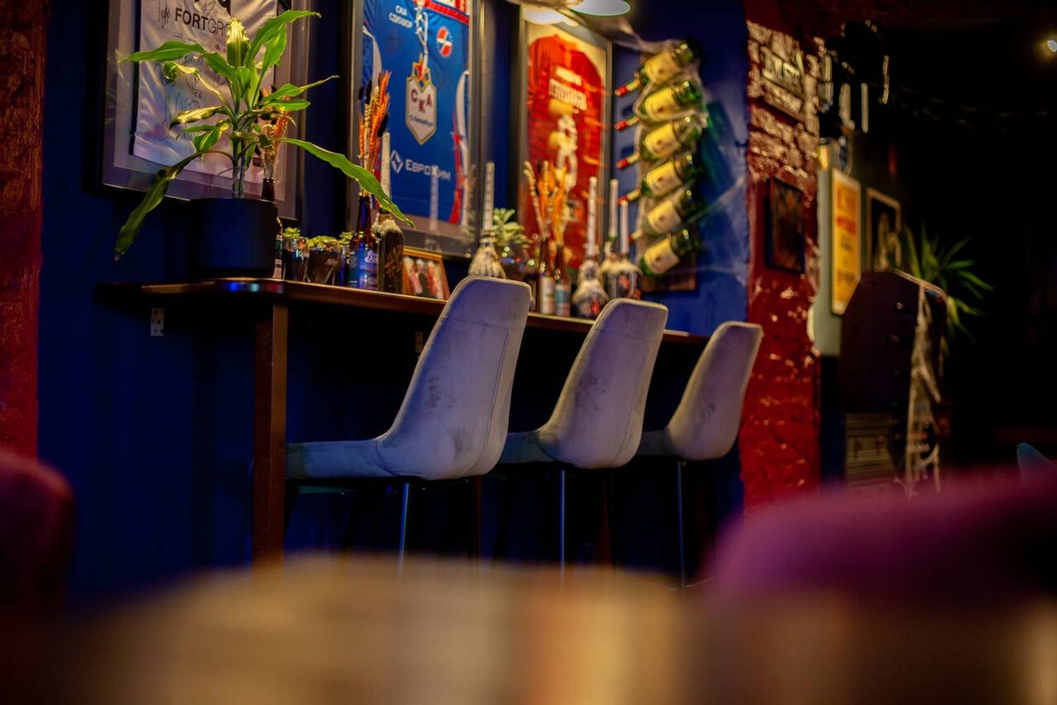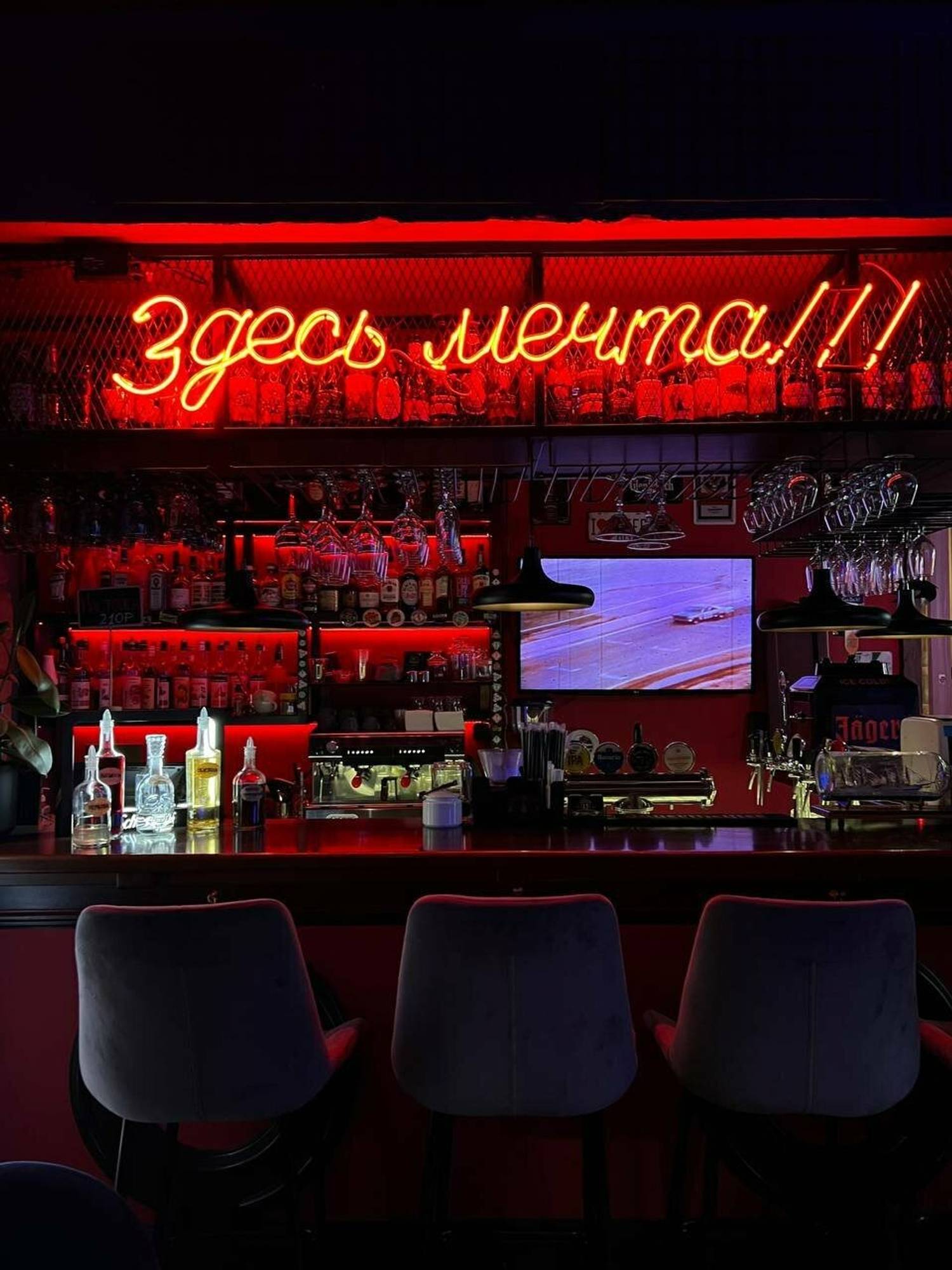 Атмосфера. Дизайн похож на коллаж из разных десятилетий: венские стулья из темного дерева соседствуют, советские плакаты и фотографиями известных футболистов. Центром пространства стала барная стойка с неоновой вывеской «Здесь мечта». Сюда приходят смотреть трансляции, а летом еще и слушать живую музыку.