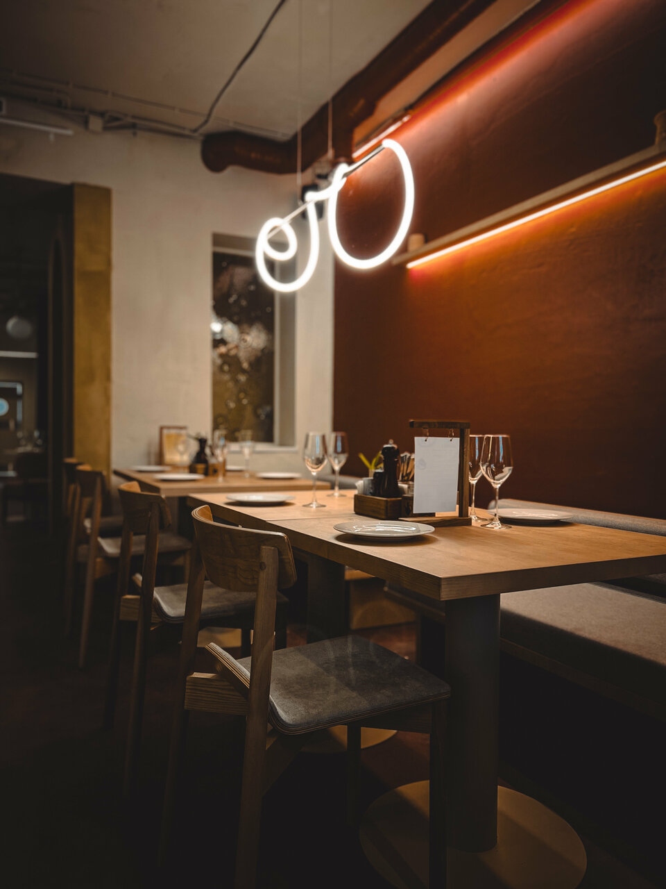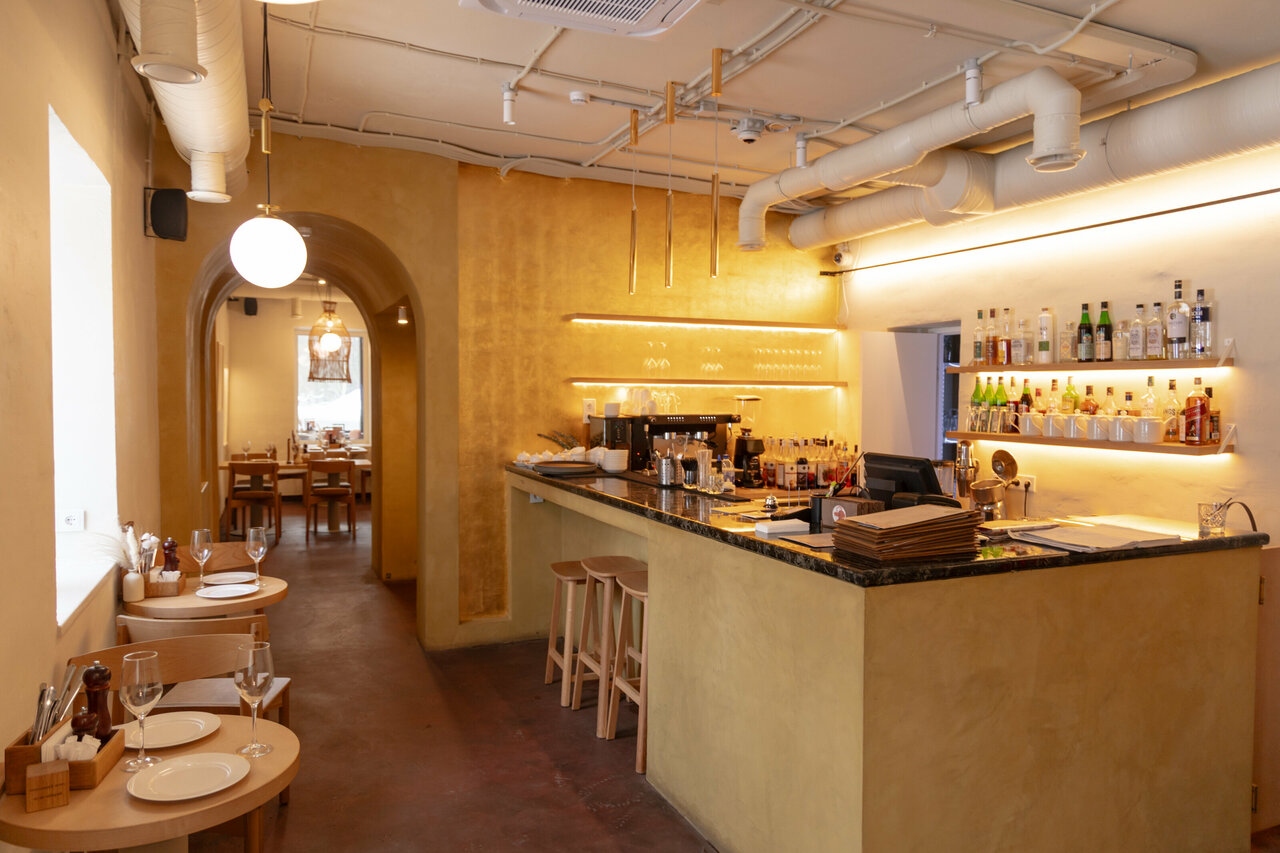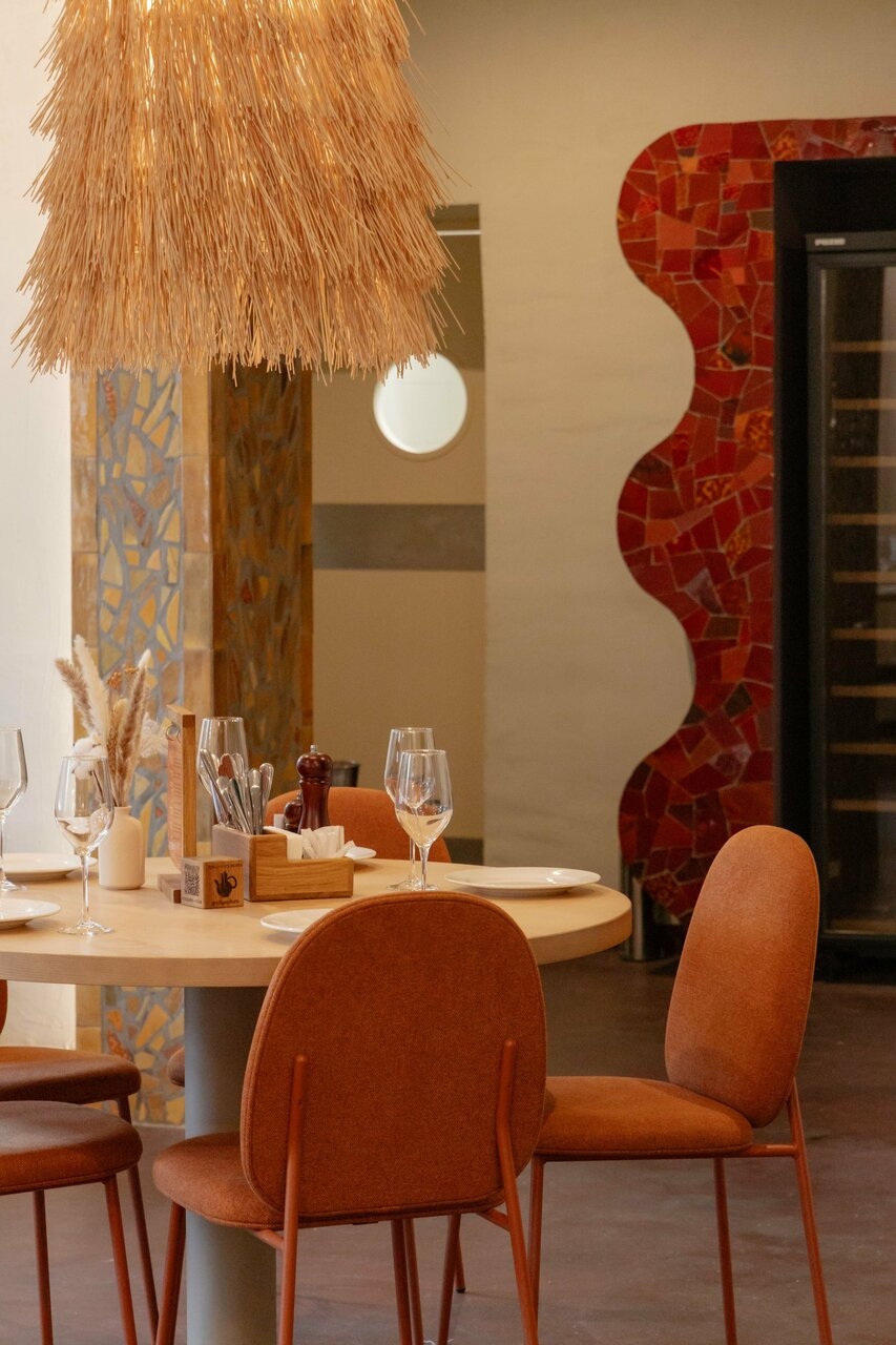 Атмосфера. Здесь создано многогранное и современное пространство с несколькими залами для трапез и мероприятий. В отделке использованы чистые и теплые тона с преобладанием терракотового цвета, который ассоциируется с уютом, пламенем свечи и огнем камина. В заведении есть продуманная детская комната, а по выходным зал превращается в концертную площадку с мастер-классами, караоке и стендап-выступлениями.