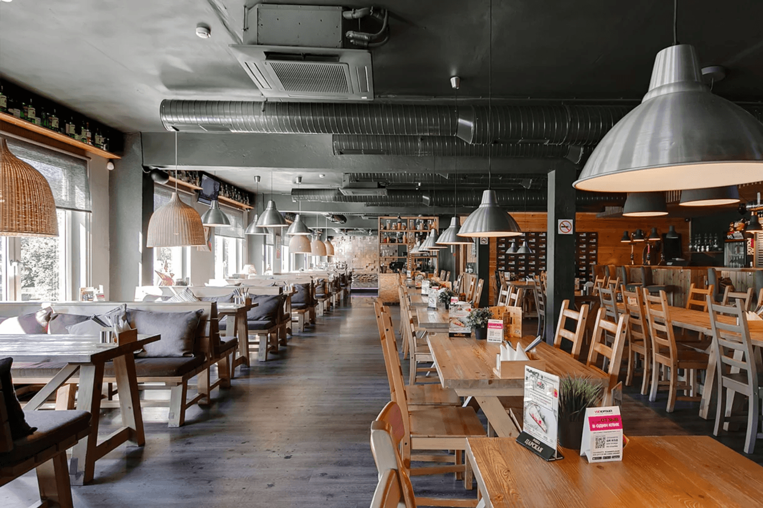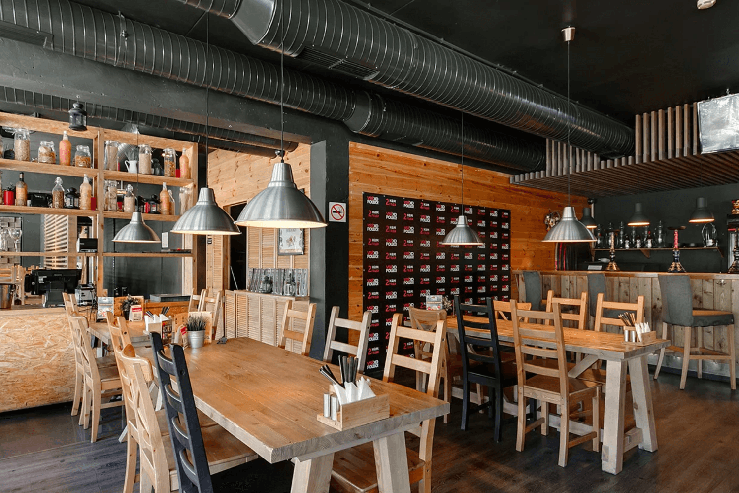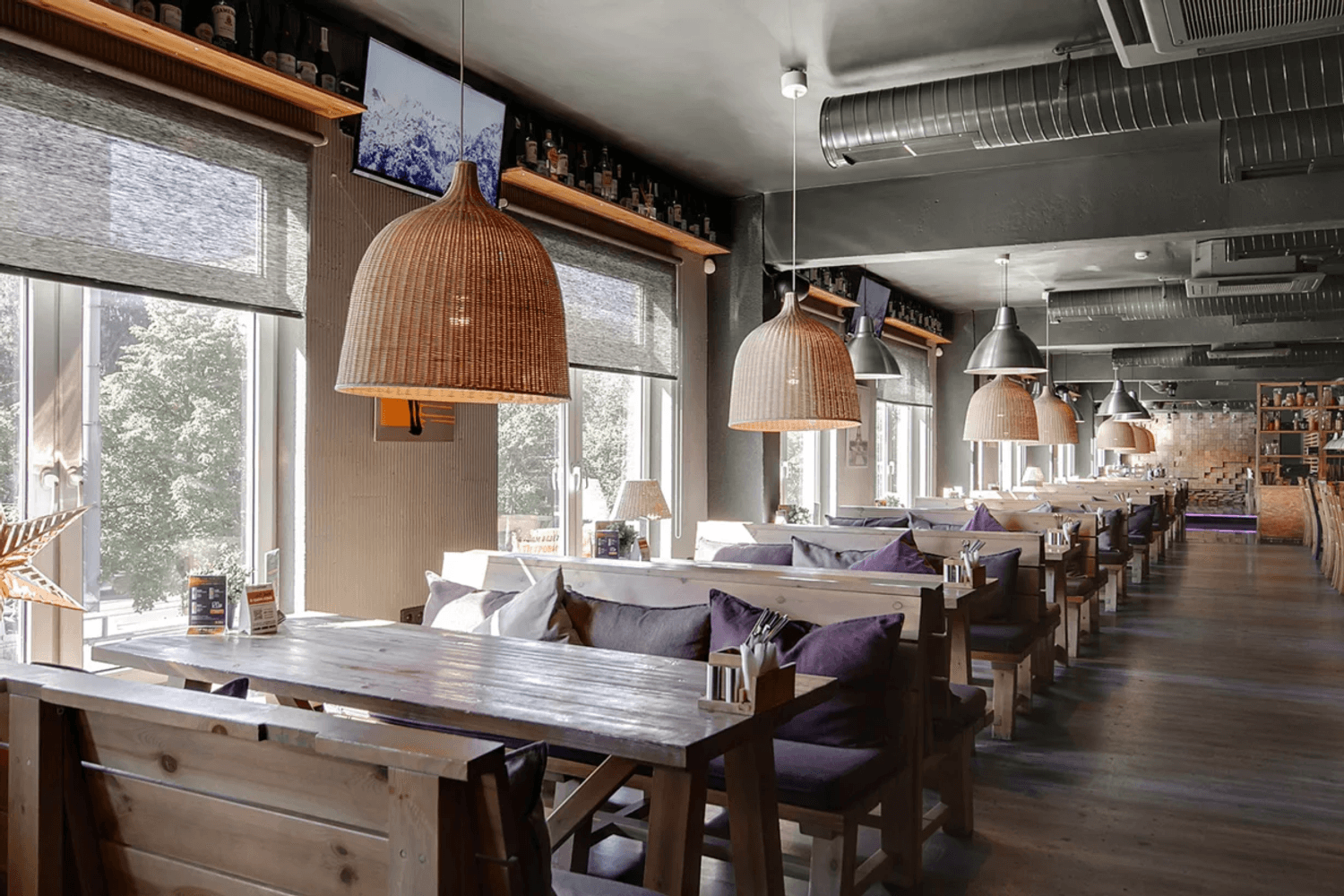 Атмосфера. Интерьер выдержан в современном уютном стиле: деревянная мебель, плетеные абажуры, мягкие подушки и живые растения. Вечером пространство оживает под музыку и свет, превращаясь в клуб с вечеринками и выступлениями артистов.