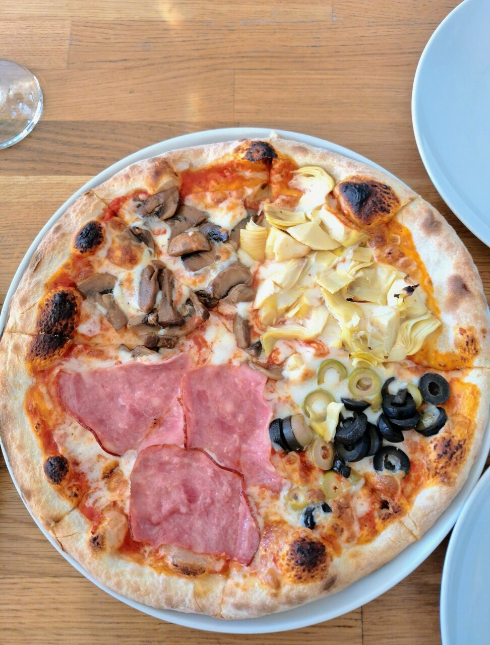 Еда и напитки. В меню — паста с разными начинками: ризотто со спаржей и цукини, карбонара, тальятелле с трюфельным кремом, равиоли с помидорами и базиликом. Также готовят детские варианты: бабочки с маслом и твердым сыром или базиликом и томатным соусом. Кроме того, есть пицца с розовая креветка, парма, с тунцом и луком и даже сладкие с шоколадным кремом и орехами.