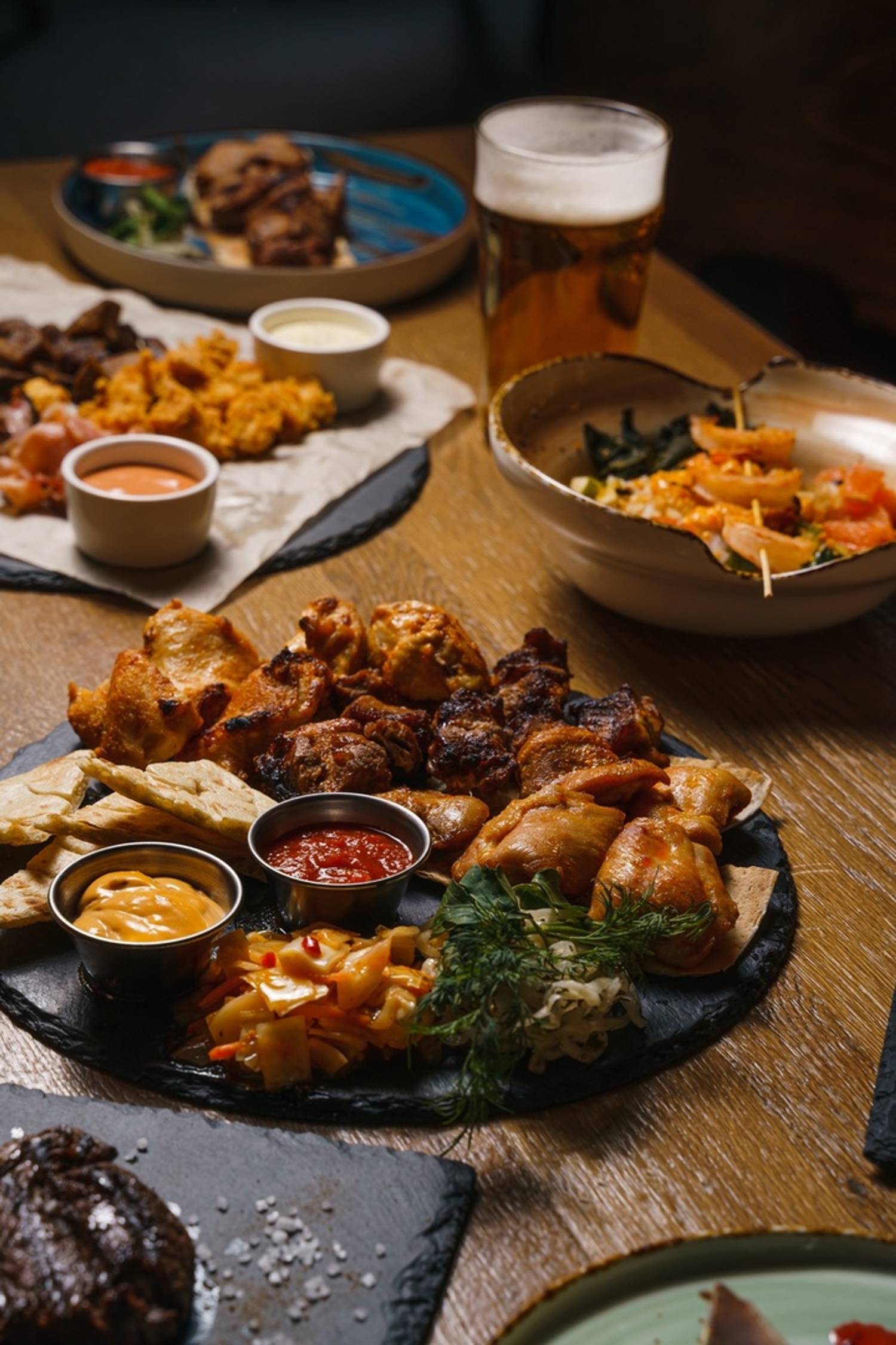 Меню — это настоящая смесь: от шавермы и фиш-н-чипс до люля-кебаба и куриных крылышек. Есть и хачапури, пицца, паста, падтай, борщ и том-ям. Для любителей суши и роллов есть отдельный раздел, где можно найти не только классические варианты, но и необычные антироллы с беконом. В баре - коктейли на любой вкус — от привычных до авторских с самбукой, водкой, джином и фруктовыми сиропами. А если придете компанией, попробуйте апероль спритц, сангрию в кувшине или наборы шотов.