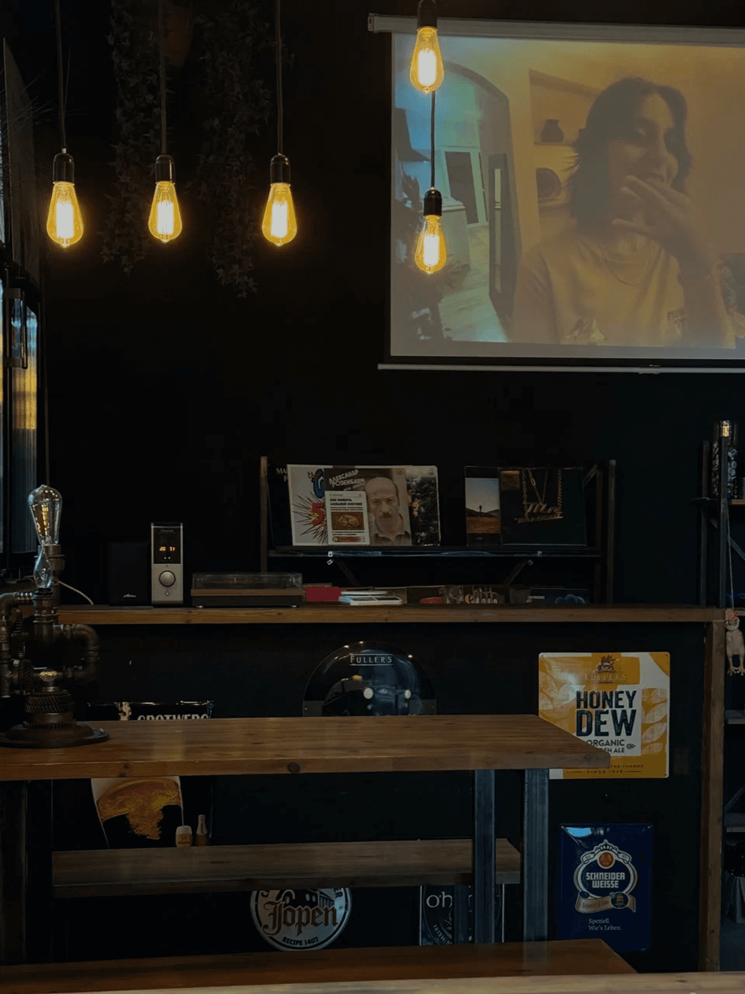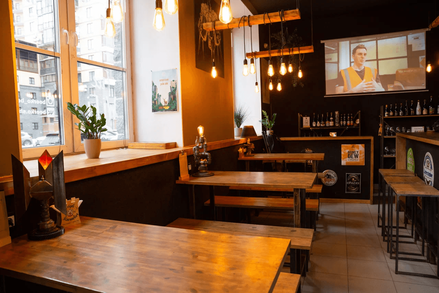 Атмосфера. Сюда приходят за расслабленной обстановкой. Внутри дизайн в стиле лофт с кирпичными стенами, металлическими элементами и мягким освещением. Для гостей есть зона с караоке и площадка для просмотра спортивных трансляций.