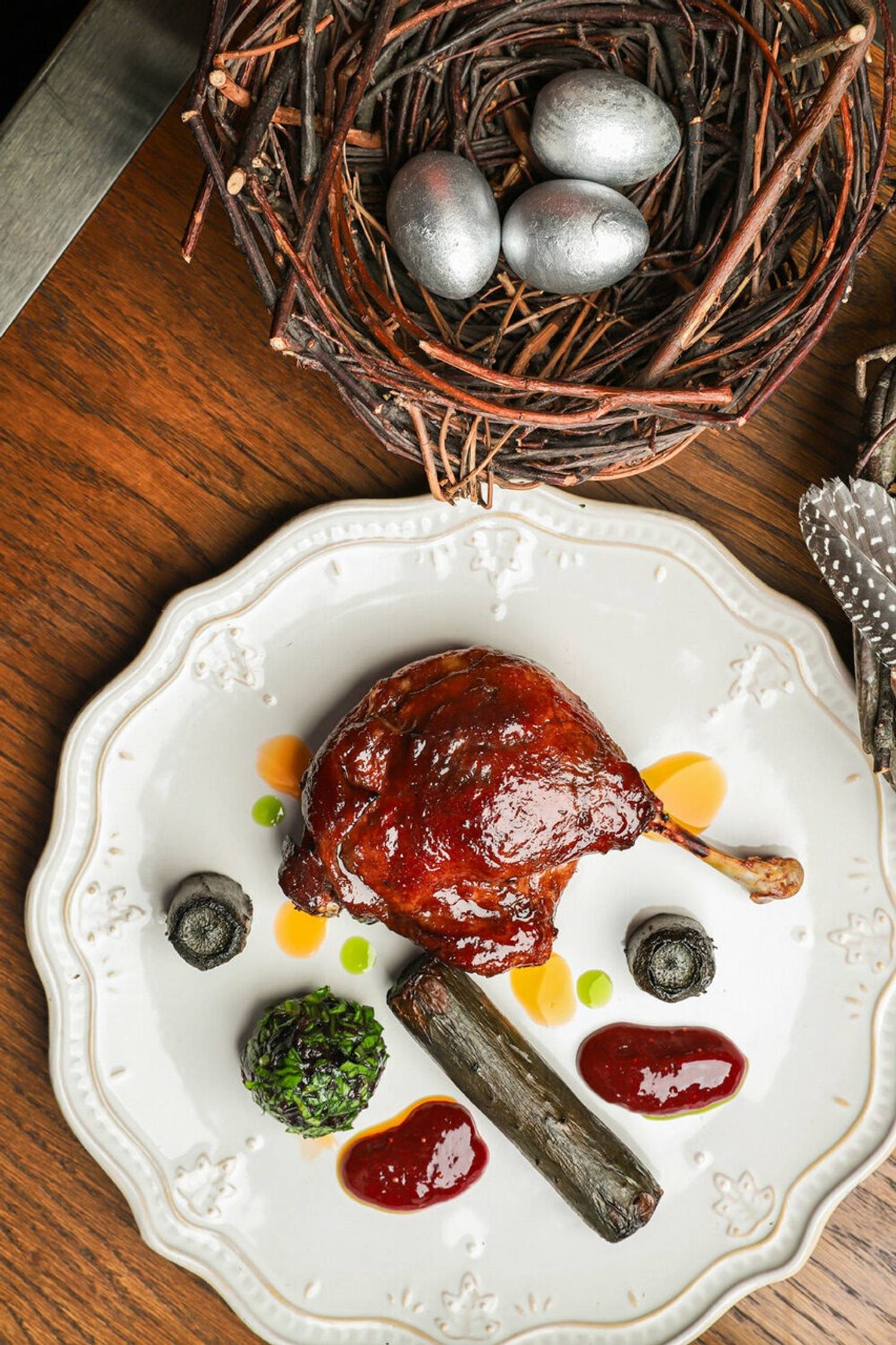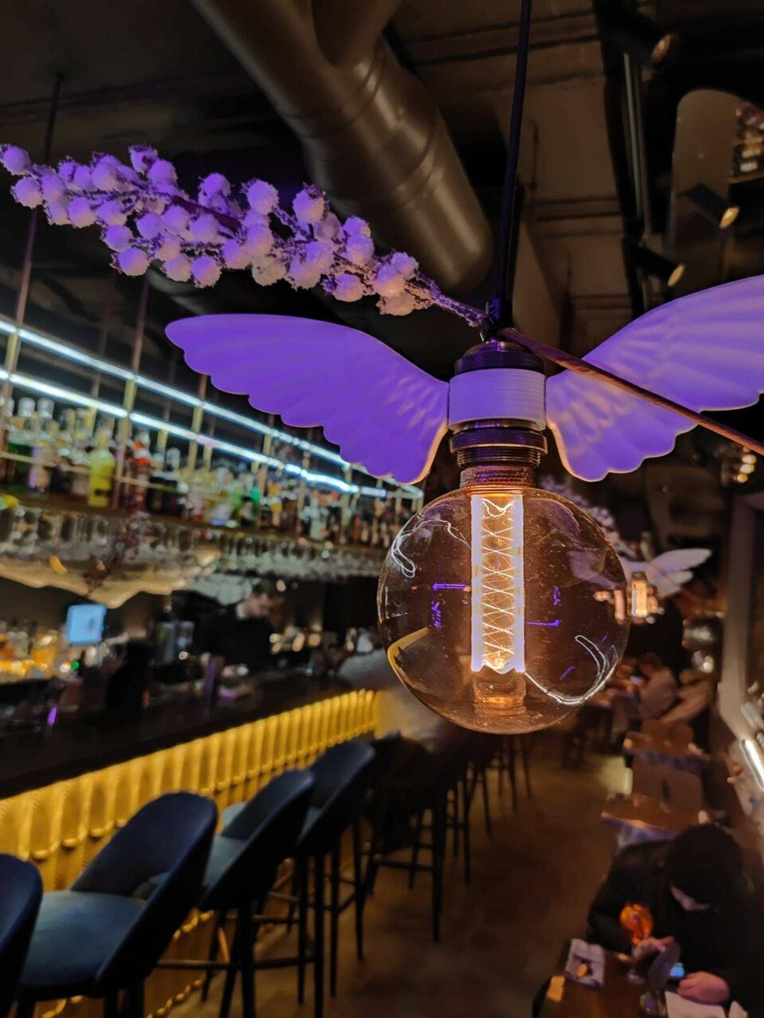Еда и напитки. В меню — понятные европейские и азиатские блюда: лосось с соусом из цуккини, картофельные ньокки с тунцом татаки, мясо по-азиатски с имбирем и лаймом. Напитки подают в оригинальных бокалах в форме воробушков, а для любителей необычных фото есть коктейль «Шасси» в пробирке.