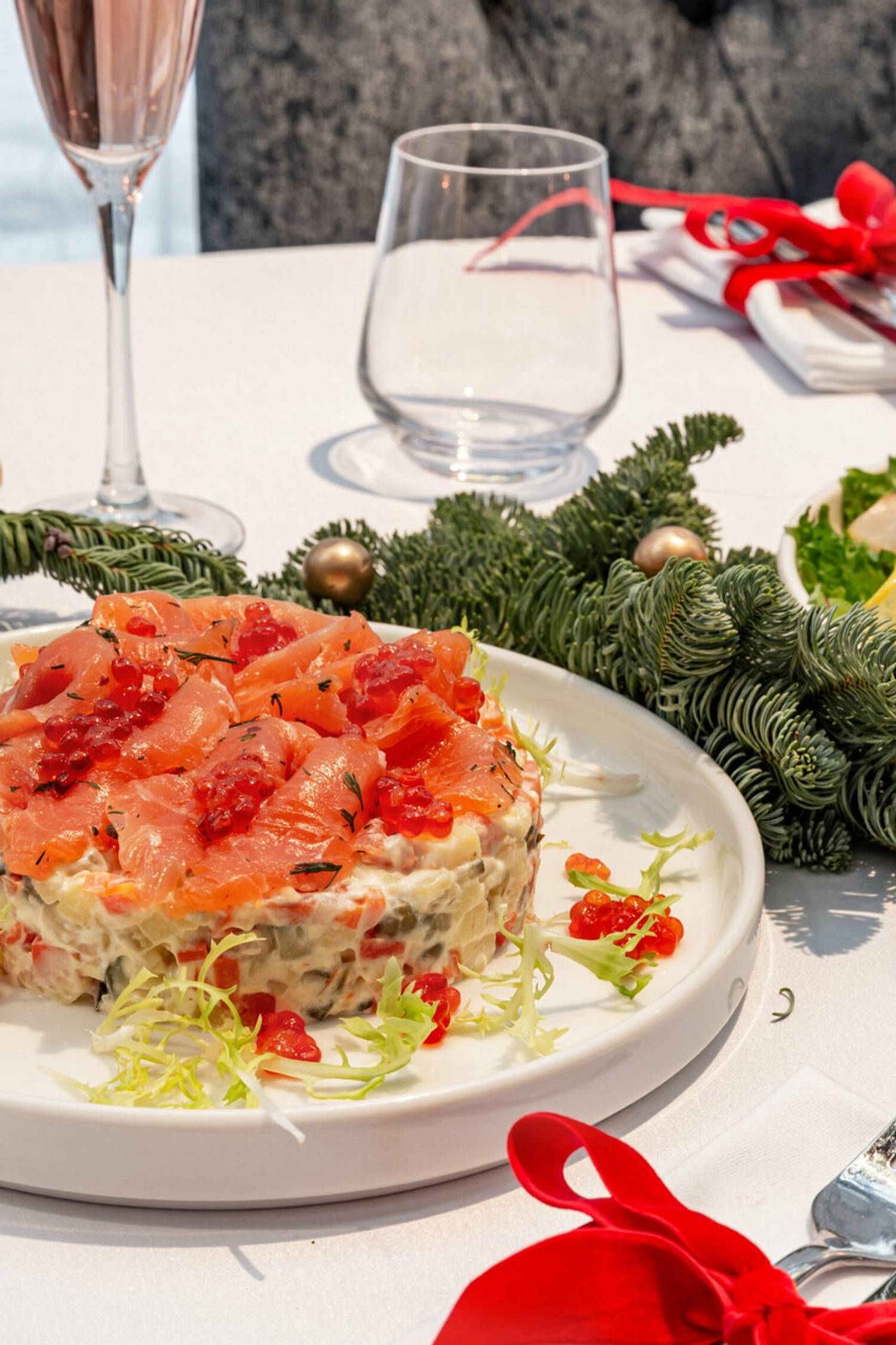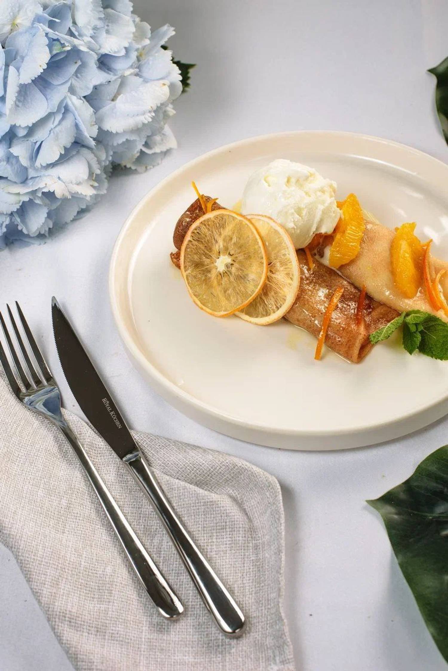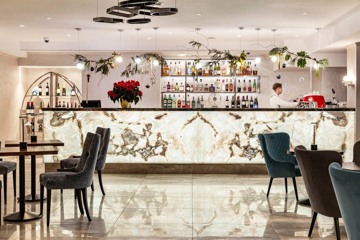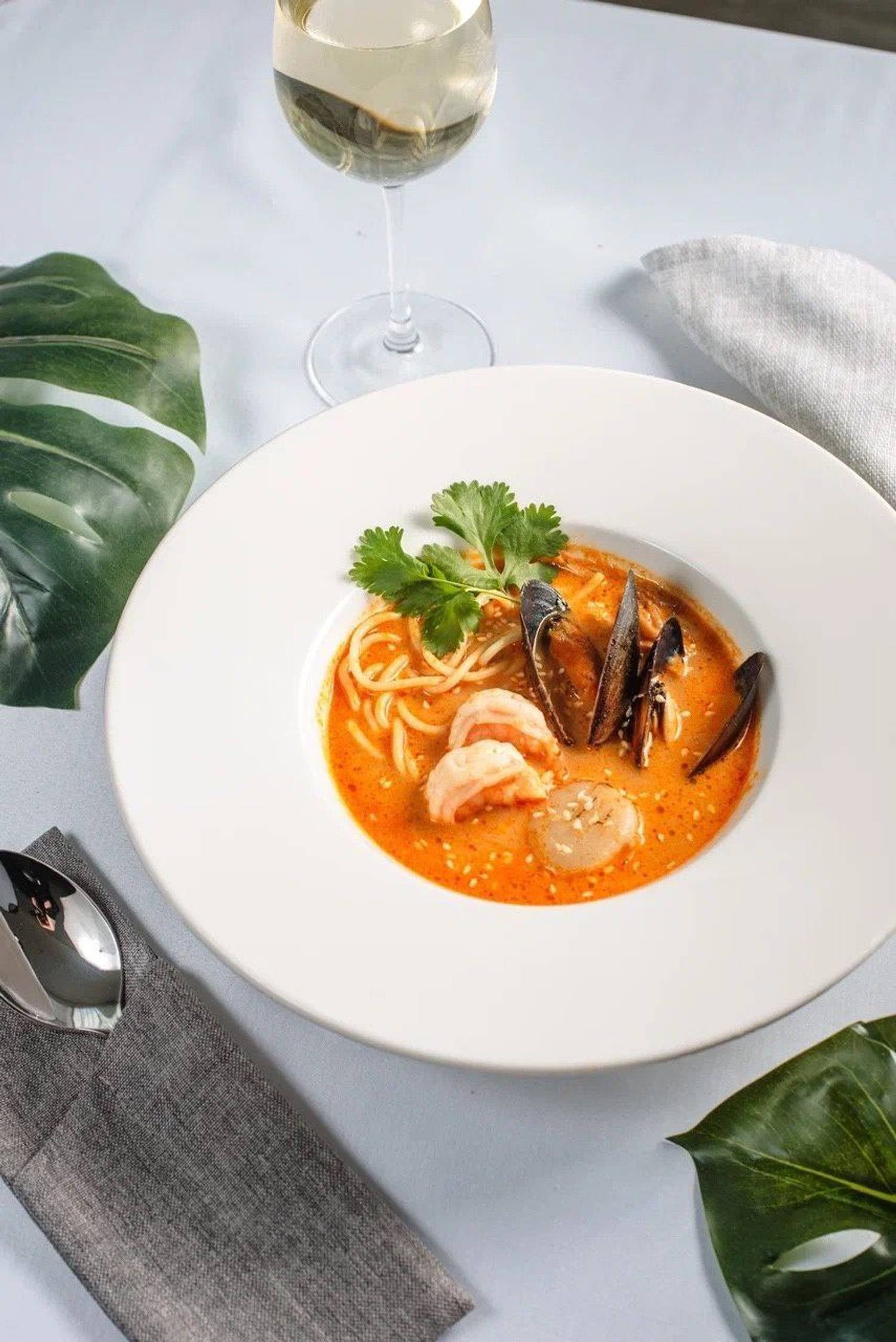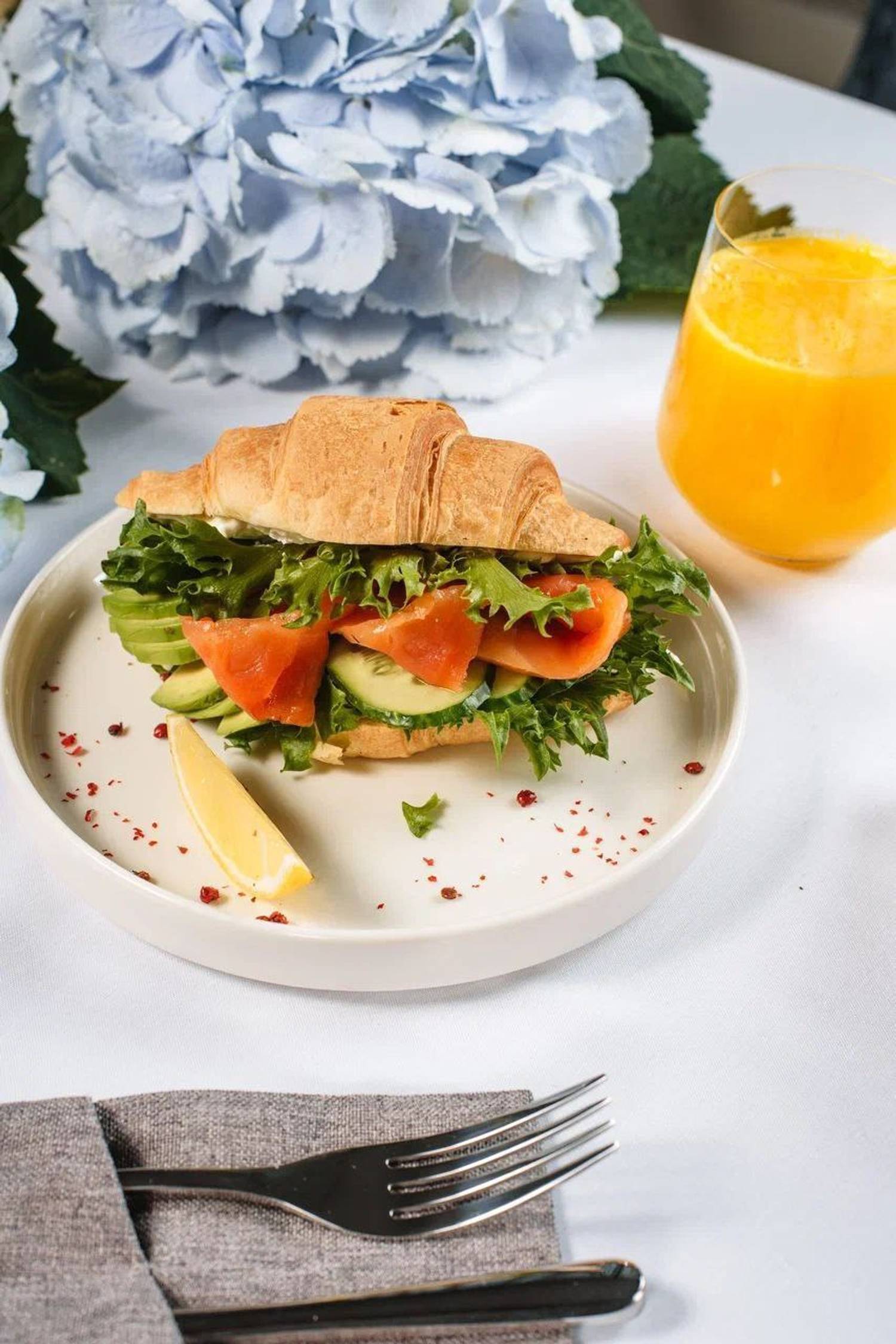 Еда и напитки. В меню — европейские блюда: литовский холодный борщ, филе сибаса со спаржей и креветочным биском, ризотто с шафраном и морепродуктами, клаб-сэндвич с картофелем фри. Ключевой особенностью являются ежедневные завтраки «шведский стол», а по выходным — бранчи с безлимитным игристым.