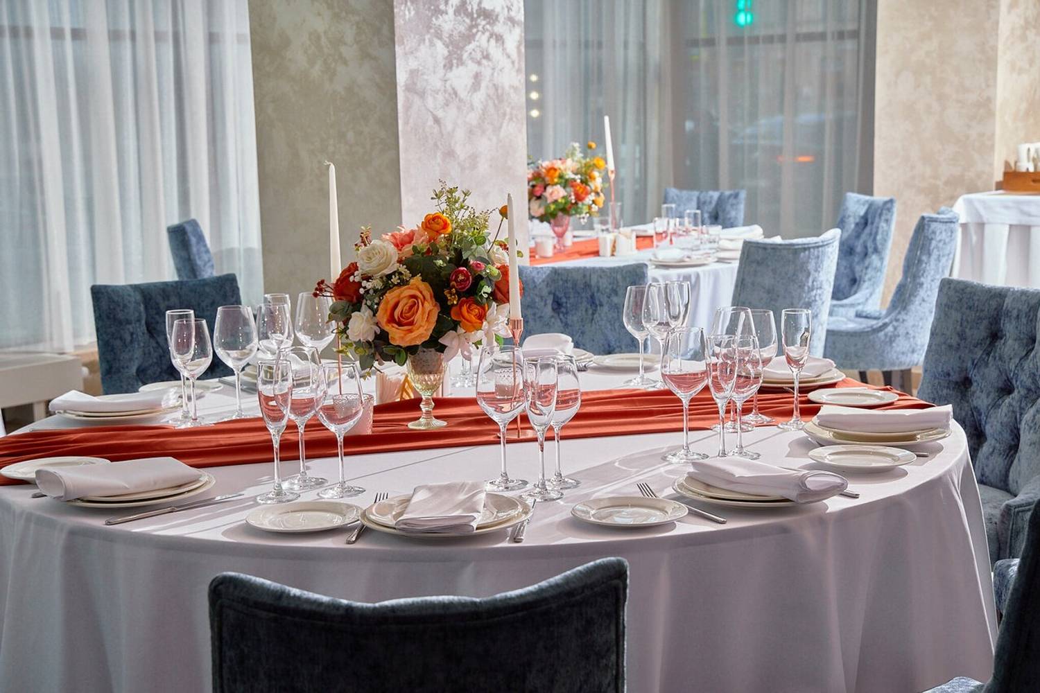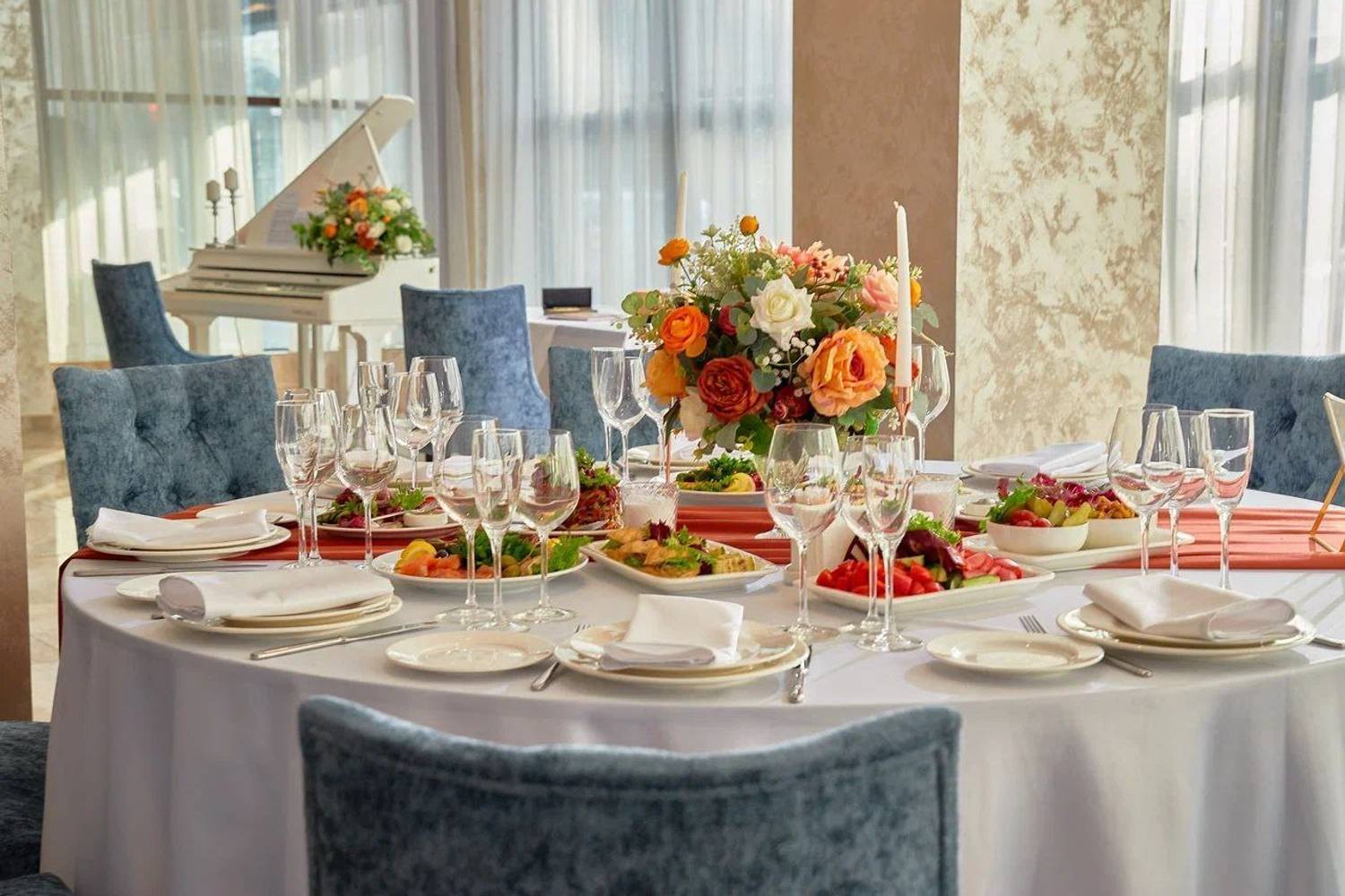 Атмосфера. Двухуровневое пространство наполнено естественным светом благодаря панорамным окнам. Элегантные залы с белым роялем в центре сохраняют баланс между торжественностью и камерностью, а общая вместимость до 170 гостей позволяет одновременно проводить мероприятия разного масштаба без ущерба для комфорта.