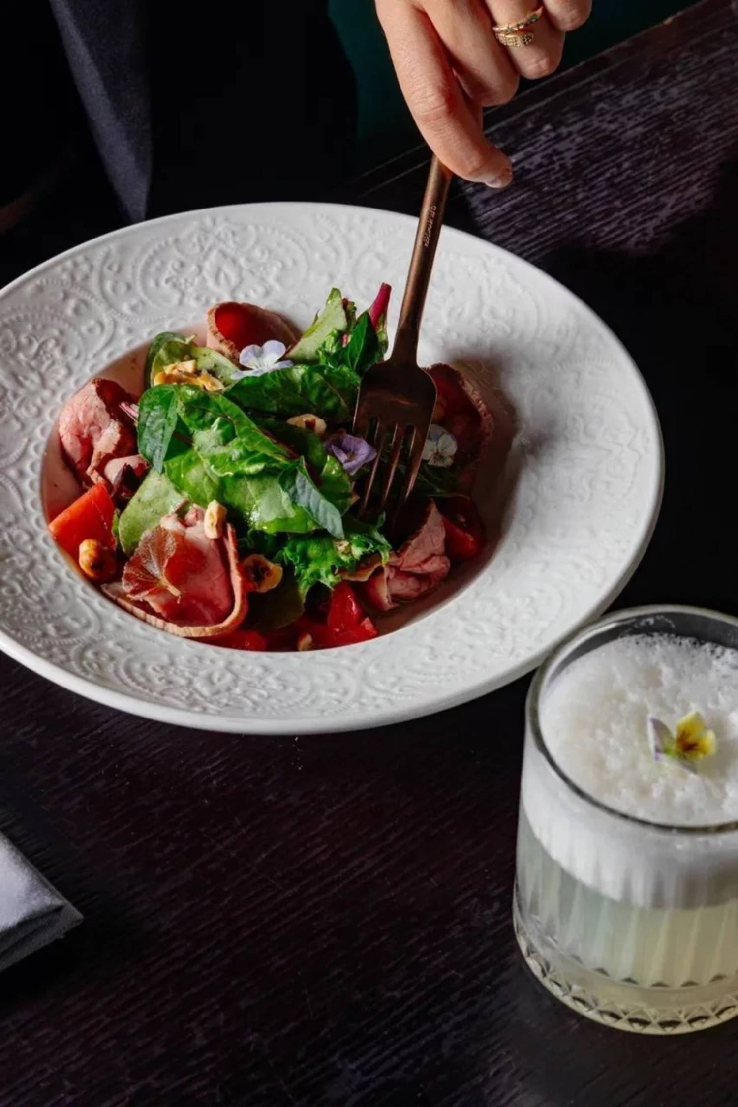 Еда и напитки. В меню европейская и русская кухни: шеф-повар готовит тартар из говядины, креветки, мидии, ростбиф и десерт — тыквенный чизкейк. Закуски в формате фингер-фуд включают риет из скумбрии с имбирным яблоком, тако со страчателлой и крем из баклажанов с перцем рамиро. В барной карте — классические и авторские коктейли, вина по бокалам и кордиалы.