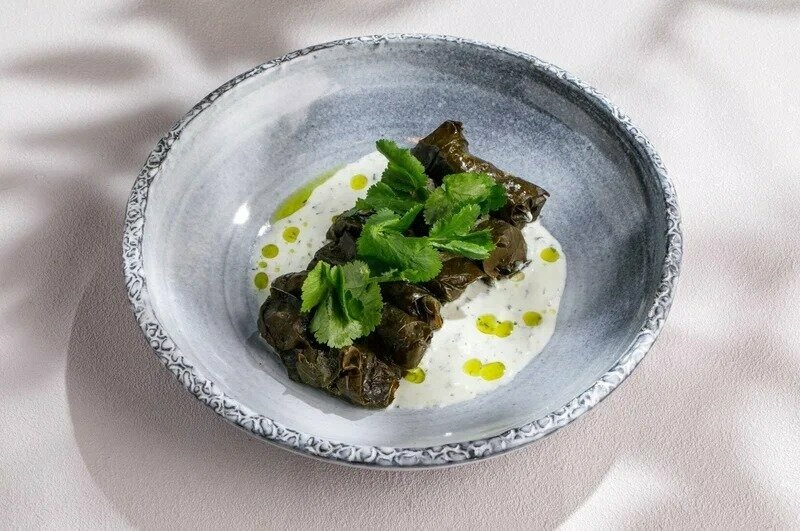 Еда и напитки. В меню — блюда кавказской и среднеазиатской кухни: хачапури на шампуре, ливанские жареные самбусеки, пиде с куриным шашлыком и грибами, хычин с картофелем, сыром и луком. На закуску берут долму с фетой, хрустящие креветки в соусе том ям, а на десерт мятный меренговый рулет с фисташкой и кекс горячий шоколад.