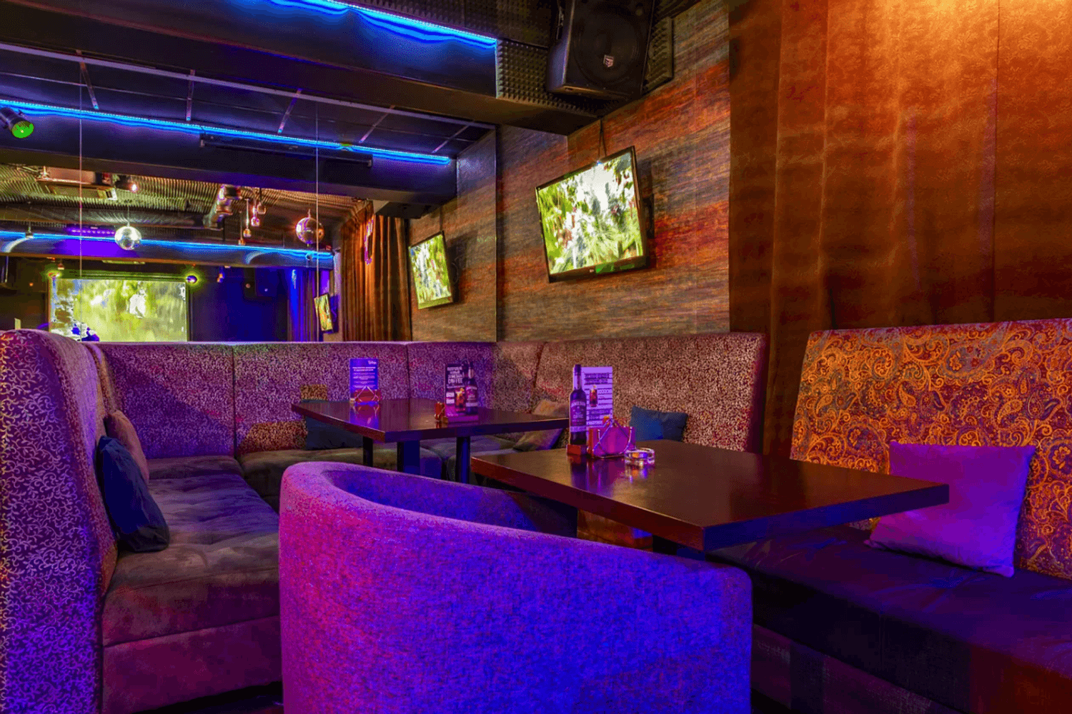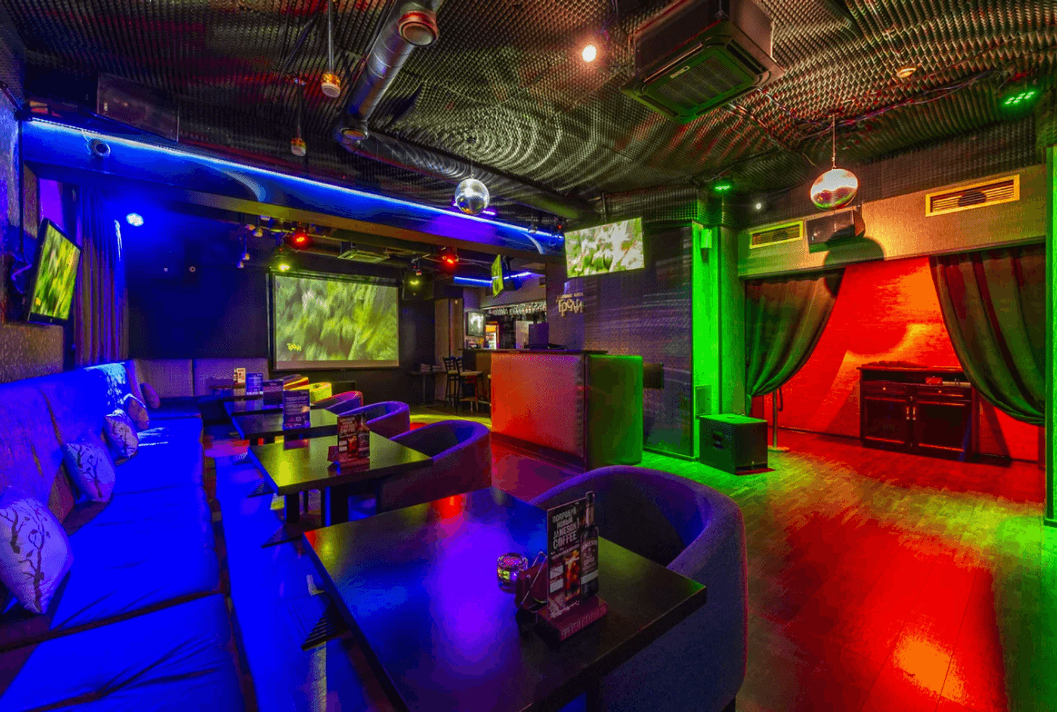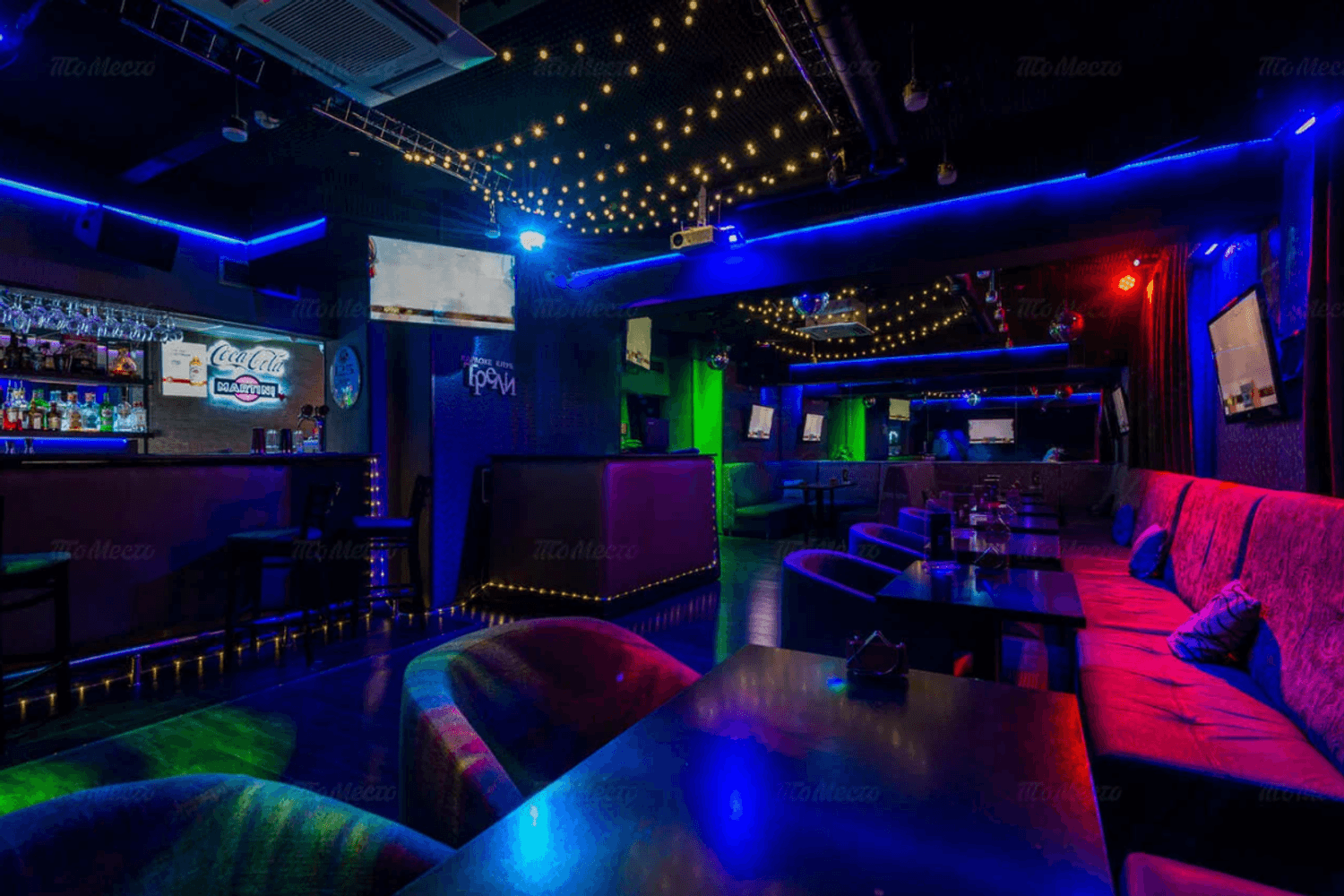 Атмосфера. Здесь создано яркое пространство с продуманной звукоизоляцией и приглушенным светом, а отдельные помещения создают атмосферу приватности. В главном зале с контактным баром и уютных комнатах с диванами гости могут почувствовать себя настоящими звездами сцены.