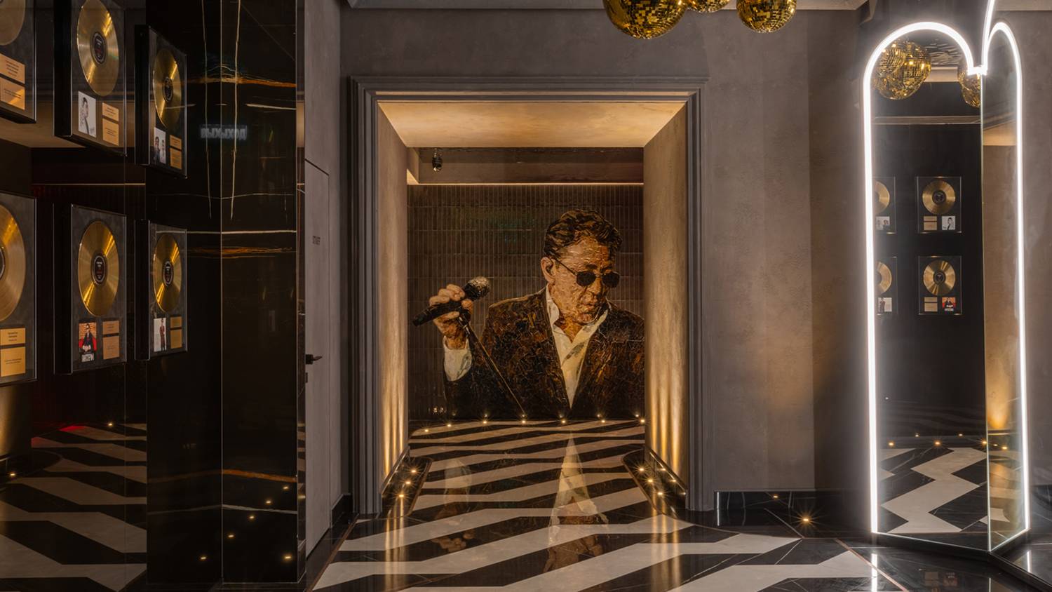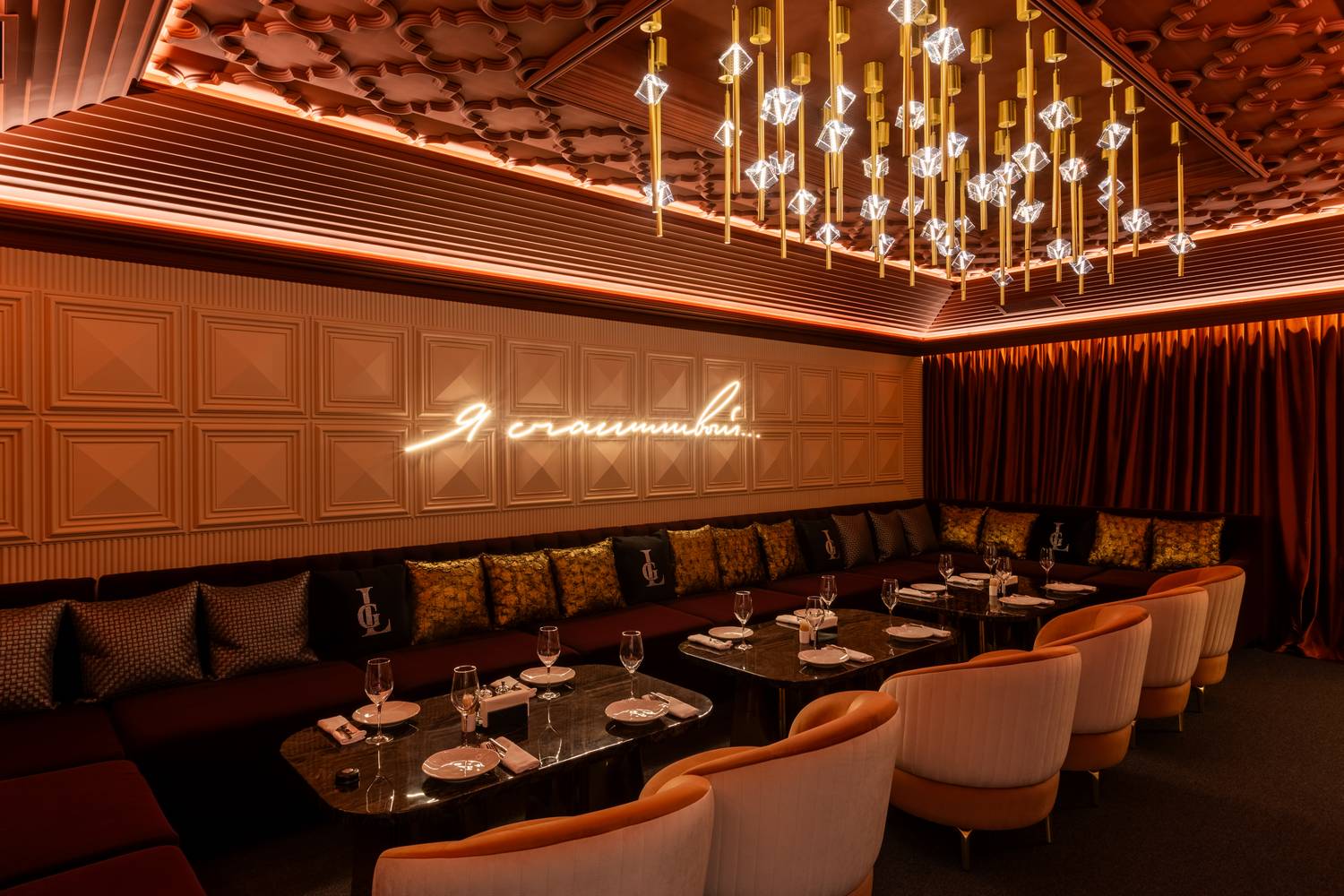 Атмосфера. Этот бар напоминает одновременно элегантный лаунж и динамику музыкальных вечеров: приглушенное освещение, комфортные зоны для компаний и караоке-площадка. Элементы декора освещает розовая неоновая подсветка. Об авторе бара напоминает портрет Григория Лепса с микрофон на одной из стен.
