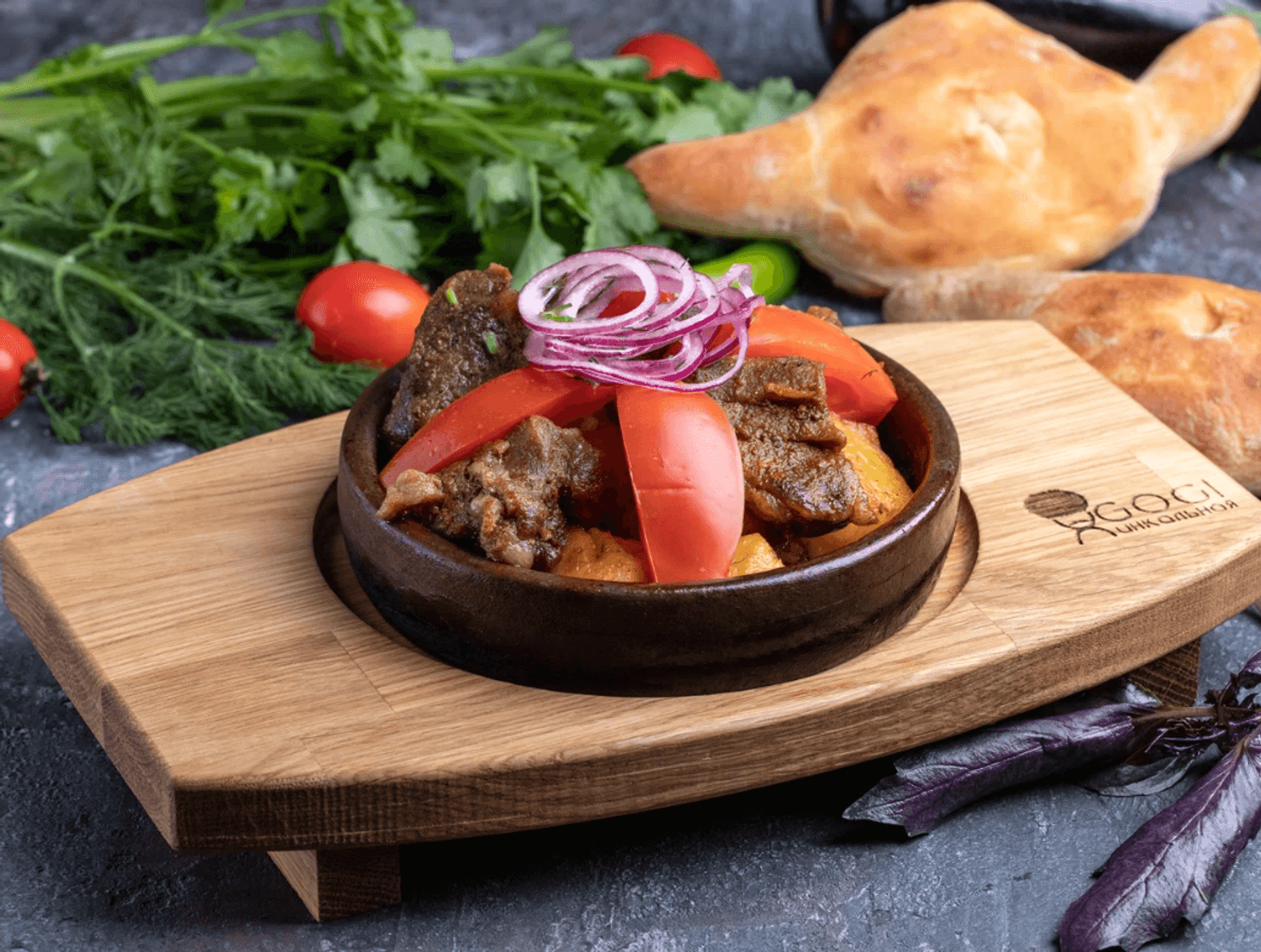 Еда и напитки. В меню — грузинские блюда: хинкали с пятью видами начинок: от баранины до сыра с тархуном, хачапури по-царск с копченым сыром, говядина по-грузински, люля-кебаб из курицы с сулугуни. На сладкое подают рулет с черносливом и грецкими орехами и вишневый суп с мороженым.