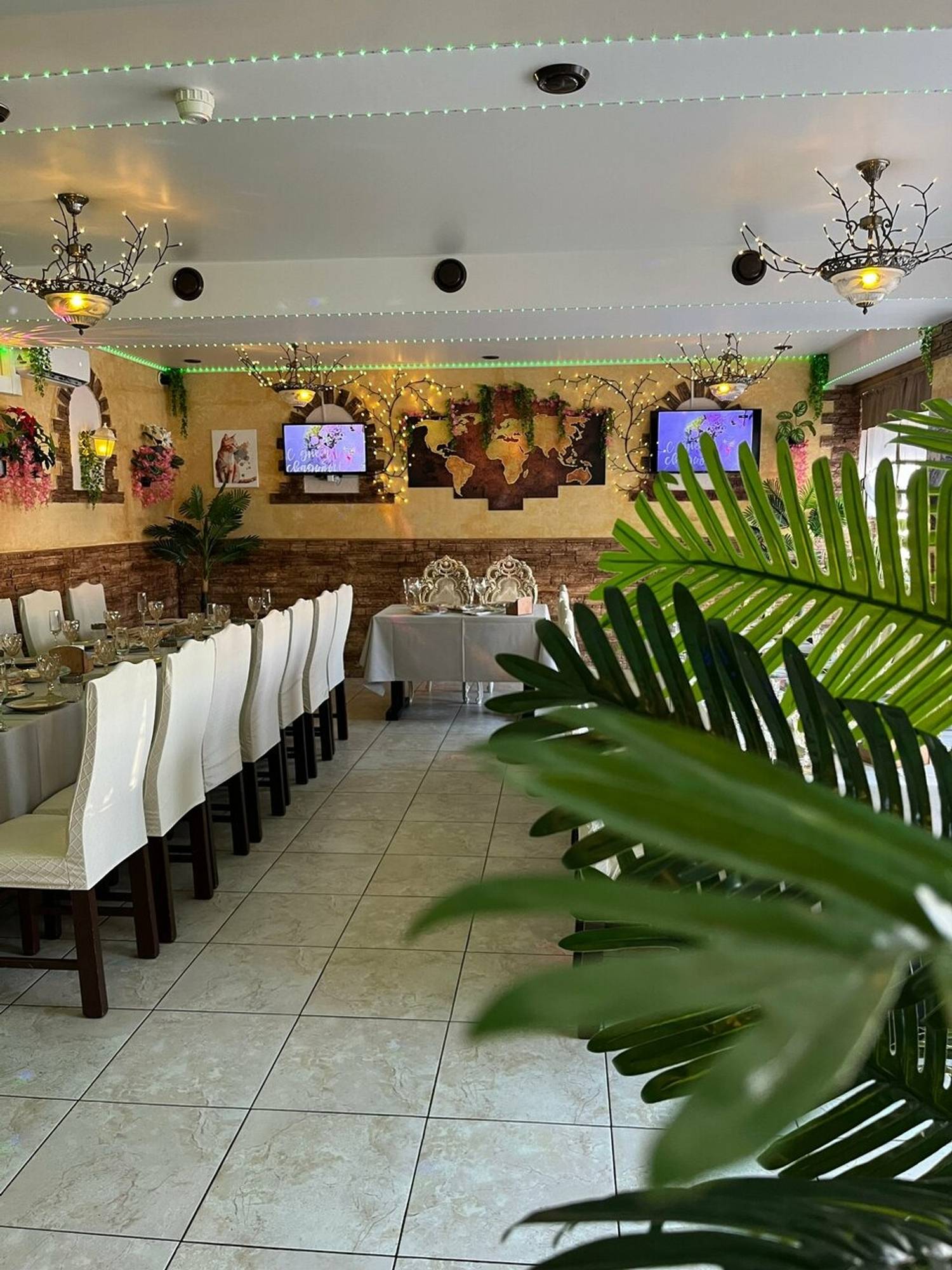Атмосфера. Светлый зал с мягким светом, изящным декором и восточными акцентами настраивает на торжественный лад. Здесь достаточно места и для шумной компании, и для уютного семейного застолья. А про организаторские заботы пока можно забыть: все от оформления до музыкального сопровождения здесь сделают за вас.