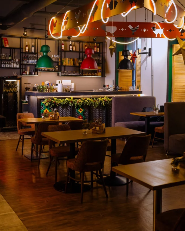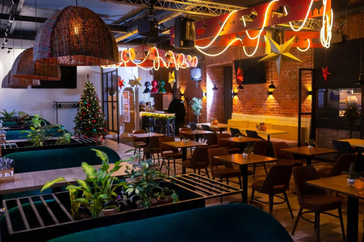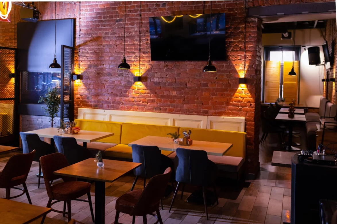 Атмосфера. Два просторных зала оформлены в уютном лофтовом стиле: кирпичные стены, открытые коммуникации, плетеные абажуры и домашние растения, неоновая подсветка и этнический декор. По будням здесь проходят квизы, а по уикендам играет живая музыка. Все здесь словно создано для комфортного отдыха и хорошего настроения.
