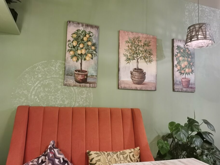 Атмосфера. Ароматы свежеиспеченной пиццы, оливкового масла и сушеных трав создают ощущение, что вы оказались в гостях у большой итальянской семьи. Яркий интерьер заведения привлекает внимание каждого: картины с красивым пейзажем, оранжевые и синие диваны, свисающие с потолка цветы.
