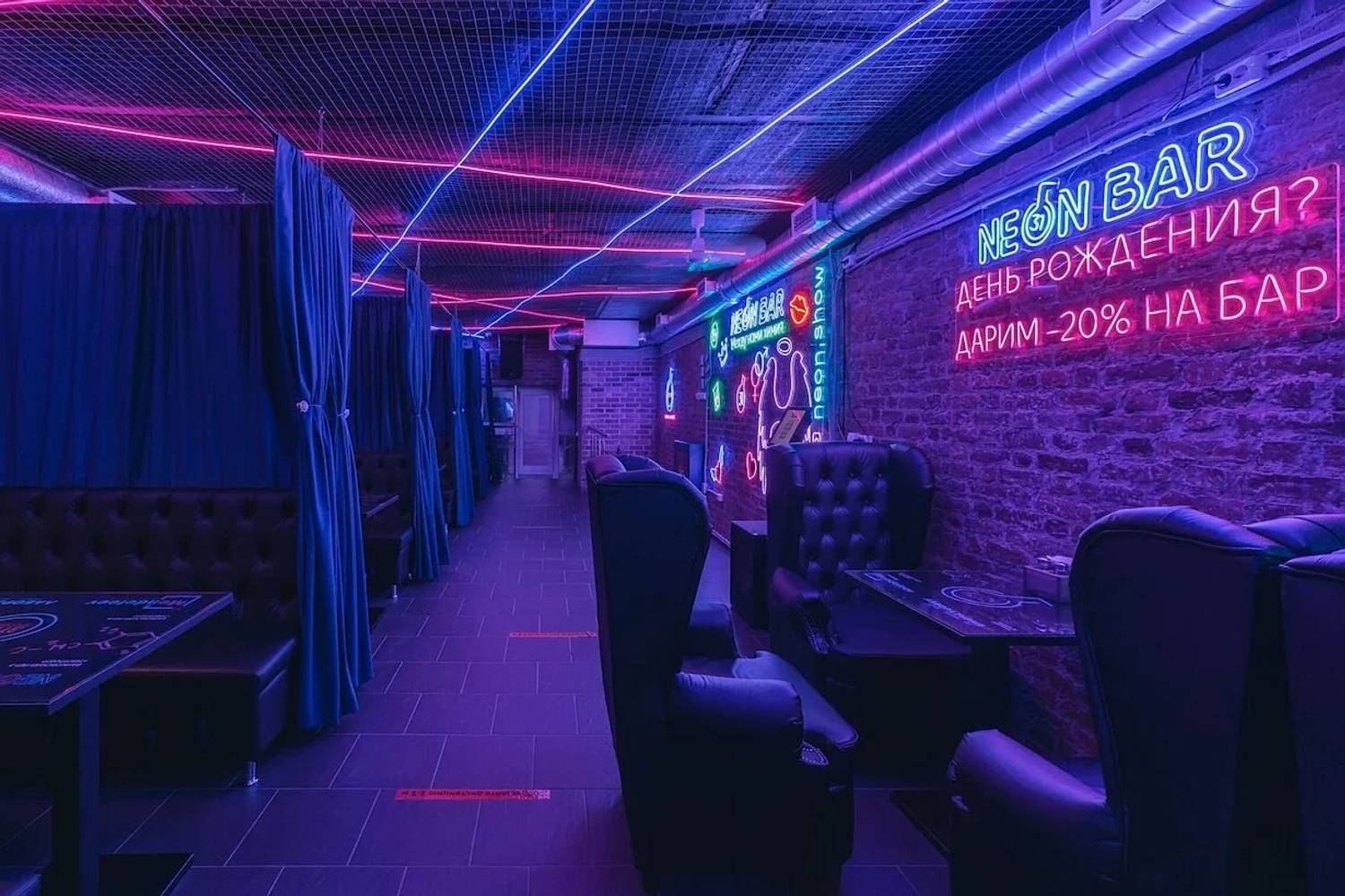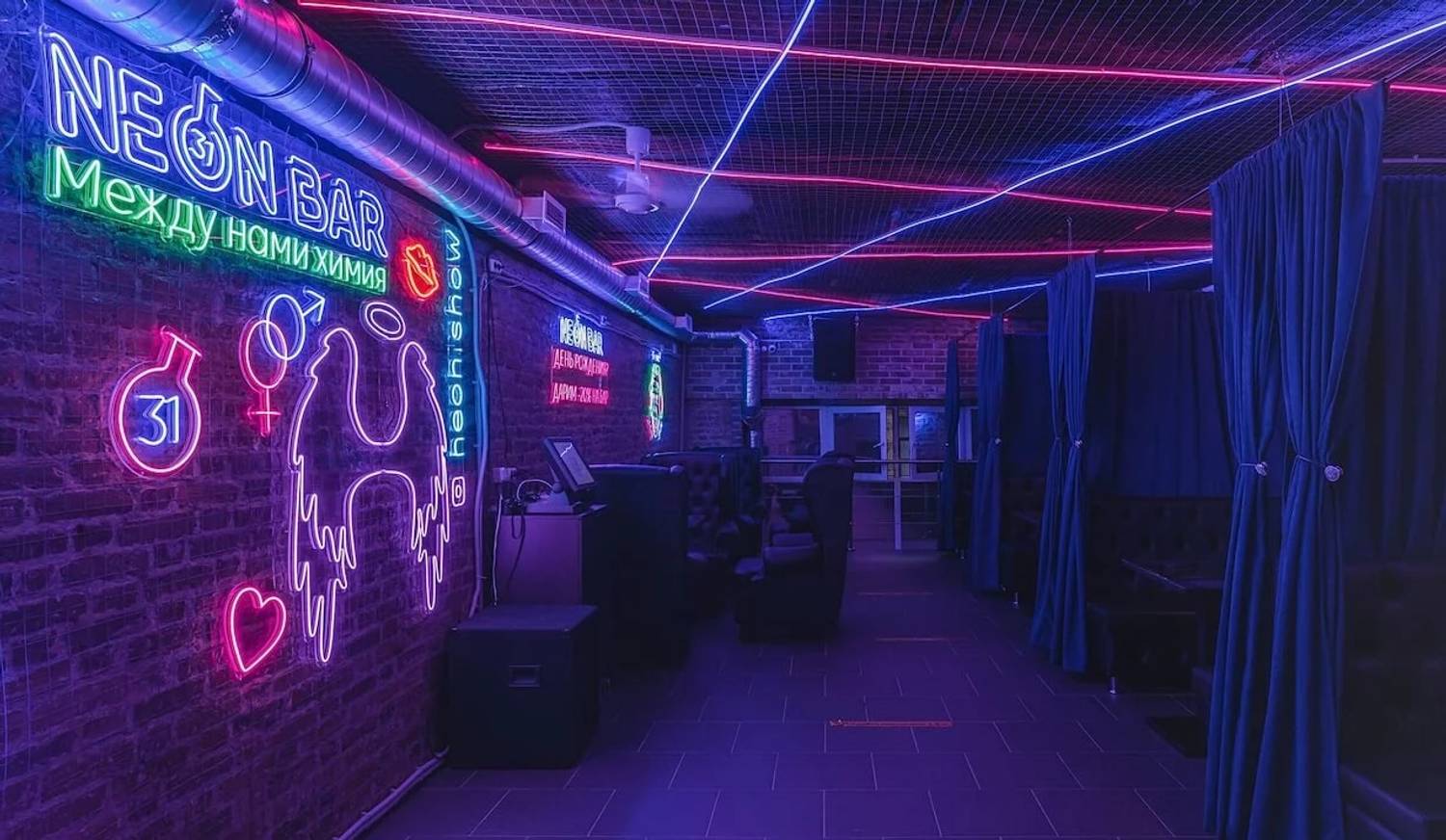 «Неон» по адресу Банковский переулок, 3 — это трехэтажное пространство с энергией ночной жизни и неоновой эстетикой.