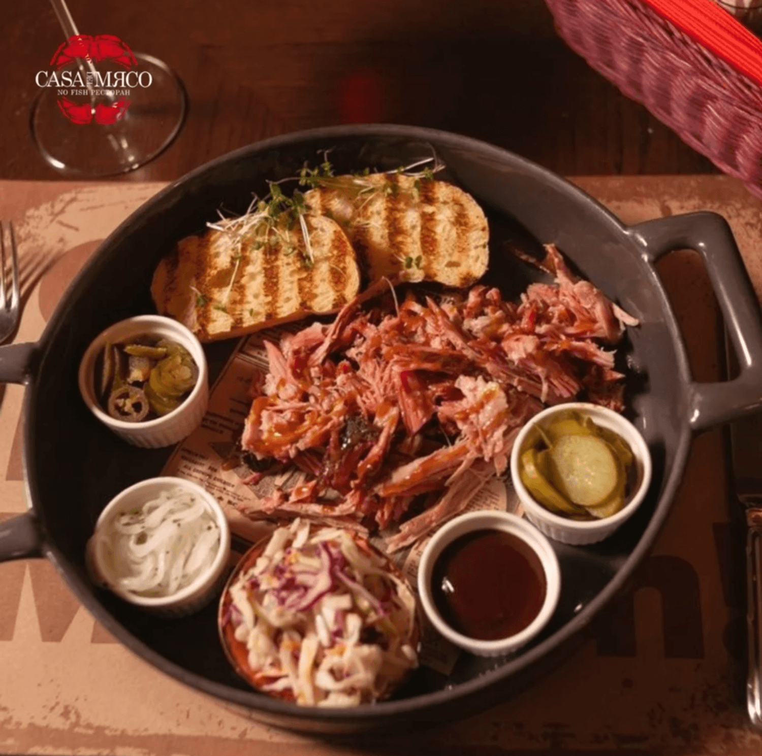 «Casa del Mясо» по адресу Биржевой проезд, 6 — это мясной ресторан в историческом здании пакгауза.