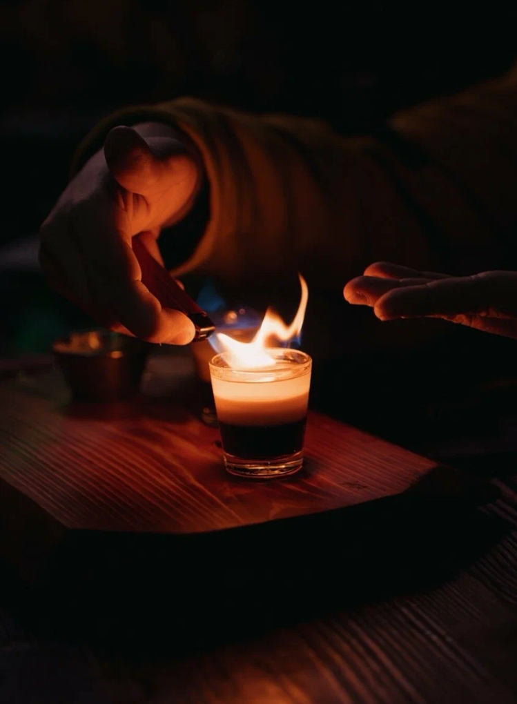 Еда и напитки. В меню — закуски, такие как наггетсы с соусом и сырные палочки. Также можно заказать мясные и рыбные нарезки, которые идеально дополнят напитки. Бар предлагает коктейли с характером и широкий выбор алкоголя, включая ром, виски и водку.