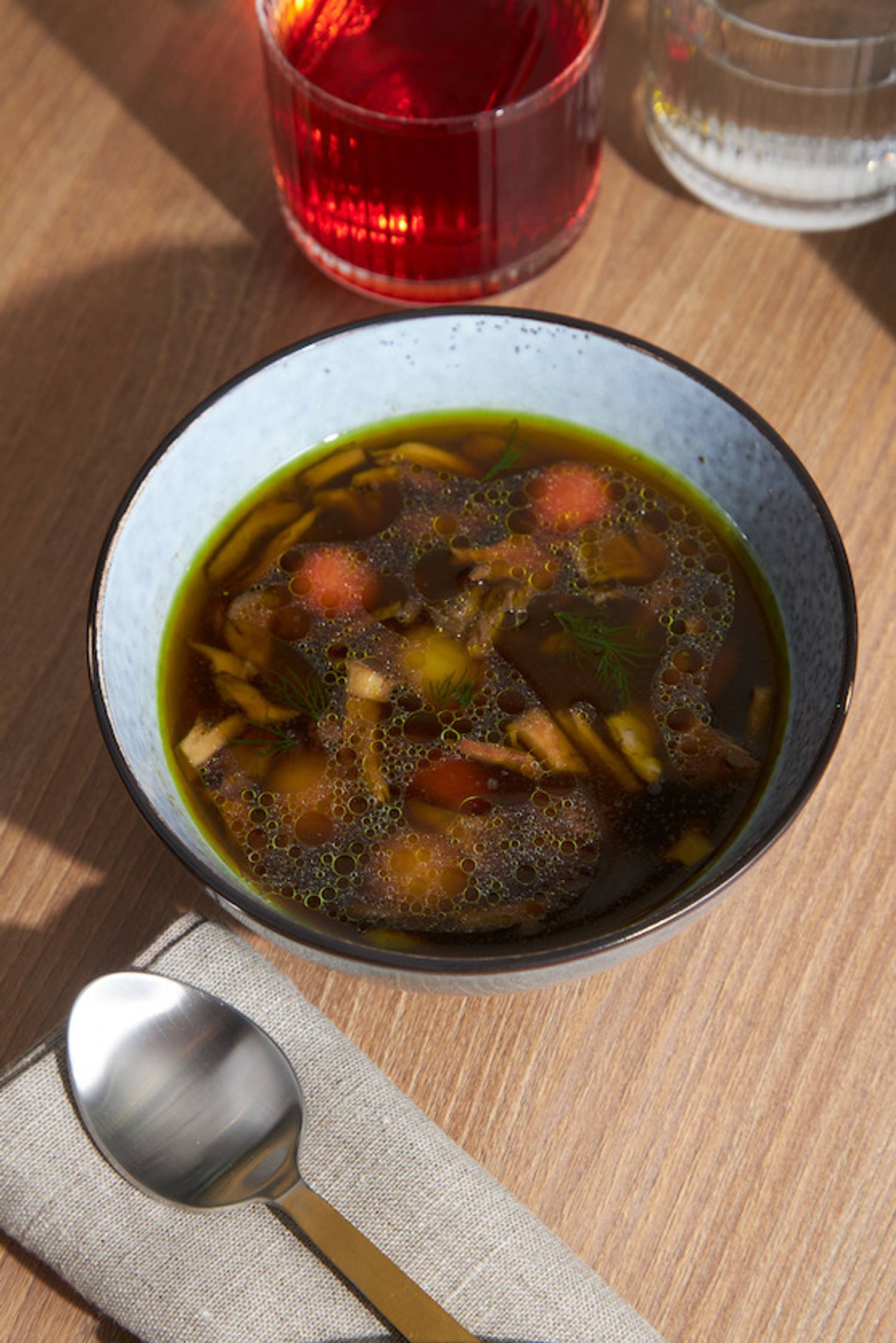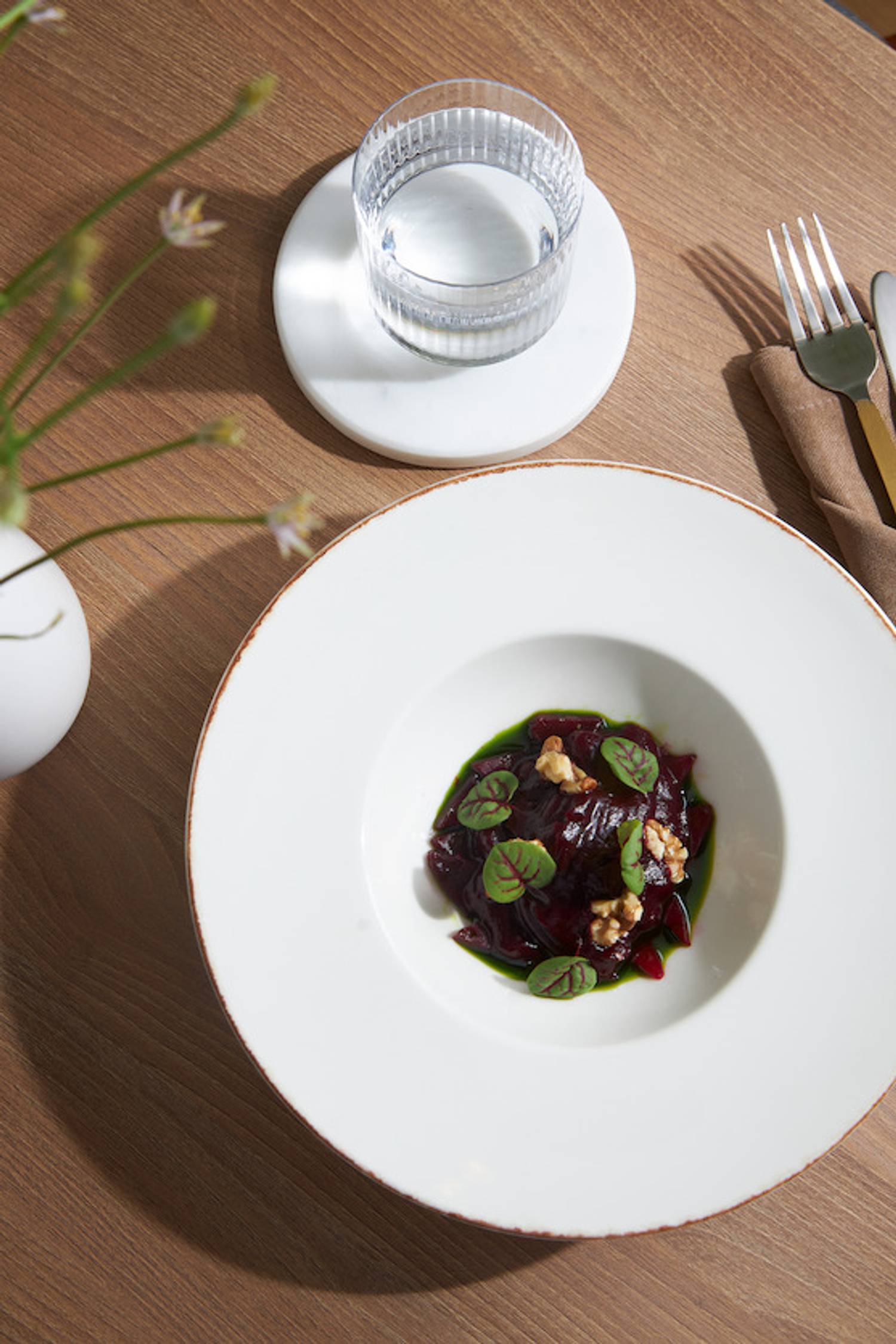 Еда и напитки. В меню — авторские интерпретации европейской кухни от шефа Владислава Владыкина: гребешки с цитрусовым пюре, стейк из нерки, баранина под шоколадным соусом. Винная коллекция составлена как из классических вин, так и редких экземпляров. К вину подают закуски: антипасти, сет сыров с виноградом и гриссини, брускетта с лососем и творожным кремом.