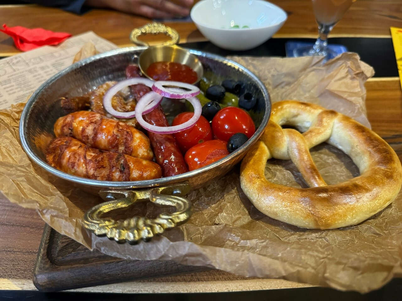 Еда и напитки. Меню сочетает классические блюда русской и европейской кухни. На закуску подают традиционный борщ и солянку, а также сливочный суп с угрем. Для основного блюда можно выбрать стейк, бургер или салат с кальмарами. Порции большие и сытные, что неизменно радует гостей.