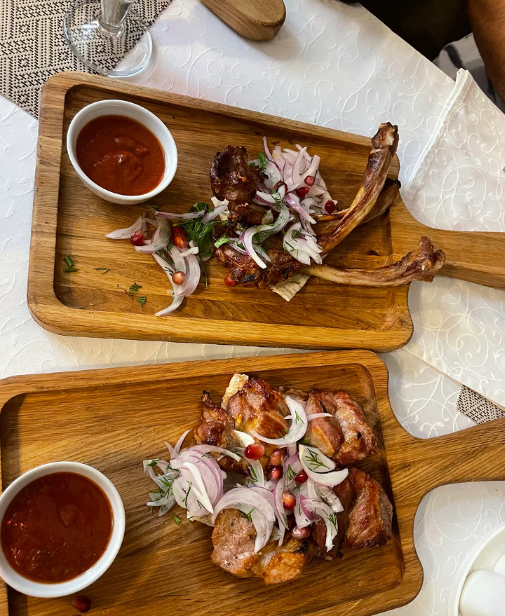 Еда и напитки. В меню — хинкали по семейному рецепту, хачапури с хрустящей корочкой и сыром сулугуни, ароматное чахохбили и нежная чихиртма. Особое внимание стоит уделить домашнему грузинскому вину, которое привозят специально для ресторана.