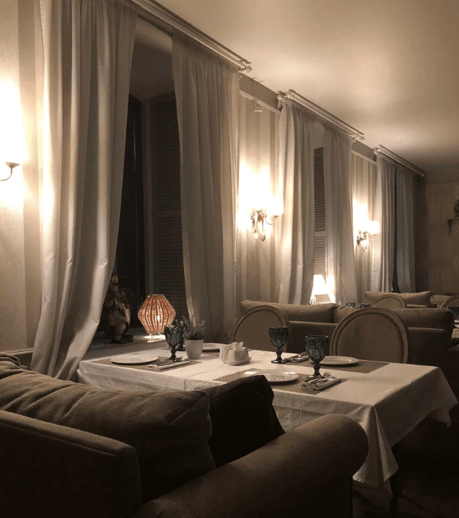 Атмосфера. Уютное пространство с атмосферой грузинского дома погружает в культуру гостеприимства. Здесь нет места суете — только мягкий свет, душевная обстановка и открытая кухня, где повара готовят с особым отношением к каждому блюду.