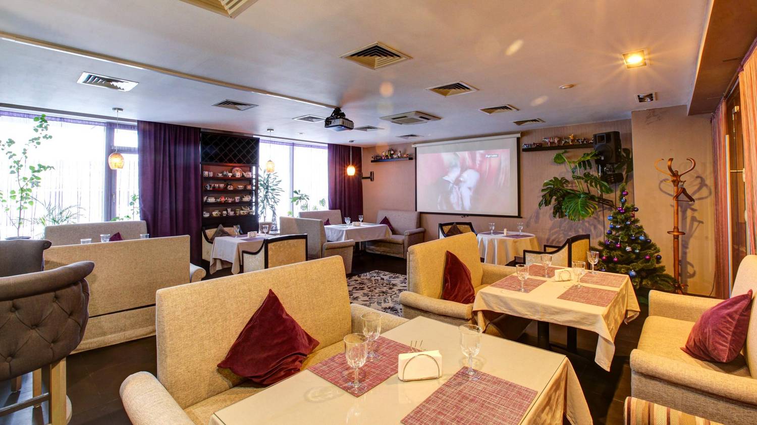 Еда и напитки. В меню собраны самые популярные блюда европейской кухни: есть паста феттуччини с телячьей вырезкой и грибами, пицца «Четыре сыра», греческий салат и суп из белых грибов с индейкой. На десерт подают орешки со сгущенным молоком и грушевый штрудель. Кофейная карта включает классические и авторские напитки.