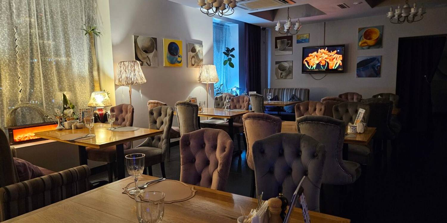 Атмосфера. Пространство с мягким освещением, деревянными столами и текстильным декором напоминает гостиную дружелюбного дома. Здесь царит спокойная обстановка, где можно уединиться за чашкой кофе или собраться компанией в банкетной зоне.