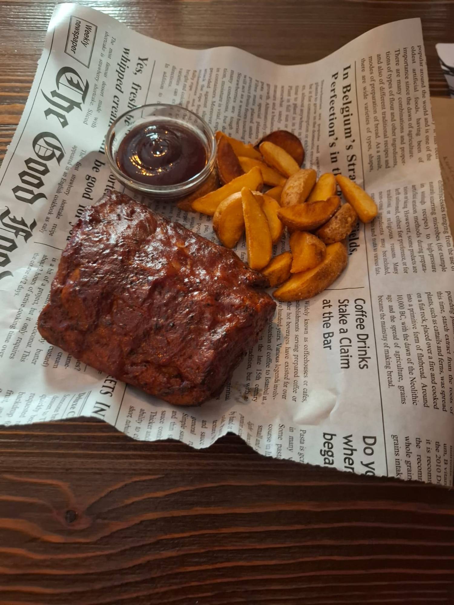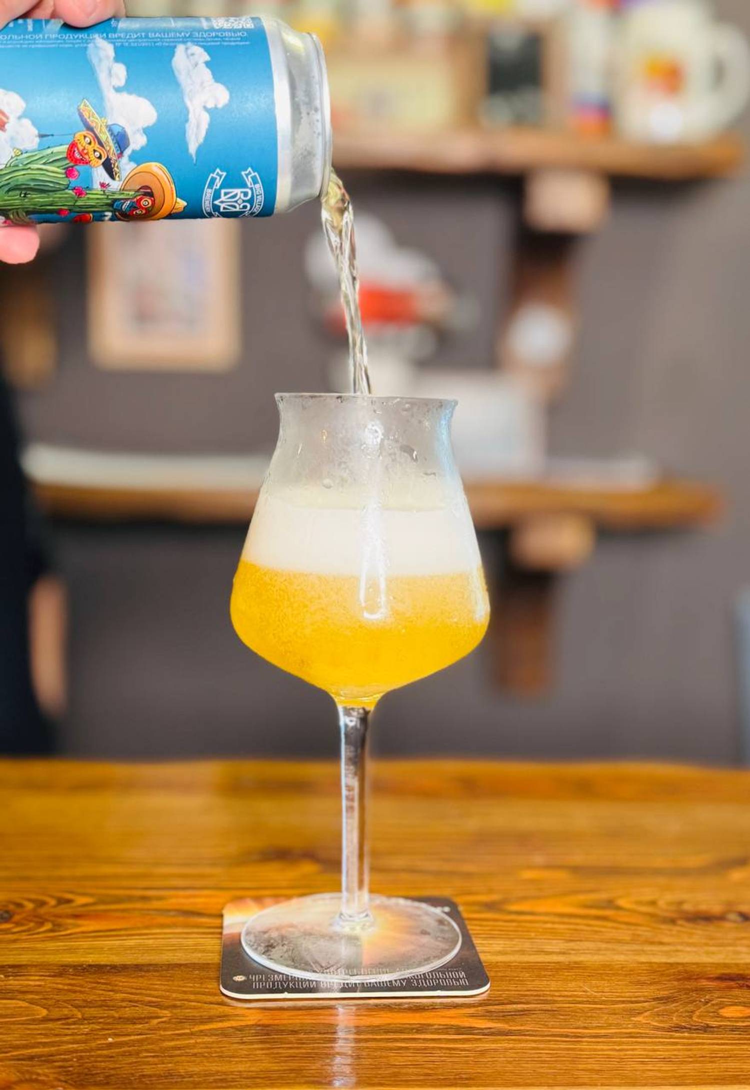 Еда и напитки. В меню — разнообразие крафтового пива. К напиткам берут закуски: соломку семги, воблу паутинку с перцем, копченые креветки, жареные пельмешки. также есть и горячие блюда, например, цыпленок табака и шаверма с сыром, вафли с ветчиной и том ям с креветками, а на десерт приносят вафли с мороженым.