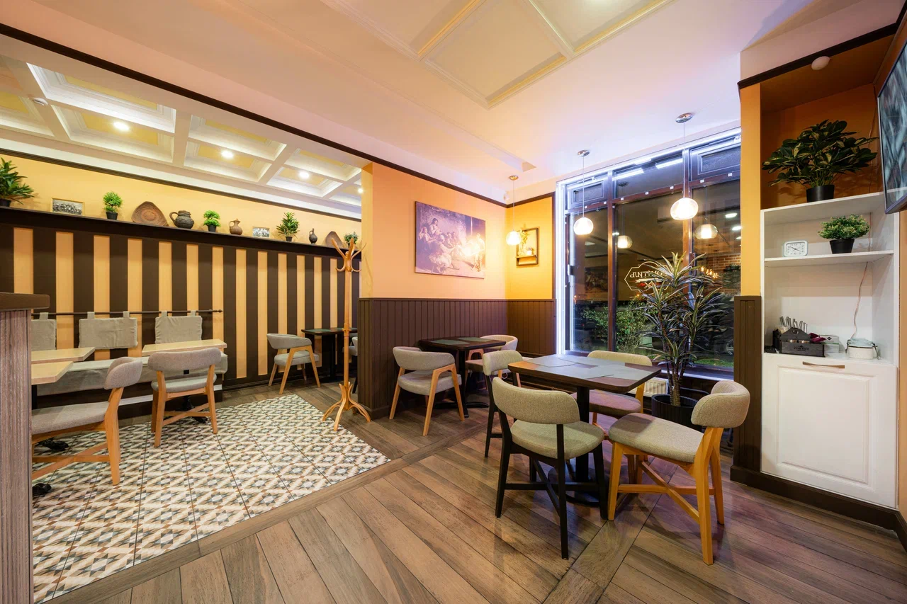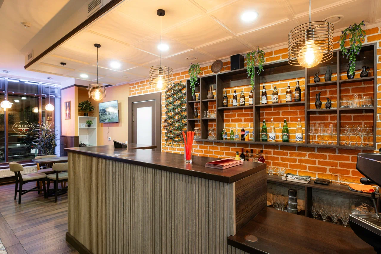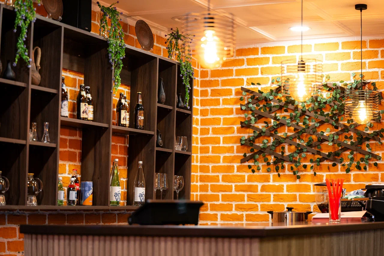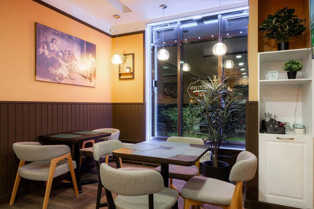 Атмосфера. Интерьер выдержан в стиле деревенской трапезной с элементами современного комфорта. Здесь деревянные полки с глиняной посудой и бутылками соседствуют с расписной плиткой, а удобные мягкие стулья располагают к долгим посиделкам. Дополняет ощущение погружения в балканскую культуру ненавязчивая национальная музыка.