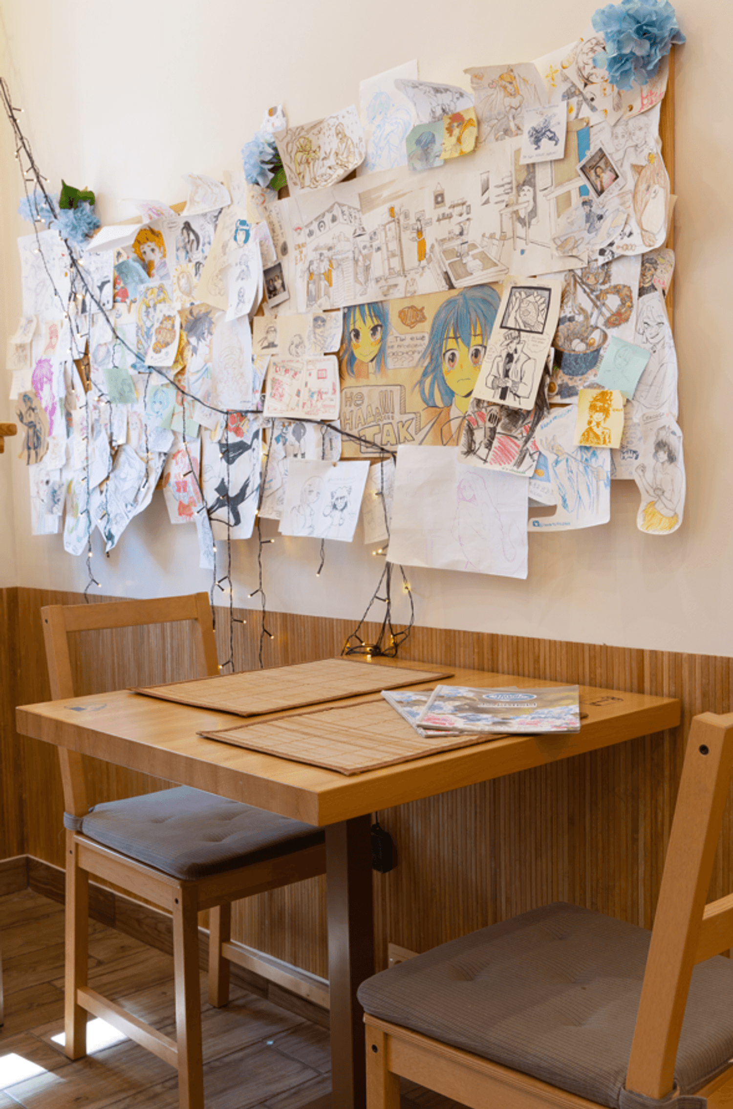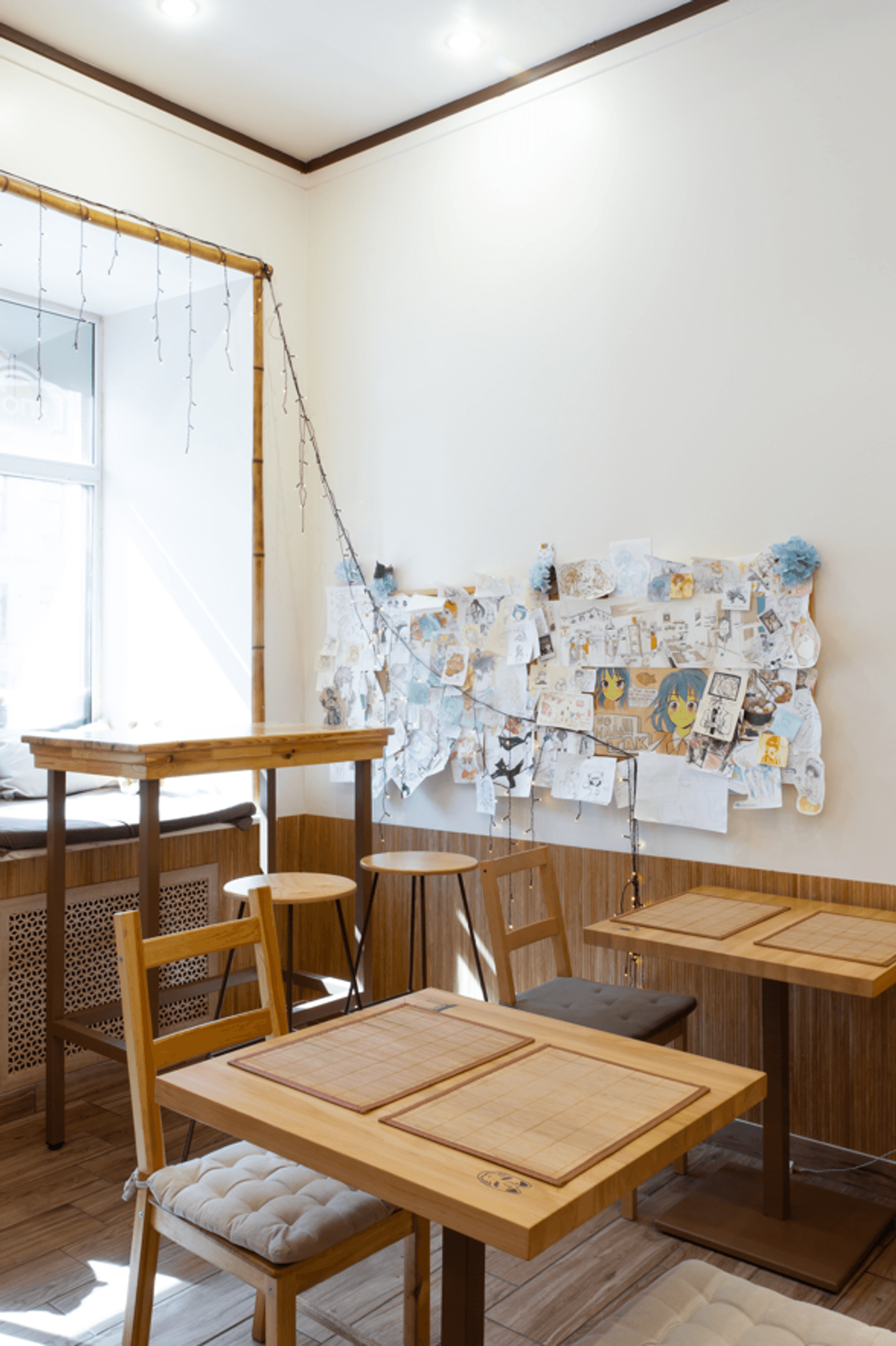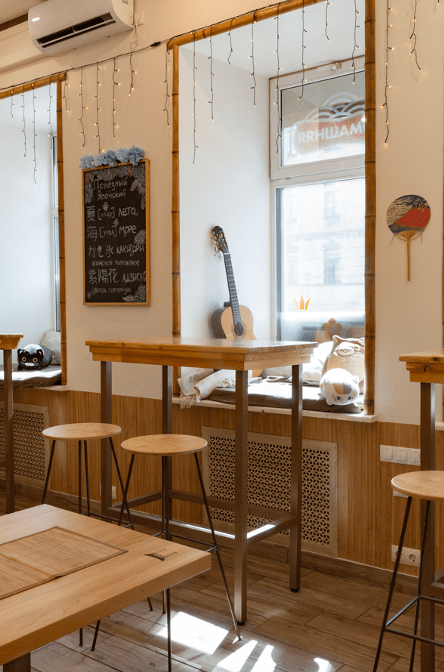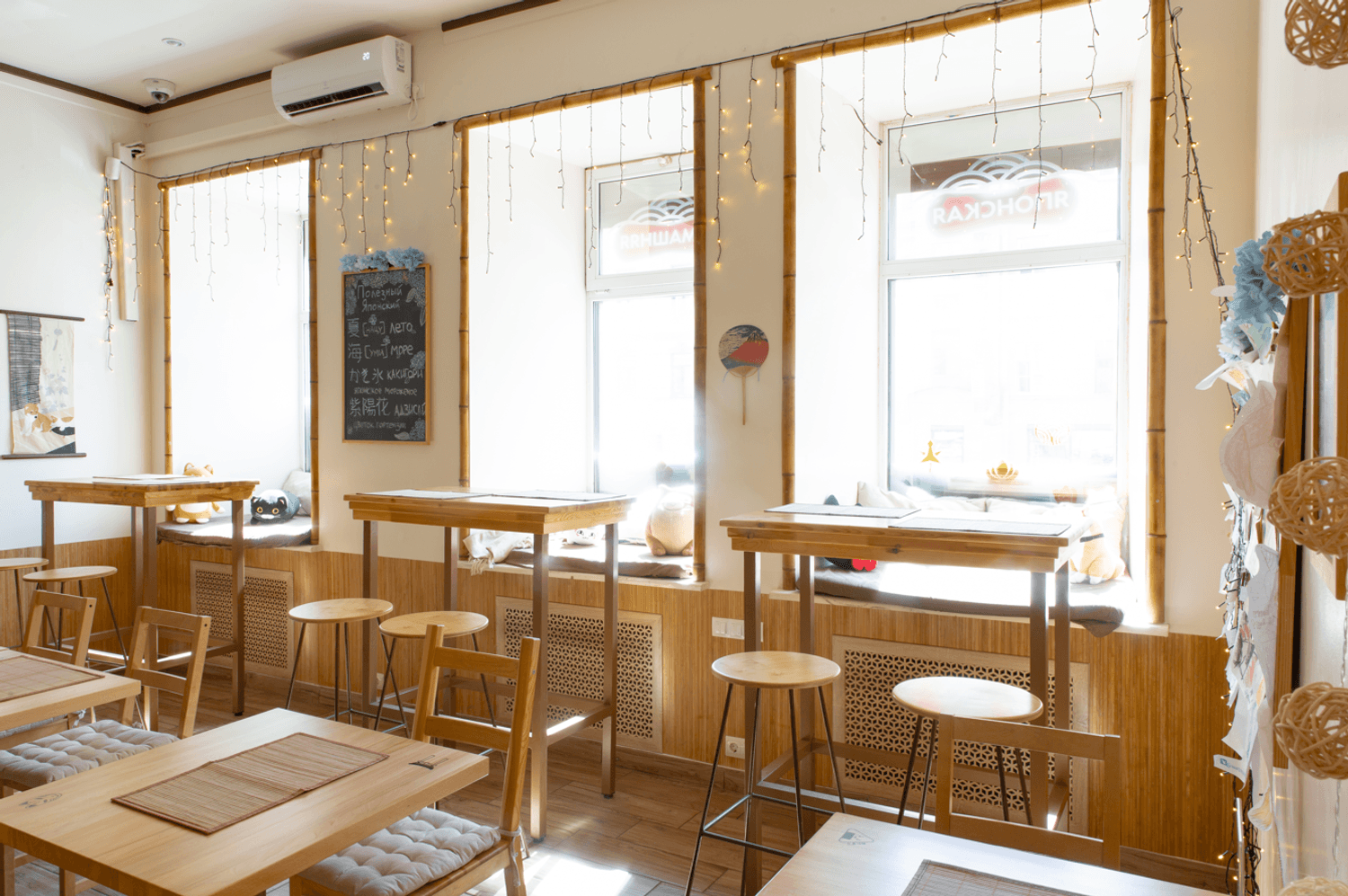 Атмосфера. Интерьер воссоздает дух современных токийских кафе: нейтральные цвета интерьера, деревянная отделка, но при этом яркая графика на стенах и динамичная рассадка. Небольшое пространство с открытой кухней, где готовят тайяки, наполнено ароматами вафель и японских специй, что создает ощущение уличного фуд-корнера в Японии.