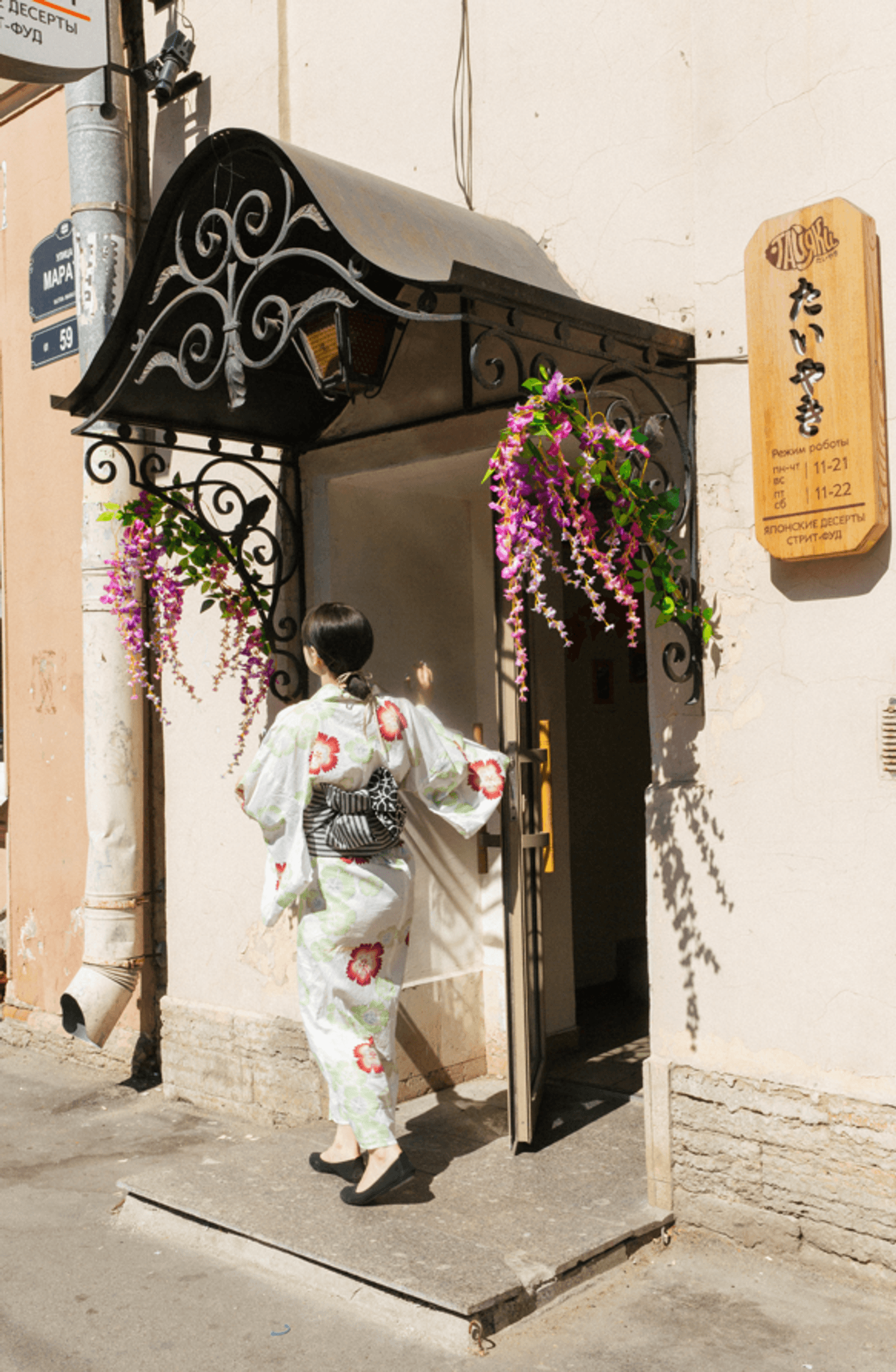 Еда и напитки. В меню — традиционные рыбки тайяки со сладкими и сытными начинками (от красной фасоли до бекона с лососем), онигири, суп удон и японское мороженое. Из напитков подают маття-латте, сакура-кофе и охлажденный чай ходзича.