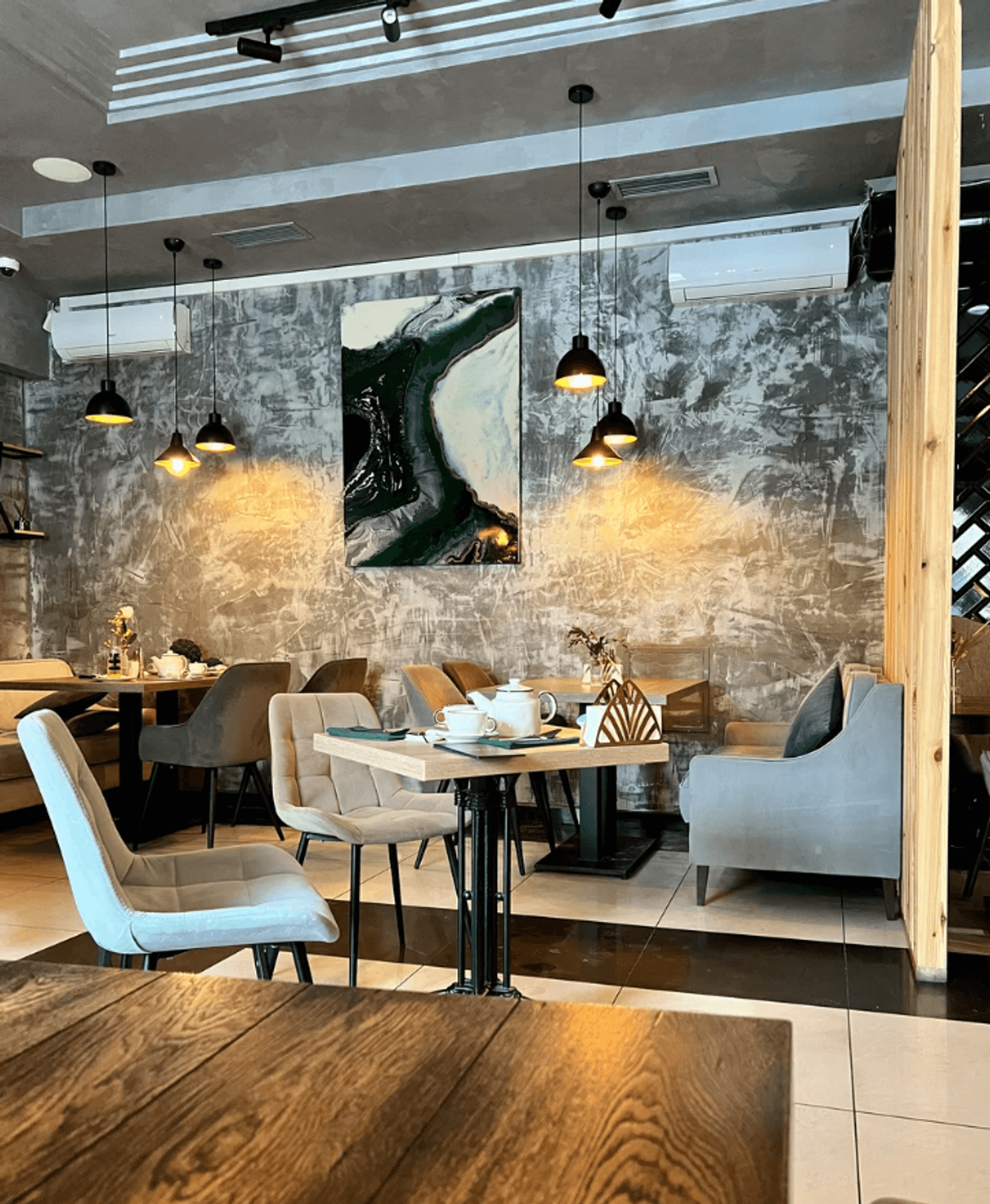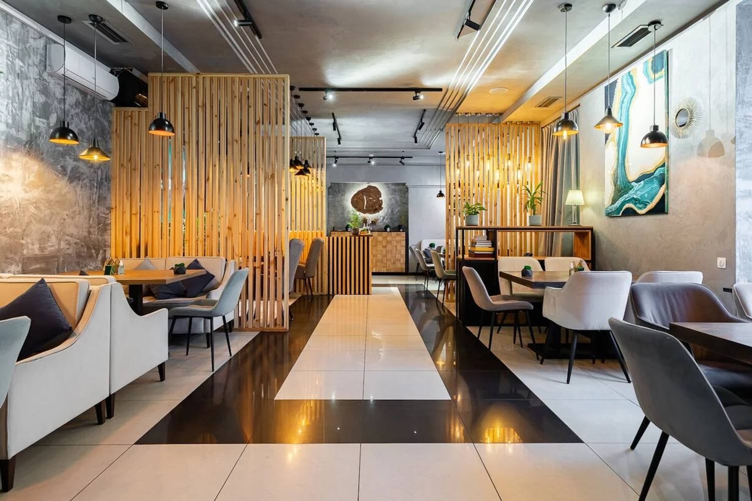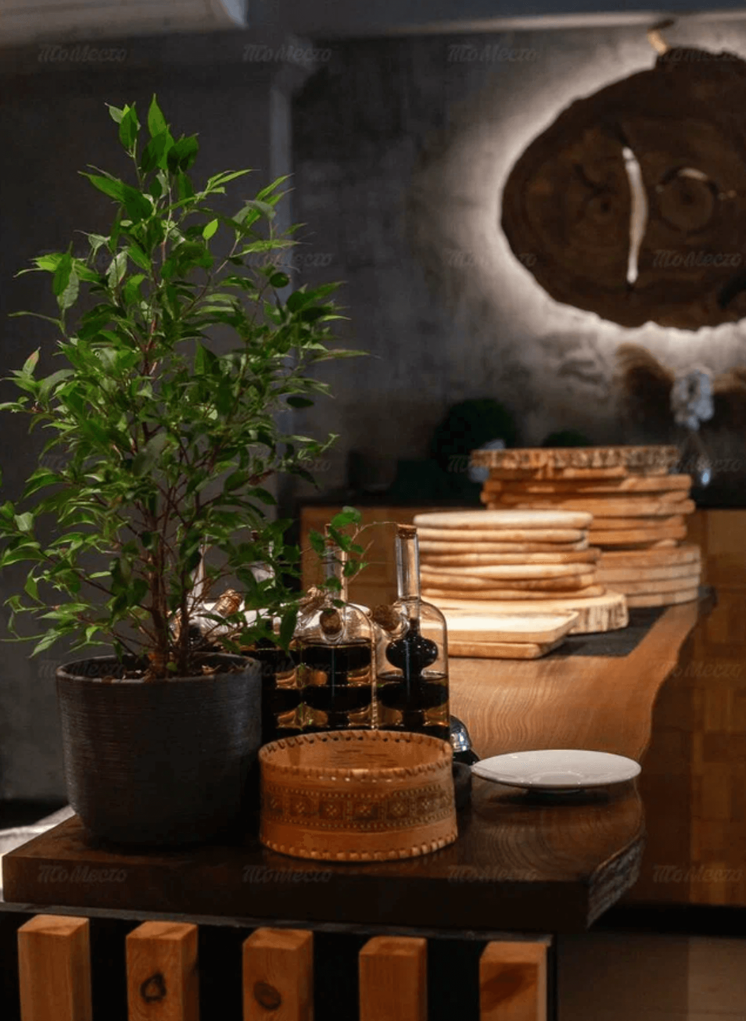 Атмосфера. Пространство сочетает современный лофт с элементами итальянской траттории: здесь высокие потолки, панорамные окна с видом на Храм Рождества на Песках и открытая кухня. Лаконичный дизайн с акцентами из натурального дерева подчеркивает концепцию единства русских ингредиентов и итальянских традиций.