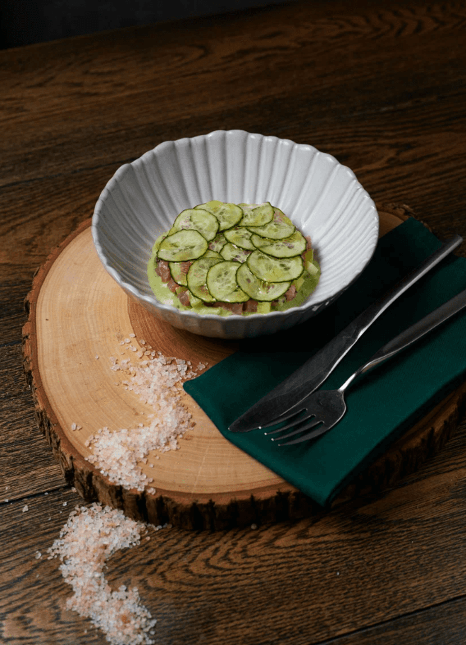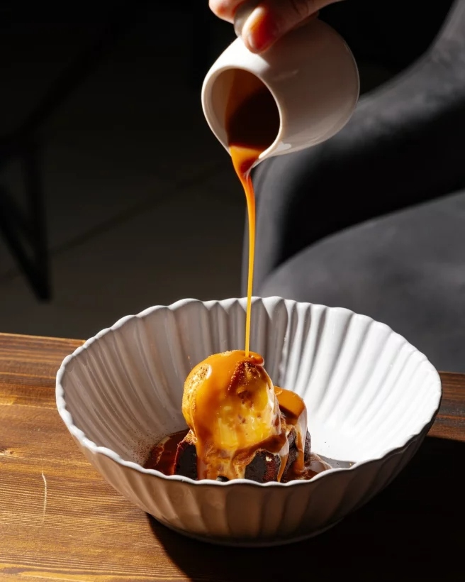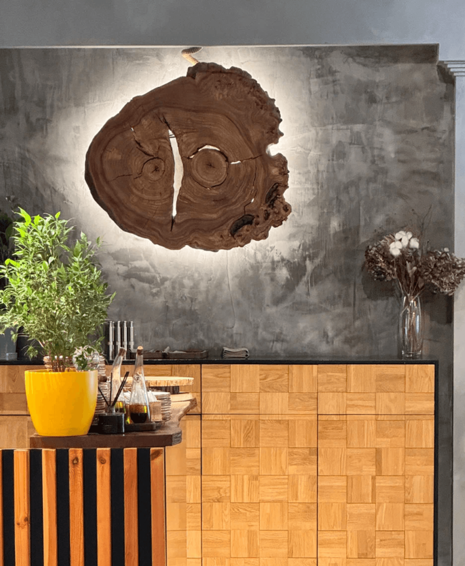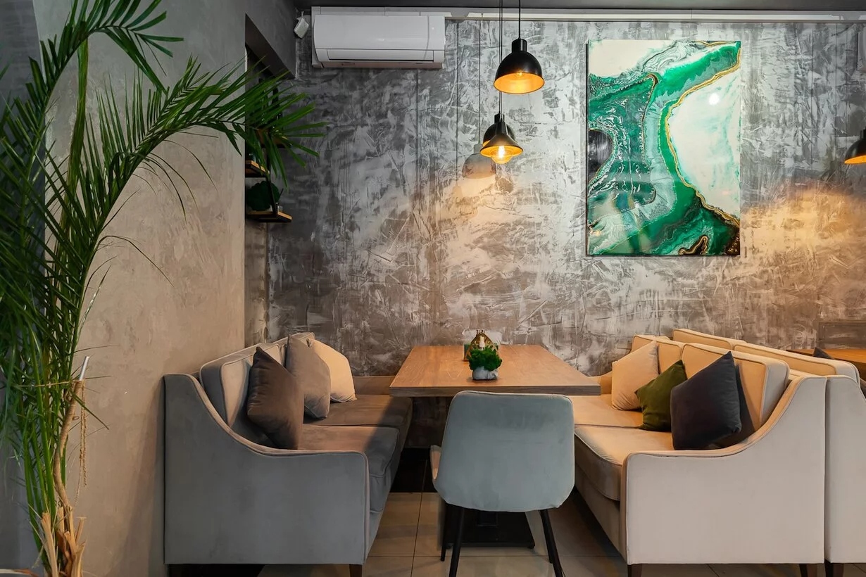 Атмосфера. Пространство сочетает современный лофт с элементами итальянской траттории: здесь высокие потолки, панорамные окна с видом на Храм Рождества на Песках и открытая кухня. Лаконичный дизайн с акцентами из натурального дерева подчеркивает концепцию единства русских ингредиентов и итальянских традиций.