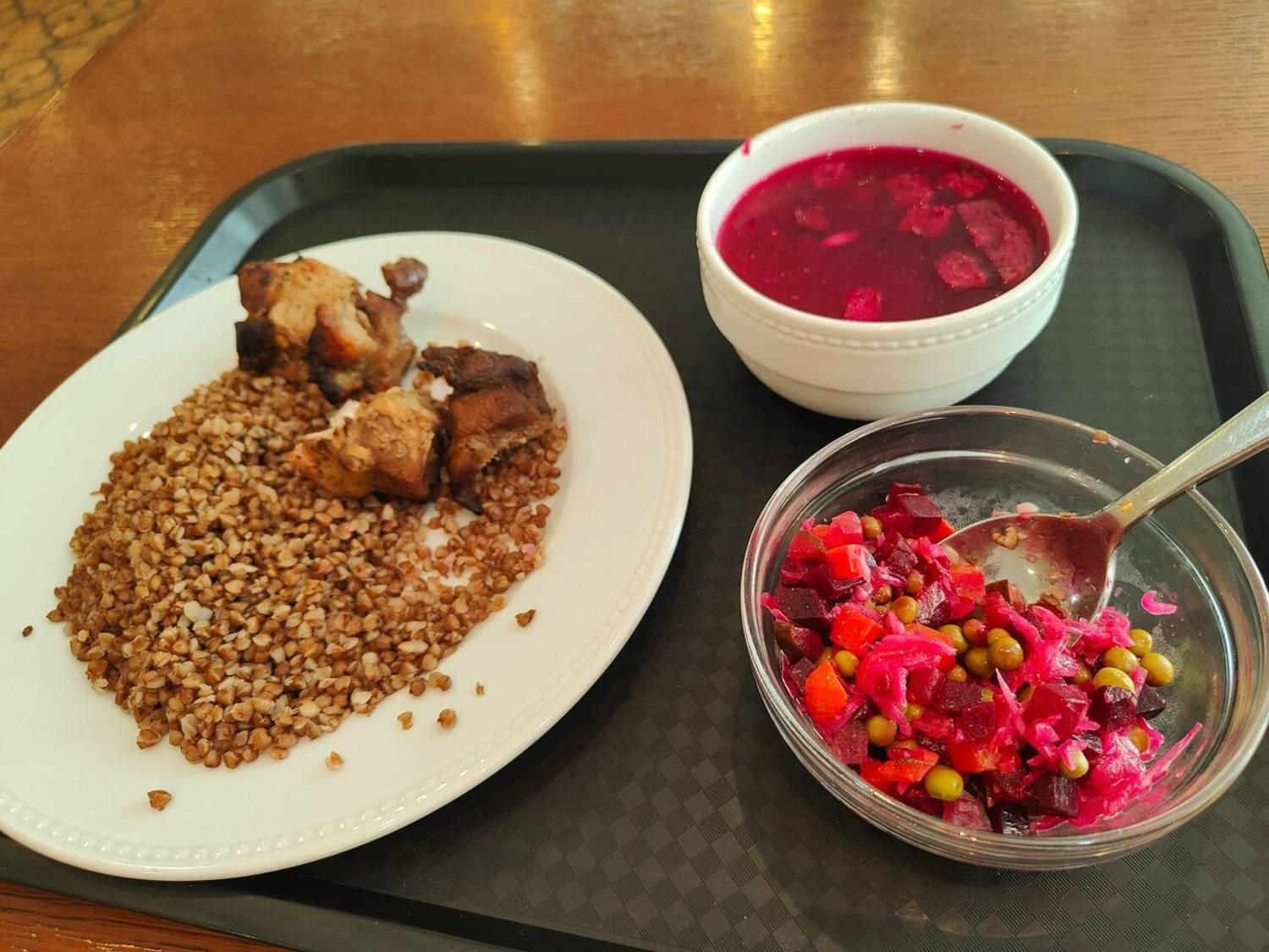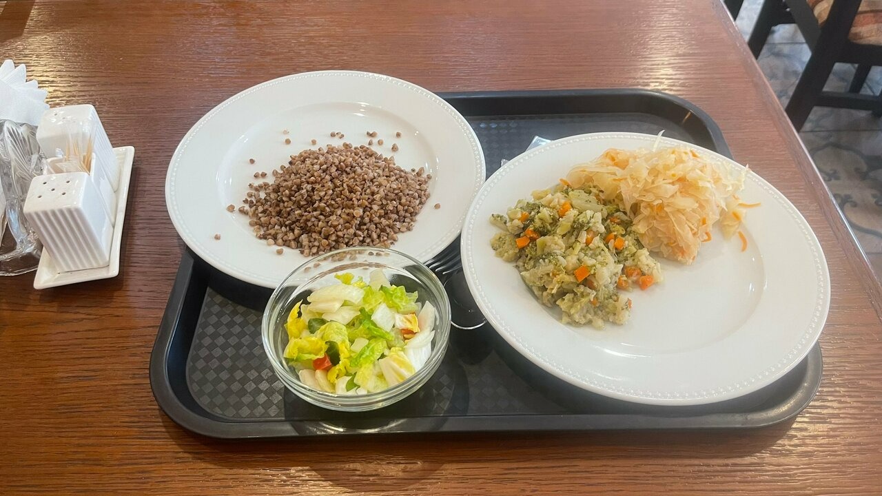 Еда и напитки. В меню ланчи, в которые входят различные позиции: борщ с курицей, плов, свинина, запеченная с овощами, треска под маринадом, ежики куриные. Также можно выбрать выпечку: пирожок с ветчиной и сыром, брусникой, капустой, картофелем, малиной и карамелью. К пирожкам заказывают классический кофе или раф, лунго.