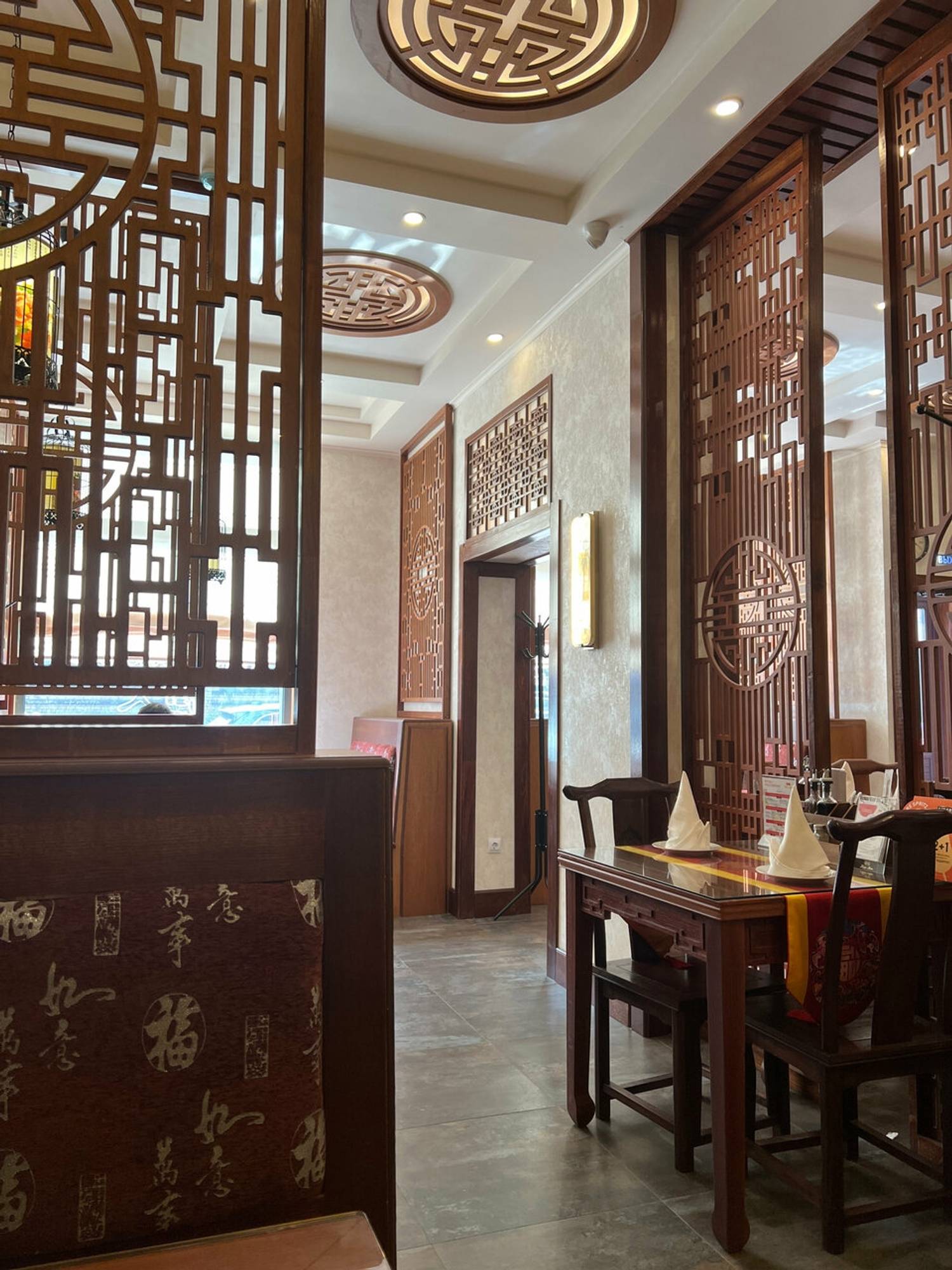 Атмосфера. Интерьер с традиционными китайскими элементами — алыми фонарями, свитками, керамическими вазами и деревянными панелями — создает аутентичную восточную атмосферу. Пространство разделено на несколько залов, каждый из которых оформлен с вниманием к деталям национального колорита, и в каждом вы сможете увидеть интересный и необычный декор.