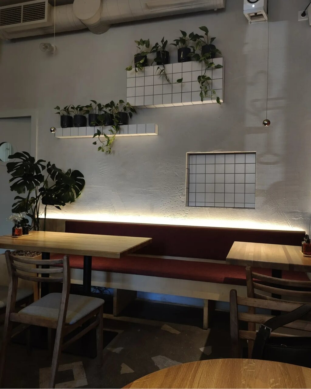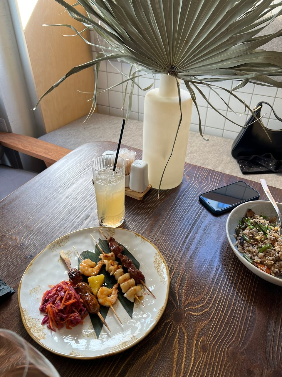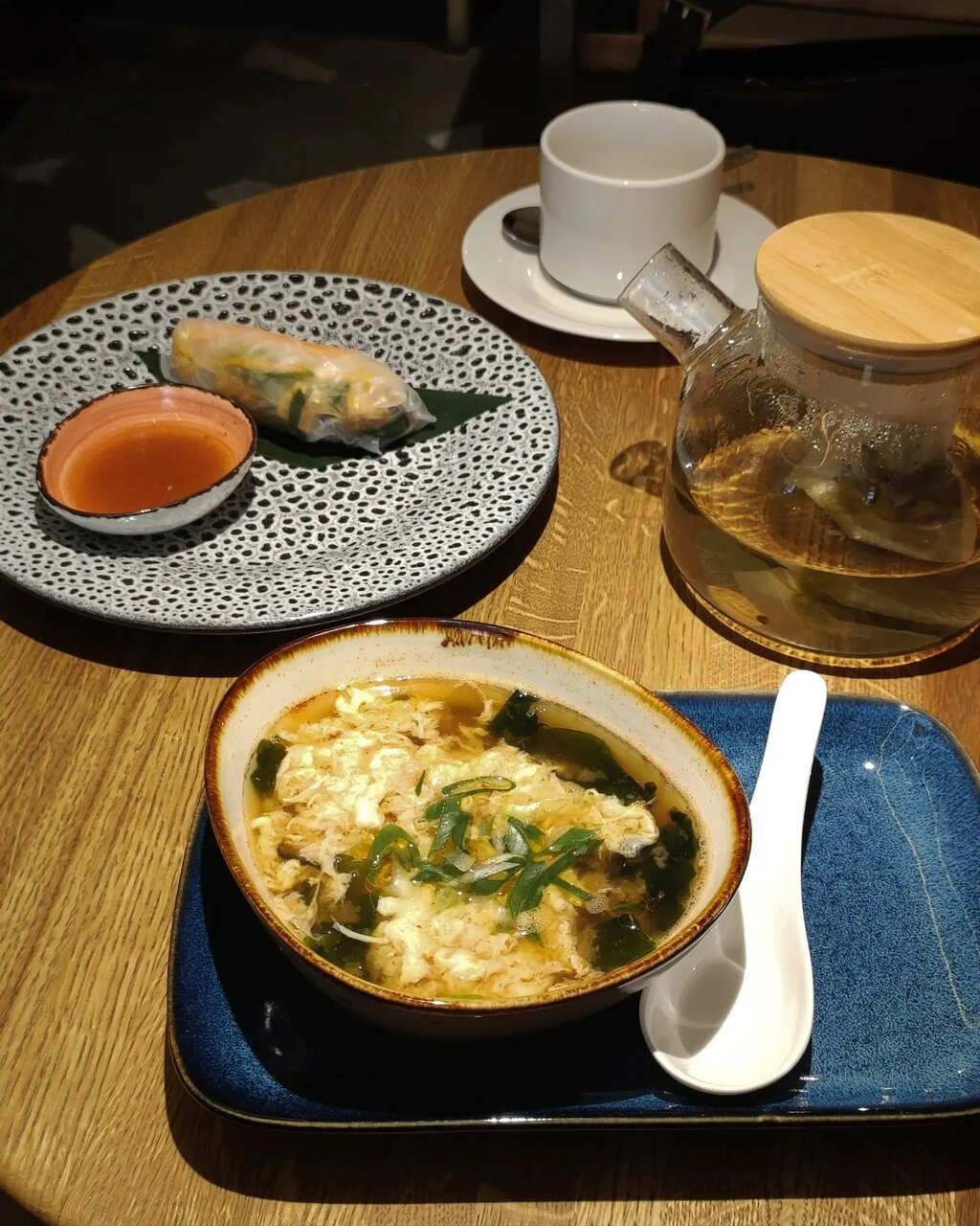 Еда и напитки. Авторские блюда от шефа Дмитрия Бобылева: фреш-роллы, якитори и блюда, приготовленные на японском робата-гриле. Можно попробовать маринованную тыкву ланчжоу, вафу стейк и фунчозу с индейкой в кокосовом карри. В баре под руководством Влада Жолудева — хайбол-коктейли и минималистичная алкогольная карта, дополняющая азиатские вкусы.