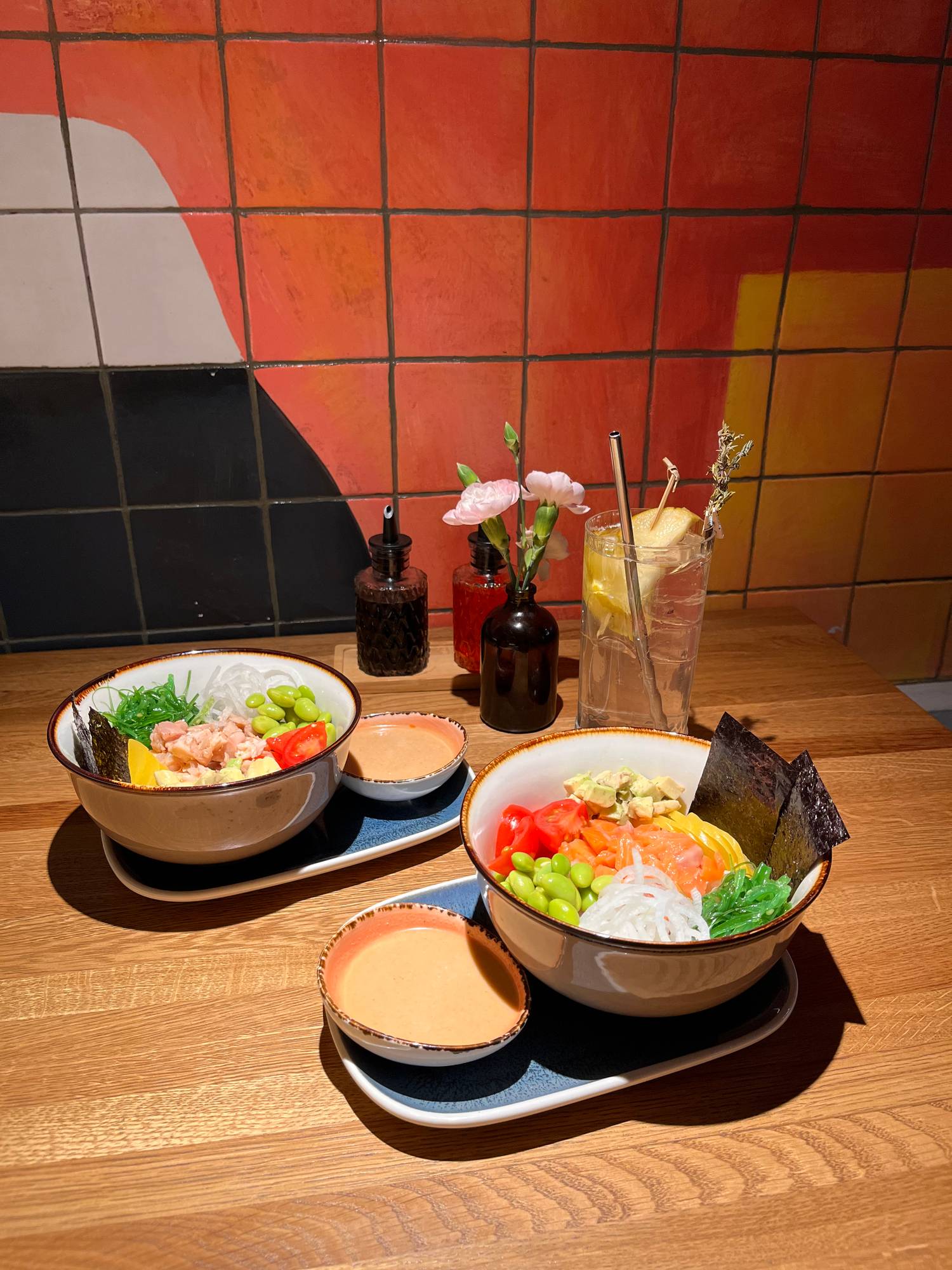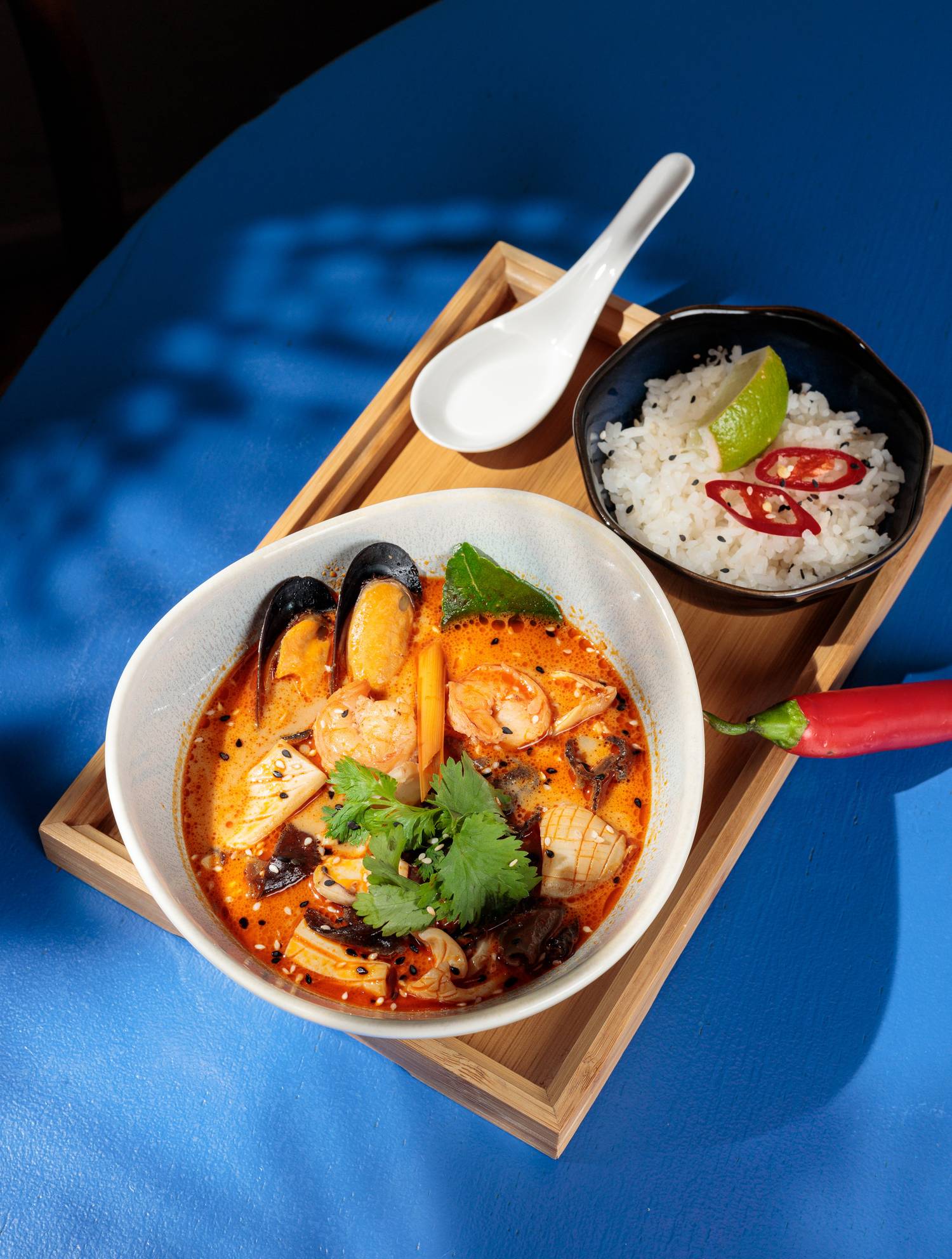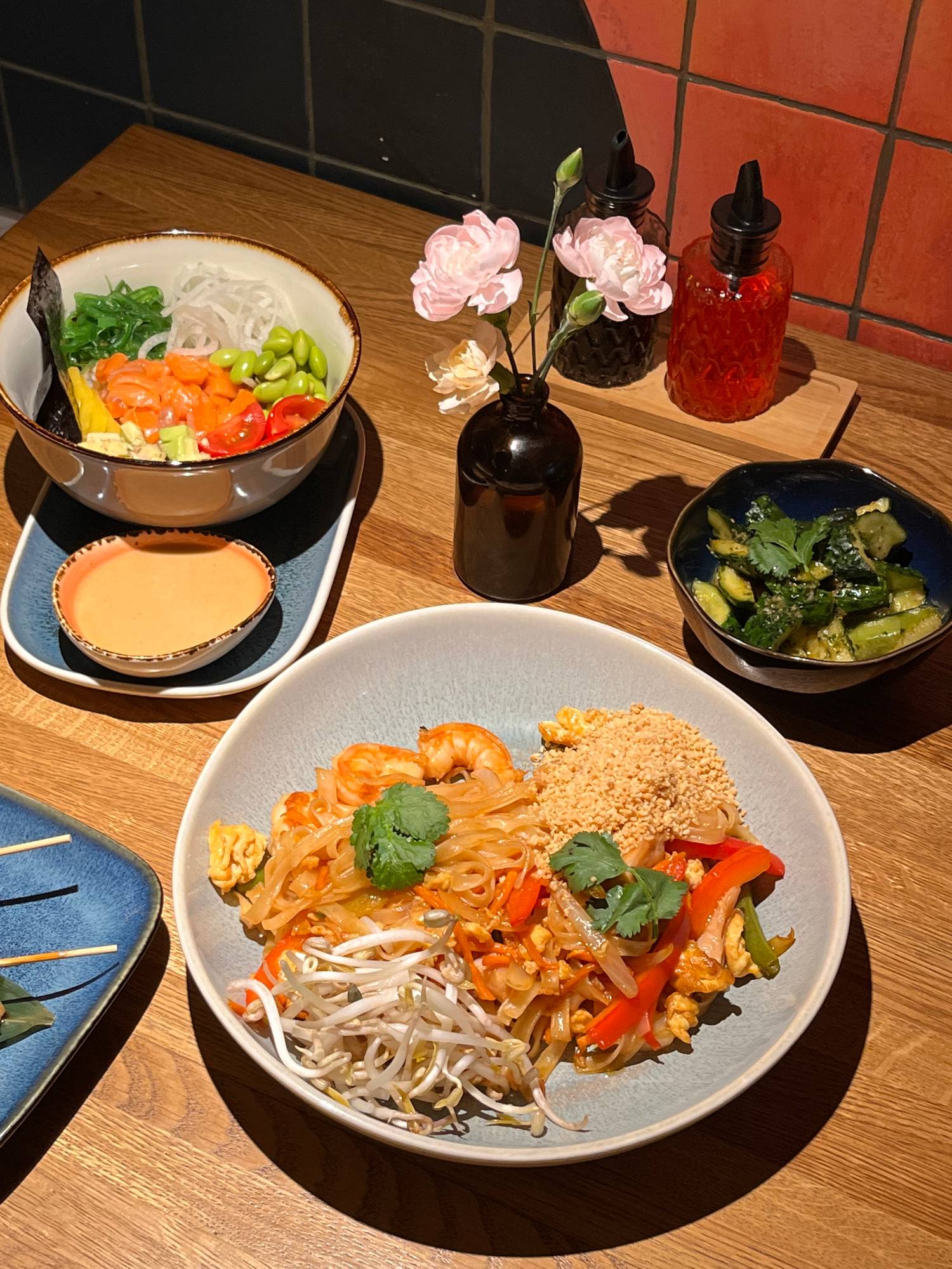 Еда и напитки. Авторские блюда от шефа Дмитрия Бобылева: фреш-роллы, якитори и блюда, приготовленные на японском робата-гриле. Можно попробовать маринованную тыкву ланчжоу, вафу стейк и фунчозу с индейкой в кокосовом карри. В баре под руководством Влада Жолудева — хайбол-коктейли и минималистичная алкогольная карта, дополняющая азиатские вкусы.