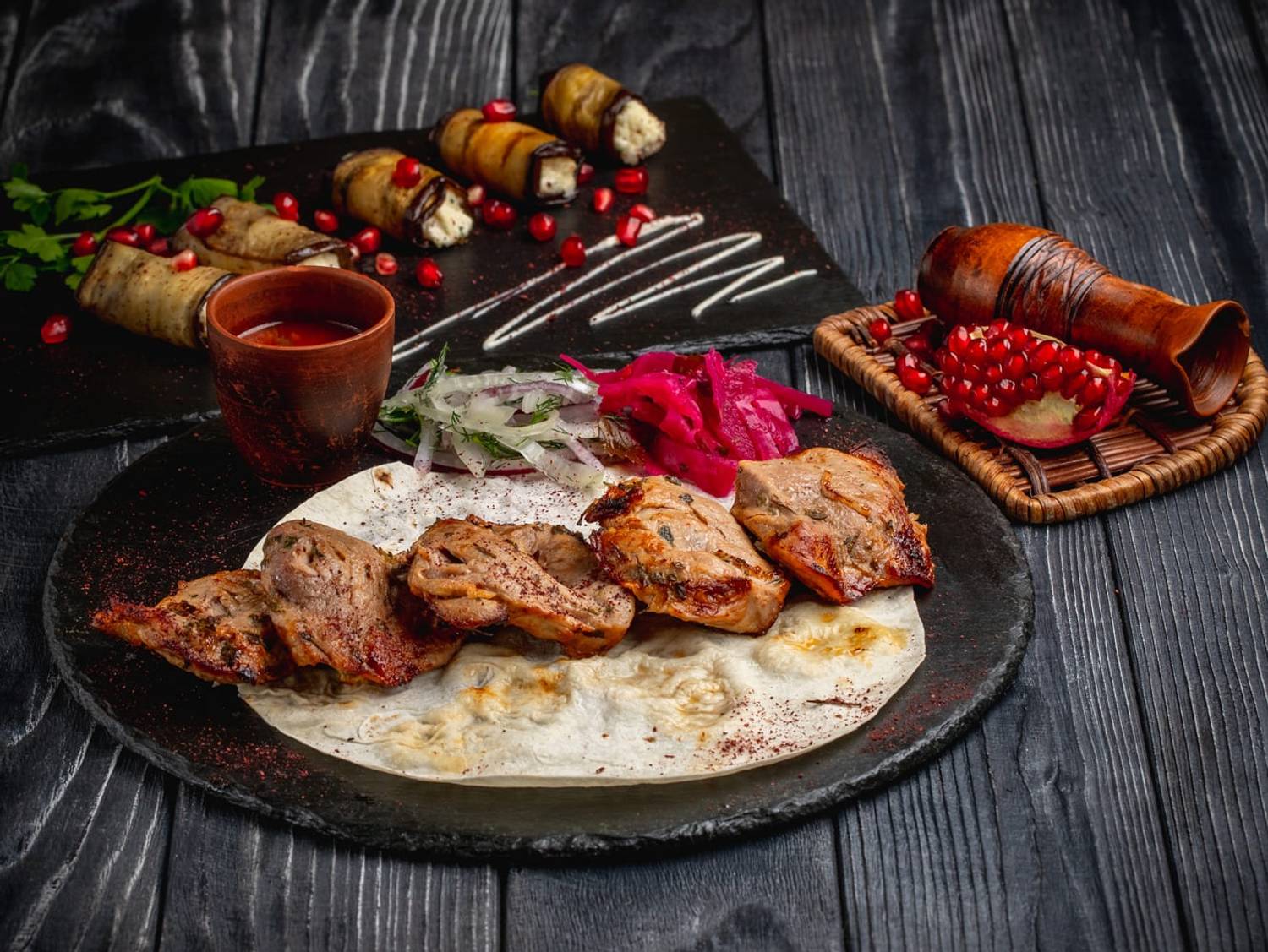 Еда и напитки. В меню — европейские блюда и грузинская кухня: кутабы с мясом, шашлык из бараньих ребрышек, паста с лососем и креветками, бефстроганов со свининой. На десерт берут шоколадно-банановый торт и чизкейк с шоколадом и орехом пекан.