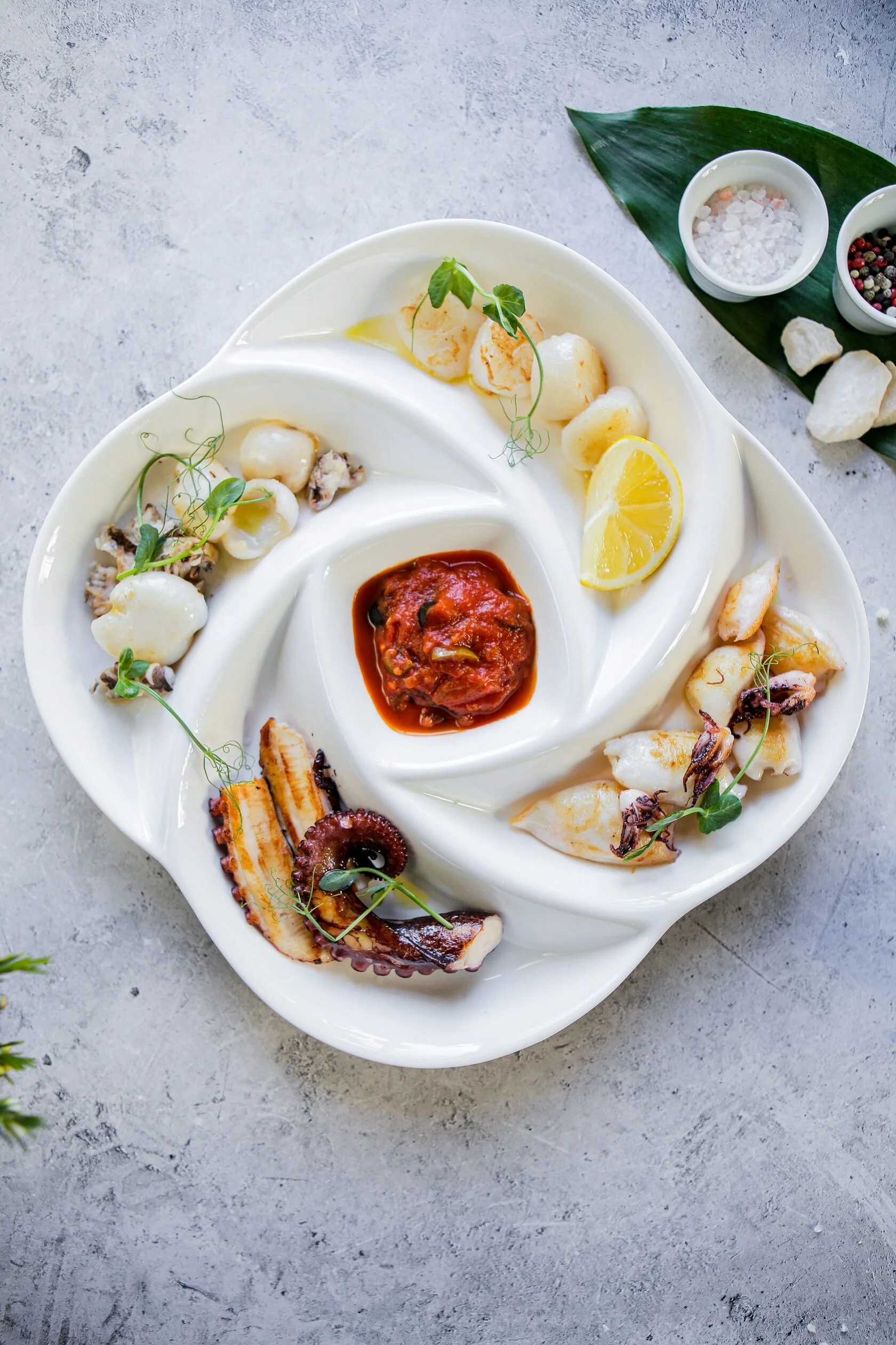 Еда и напитки. В меню — более 60 позиций из морепродуктов: устрицы, морские ежи, дорадо и фирменное плато «Форте Маре». Шеф готовит карпаччо из гребешка, паэлью на компанию, соте из морепродуктов и мясные стейки. Винная карта включает позиции из Италии, Франции и Сербии, а среди коктейлей — классические негрони и апероль шпритц.