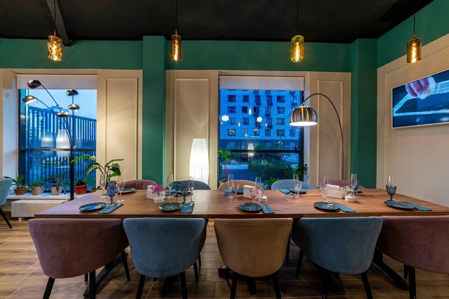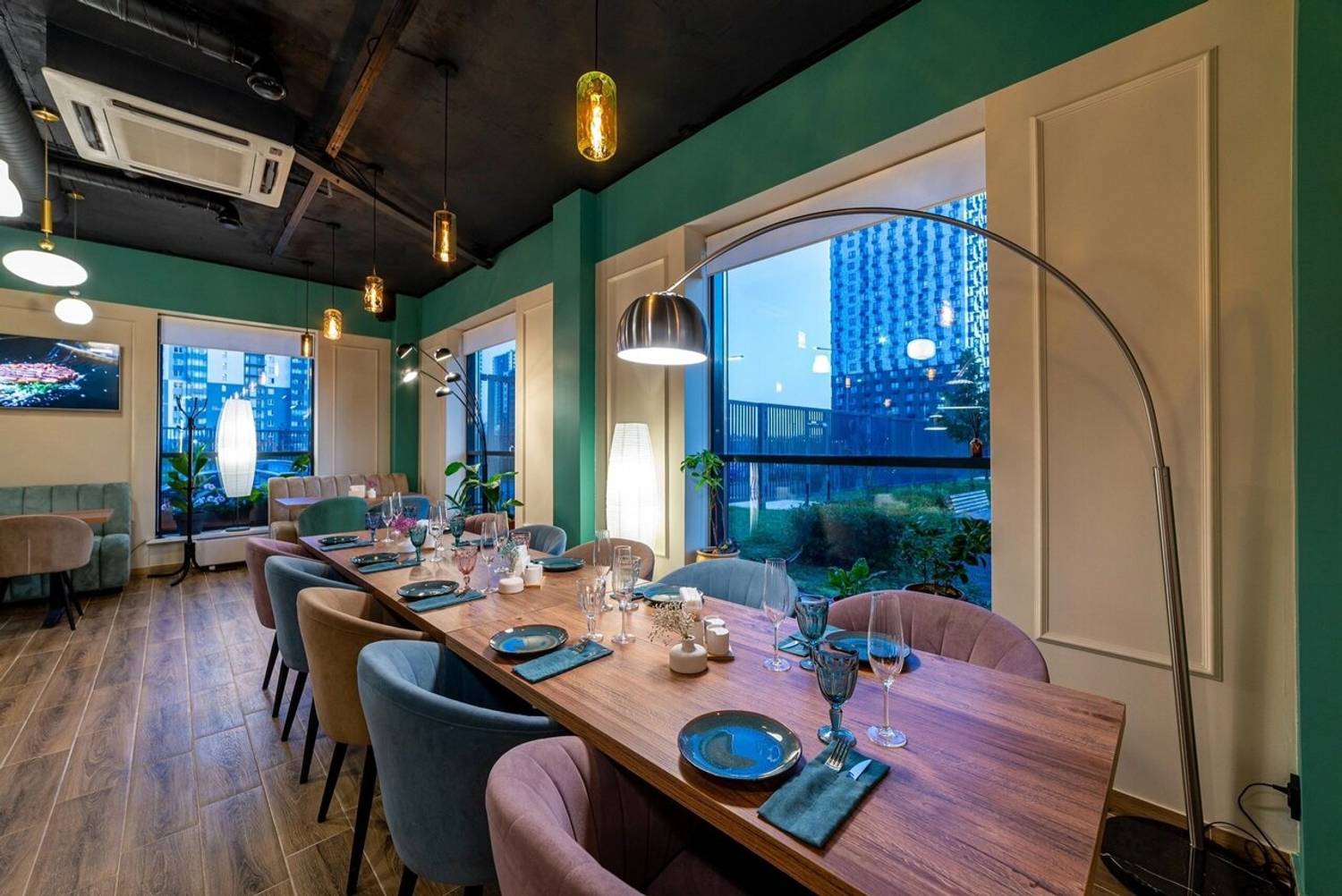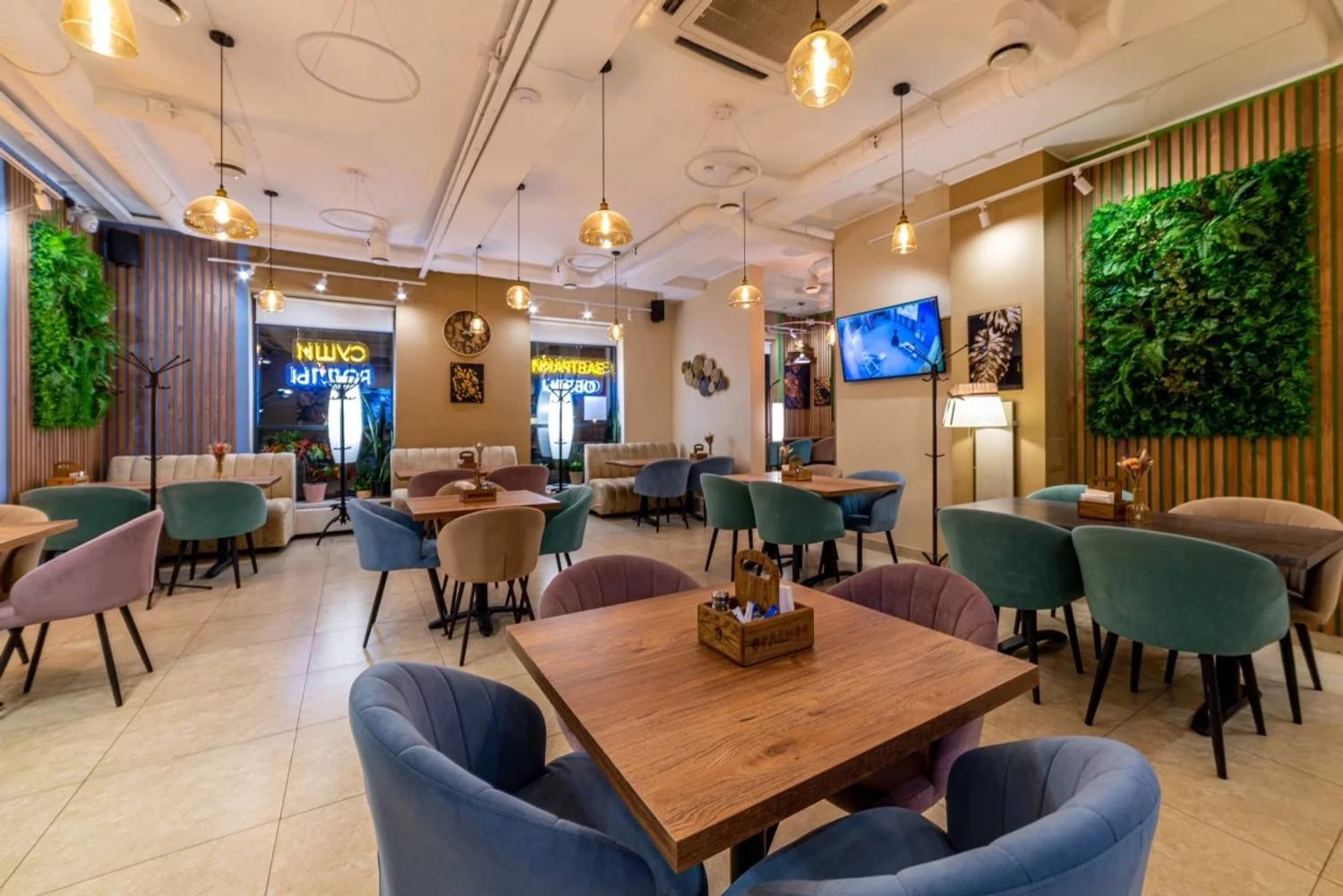 Атмосфера. Пространство разделено на две основные зоны: яркую игровую с двухуровневым лабиринтом, батутами, скалодромом и бассейном с шарами, и спокойную обеденную часть. Нейтральная цветовая гамма в розово-бирюзово-серых тонах и продуманная планировка создают баланс между активным отдыхом и возможностью расслабиться. Здесь часто проводят праздники и детские дни рождения: есть возможность вызвать аниматора, устроить мини-диско или просто предоставить детям полную свободу в игровой зоне.