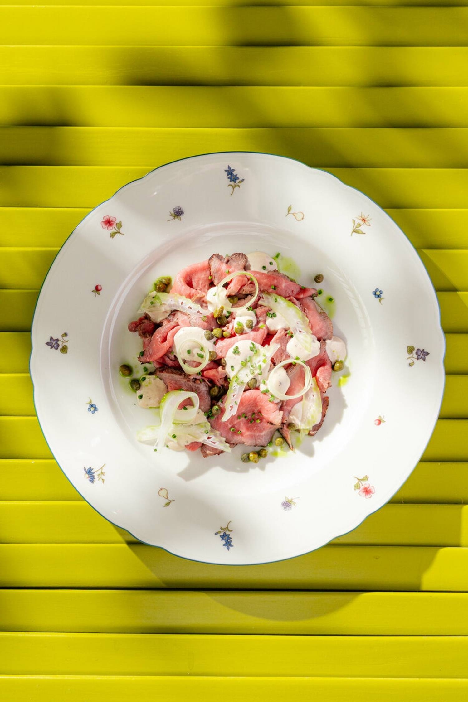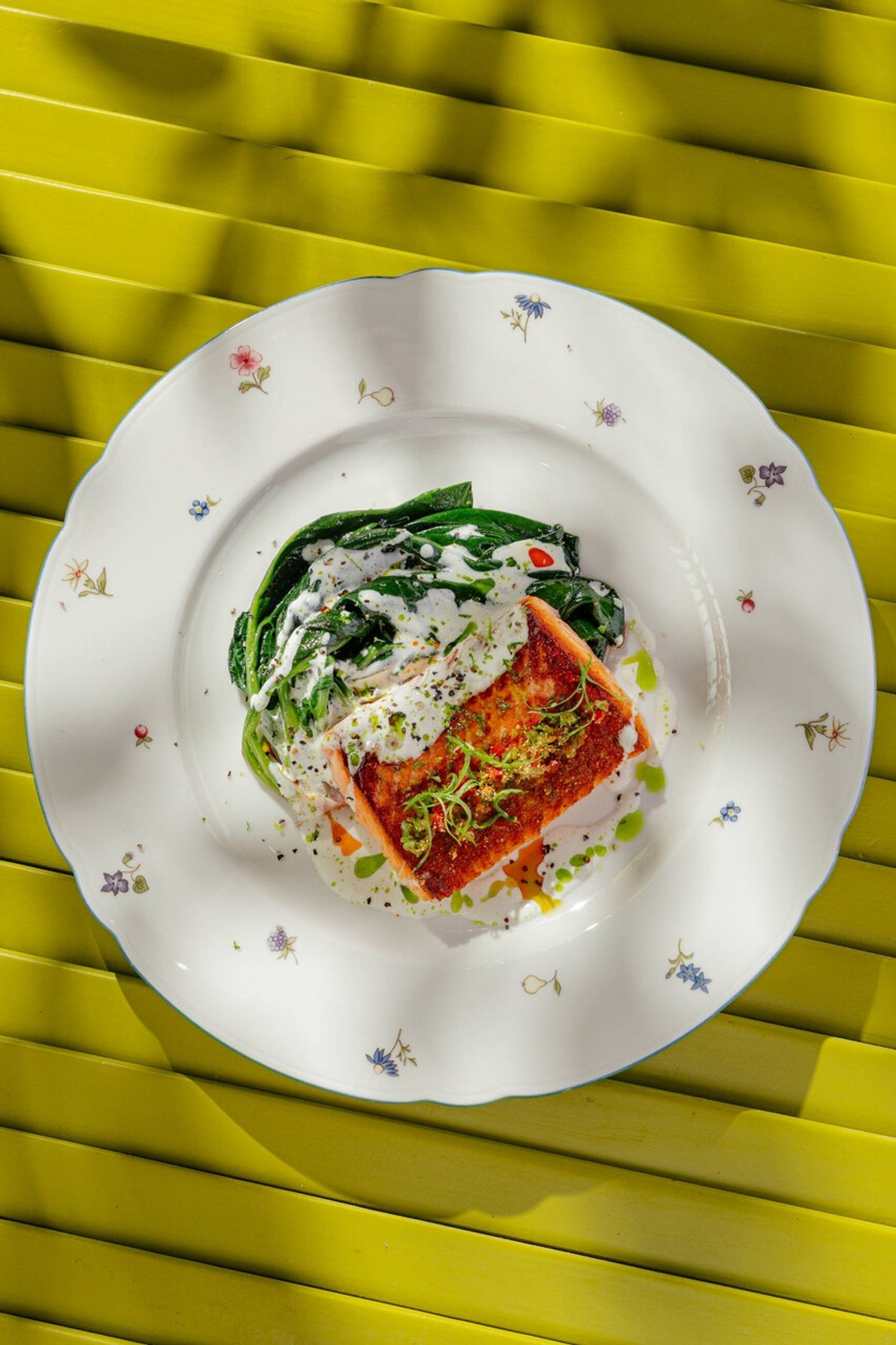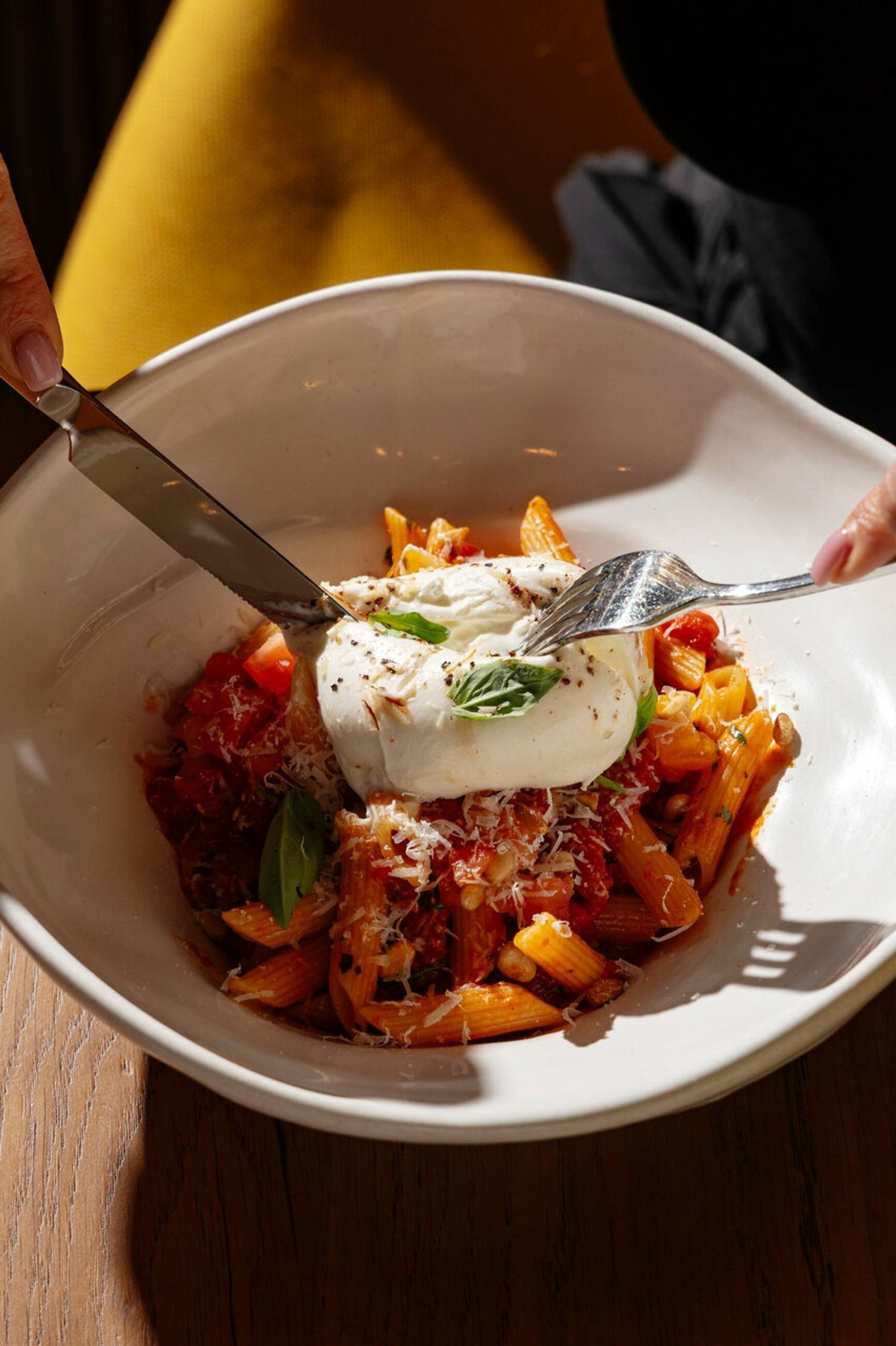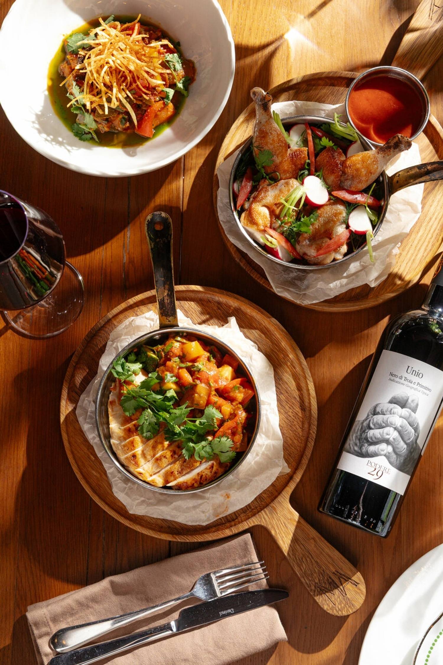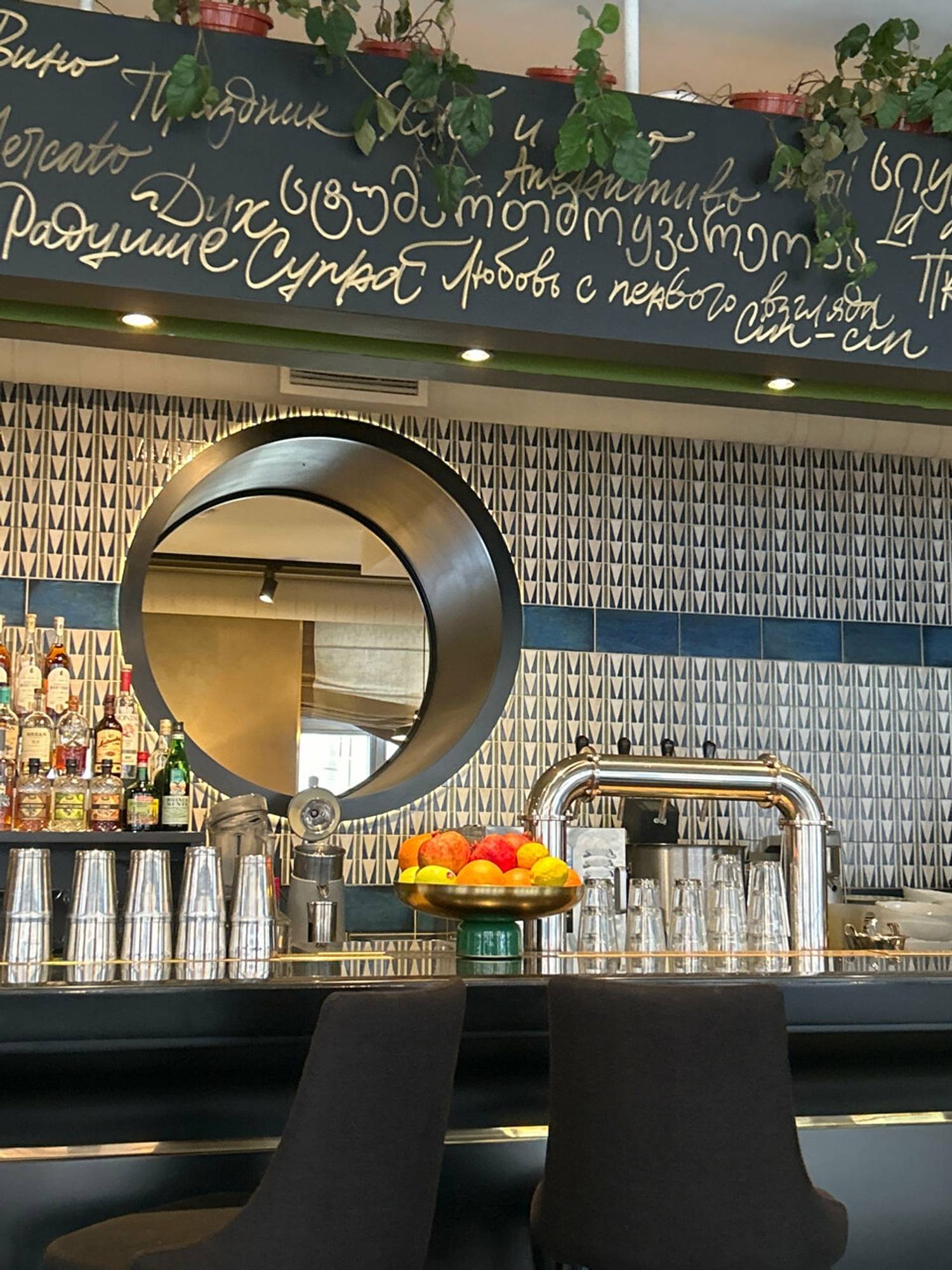 Еда и напитки. Все меню выстроено на симбиозе грузинской и итальянской кухни. Здесь можно попробовать томленую голень ягненка с ташмиджаби, хинкали ручной лепки, пиццу из дровяной печи и пасту с морепродуктами. На завтрак подают сырники с лимонным ганашем, шакшуку и грузинские специалитеты. Винная карта сочетает кахетинские и итальянские сорта, а коктейльная линейка обновляется каждый сезон.