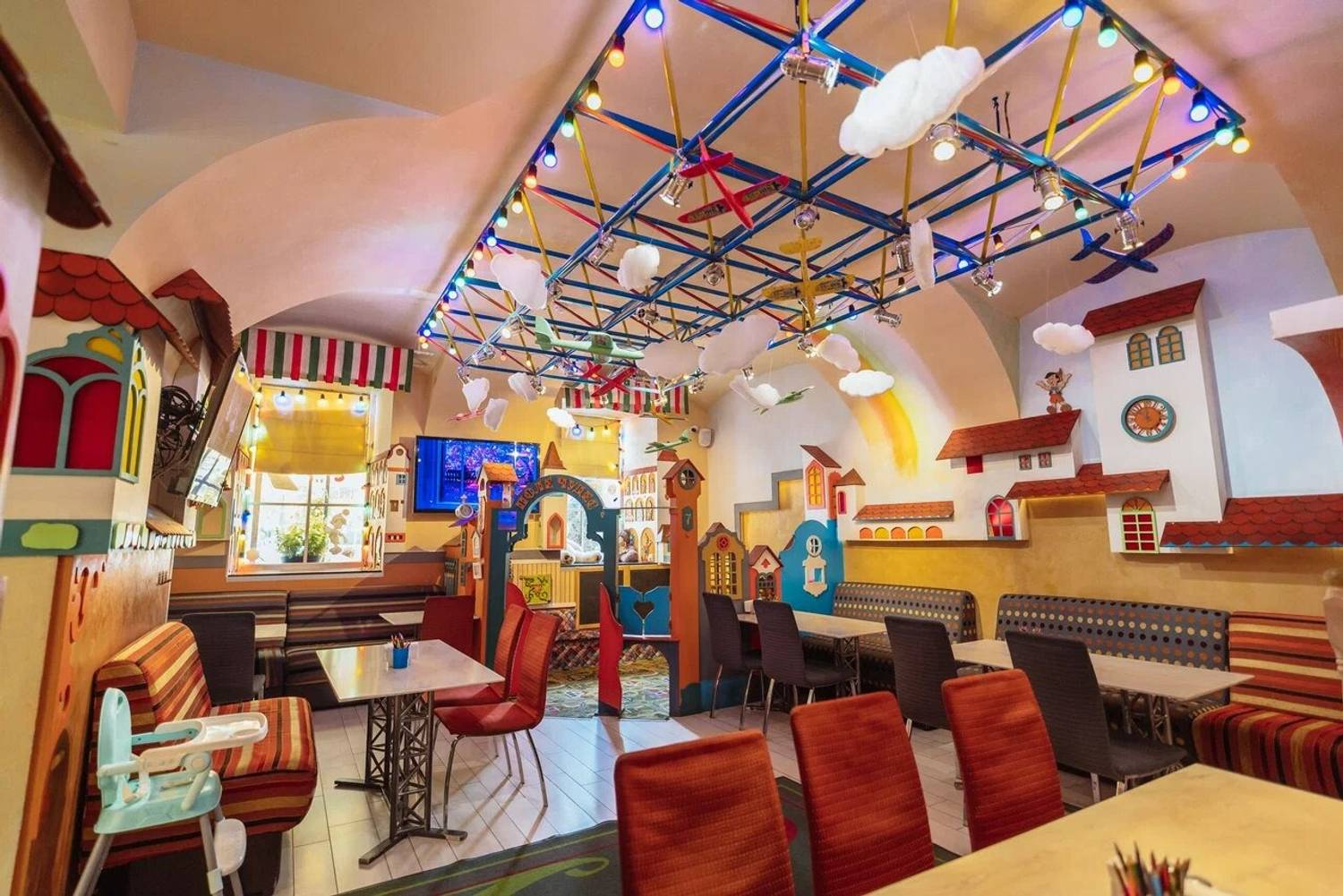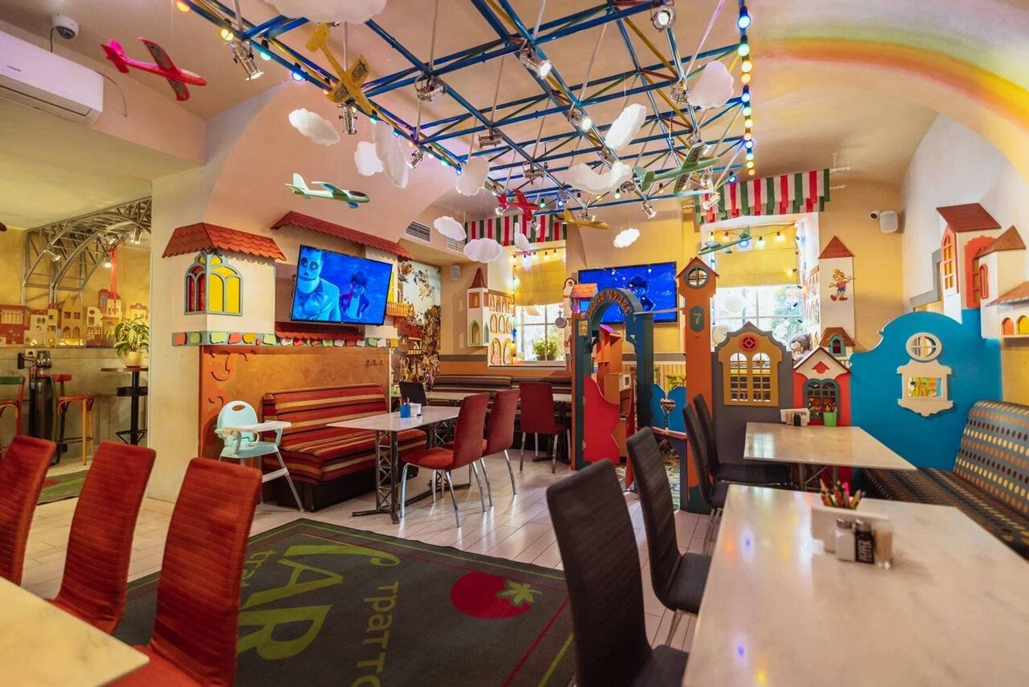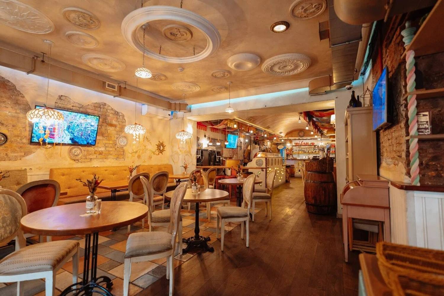 В нашем ресторане атмосфера Италии начинается с самой кухни: в зале стоит подлинная помпейская печь из Неаполя, а шоу-подача пасты происходит прямо внутри головы элитного пармезана, что не только удивляет гостей, но и дарит им истинный вкус Италии. Наш интерьер переносит гостей в древнюю Италию: расписанные стены, арочные кирпичные потолки, детали из натурального дерева и керамики, винные бочки и светильники создают атмосферу уютной траттории, где каждый элемент напоминает о классических итальянских вкусах и традициях, а ощущение тепла и аутентичности дополняется живой зеленью и мягкой мебелью.