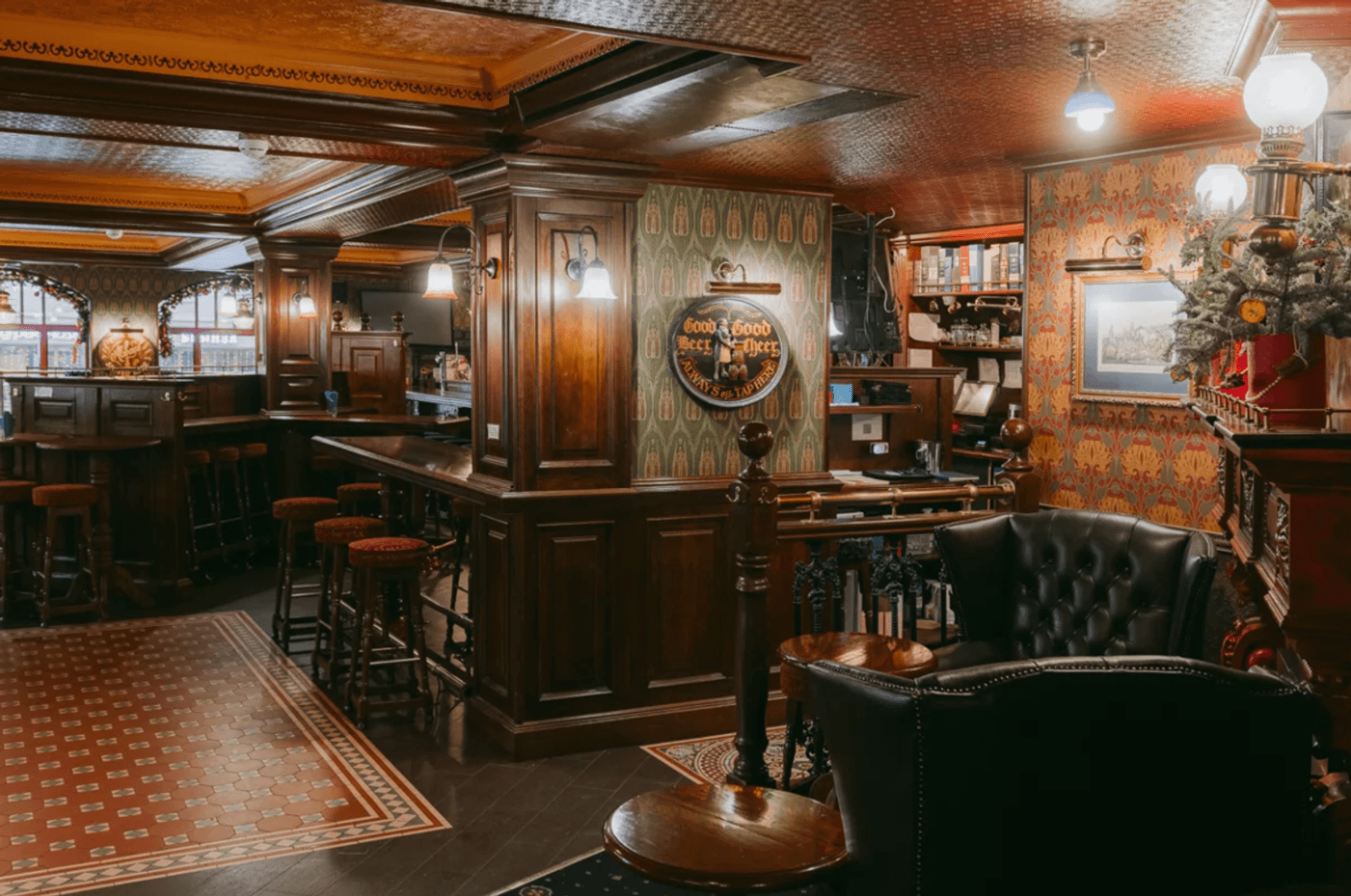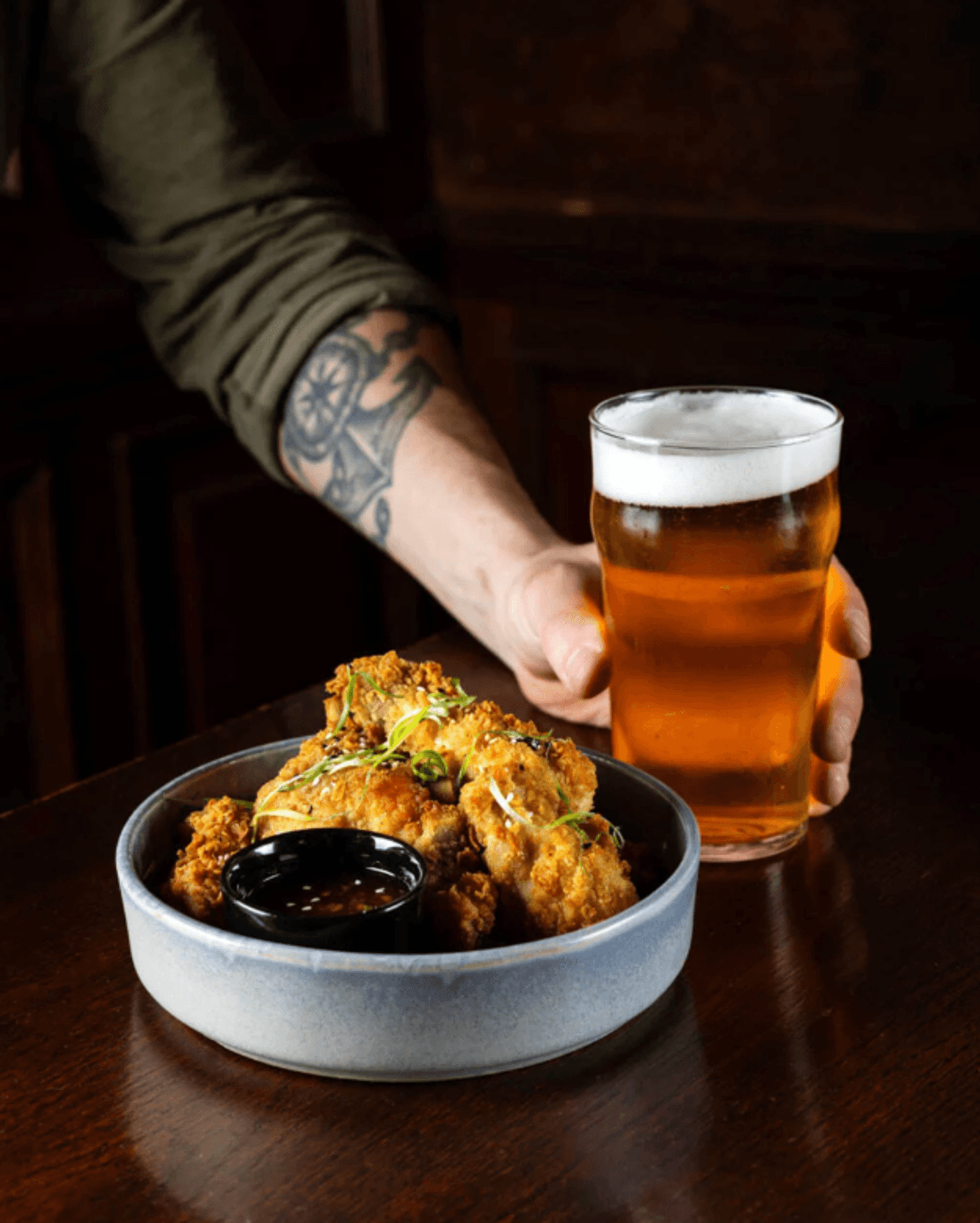 Еда и напитки. В меню — жареные сердечки в соевом соусе, хот-дог с кранч луком и коул слоу, пирог с щечками и креветками, колбаски и сеты для компаний. А в баре — до 30 сортов разливного и 60 бутылочных пивоварен Англии, Бельгии, Германии и Чехии, а также коллекция виски, джина и рома.