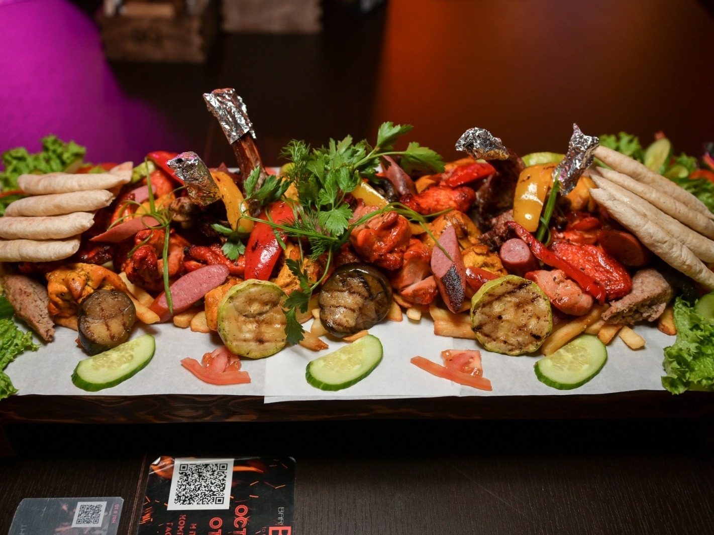 Еда и напитки. В меню — блюда, приготовленные на гриле: стейки, шашлыки, а также индийские позиции — чикен карри, закуски с пряностями и лепёшки. Барная карта включает авторские коктейли, крафтовое пиво и классические напитки.