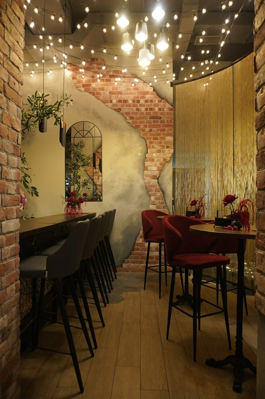 Атмосфера. Акцент сделали на кирпичных стенах с картинами, на которых изображены герои в духе Скруджа Макдака. Есть небольшая сцена с диджейской стойкой в серебристо-волнообразном стиле. Летом здесь работает терраса.